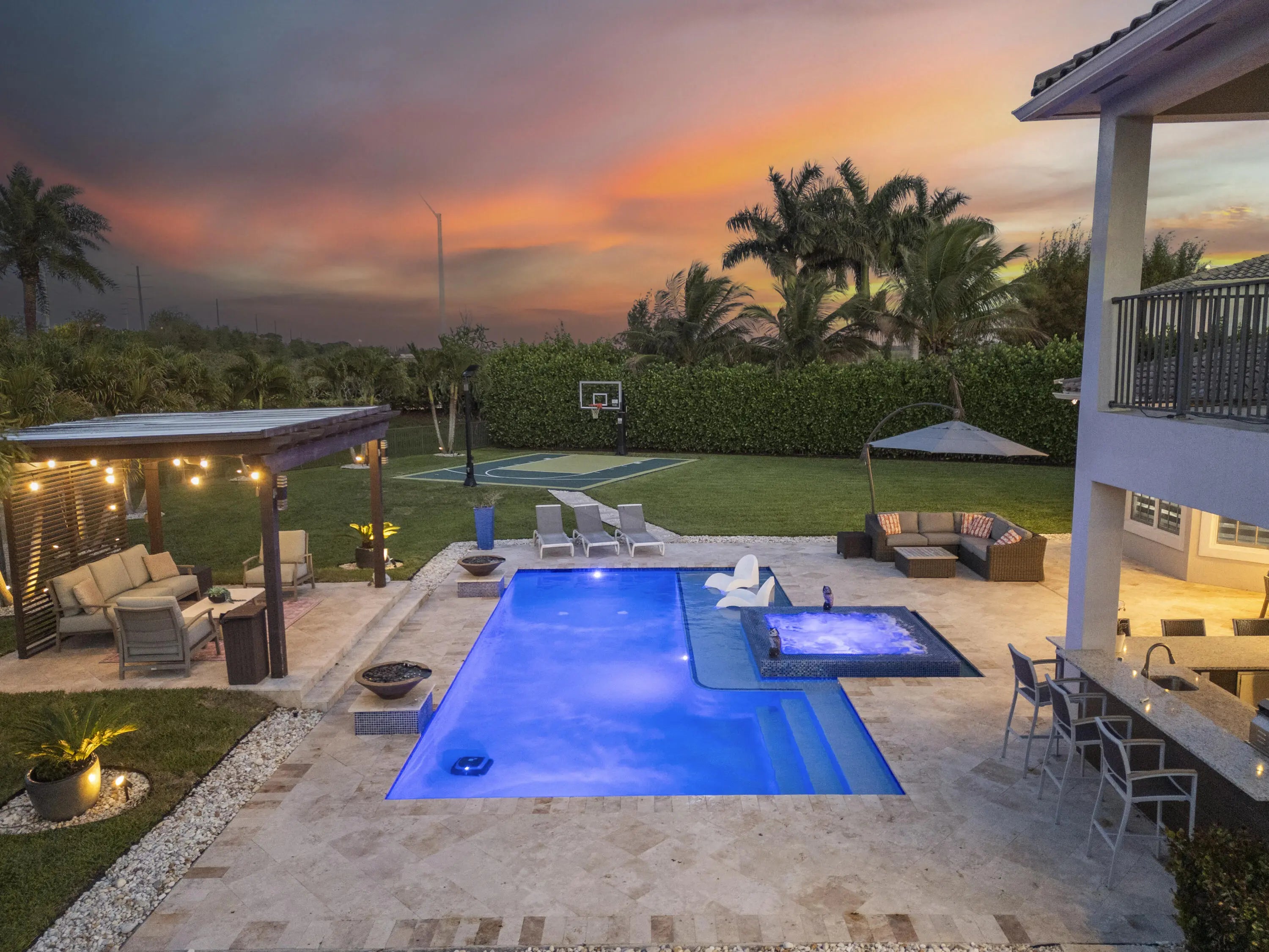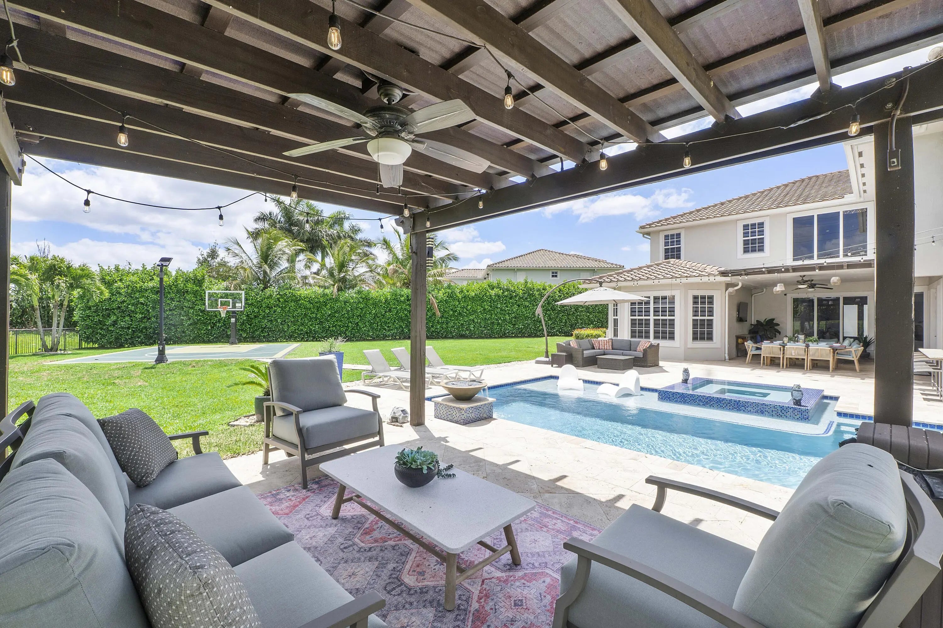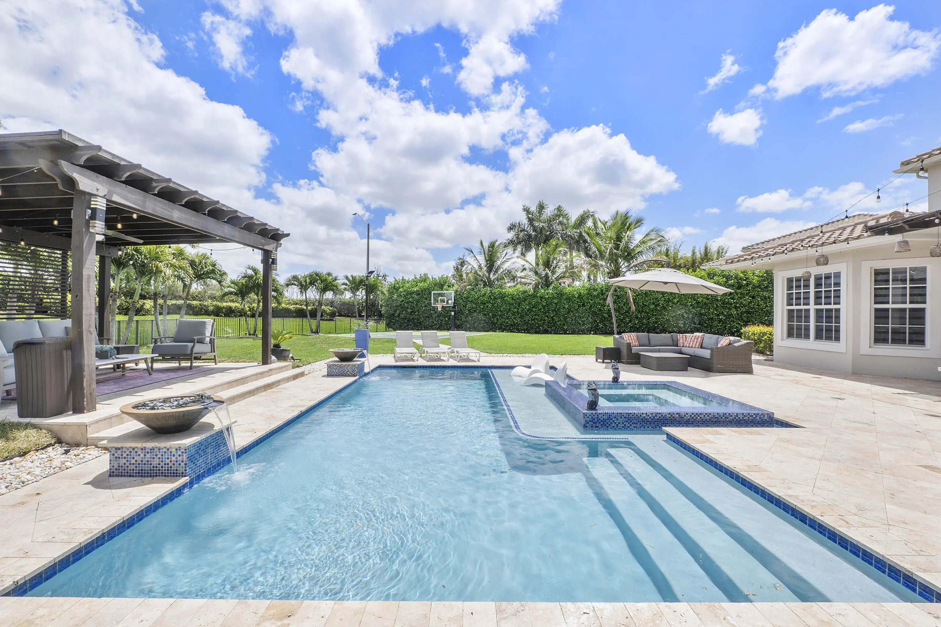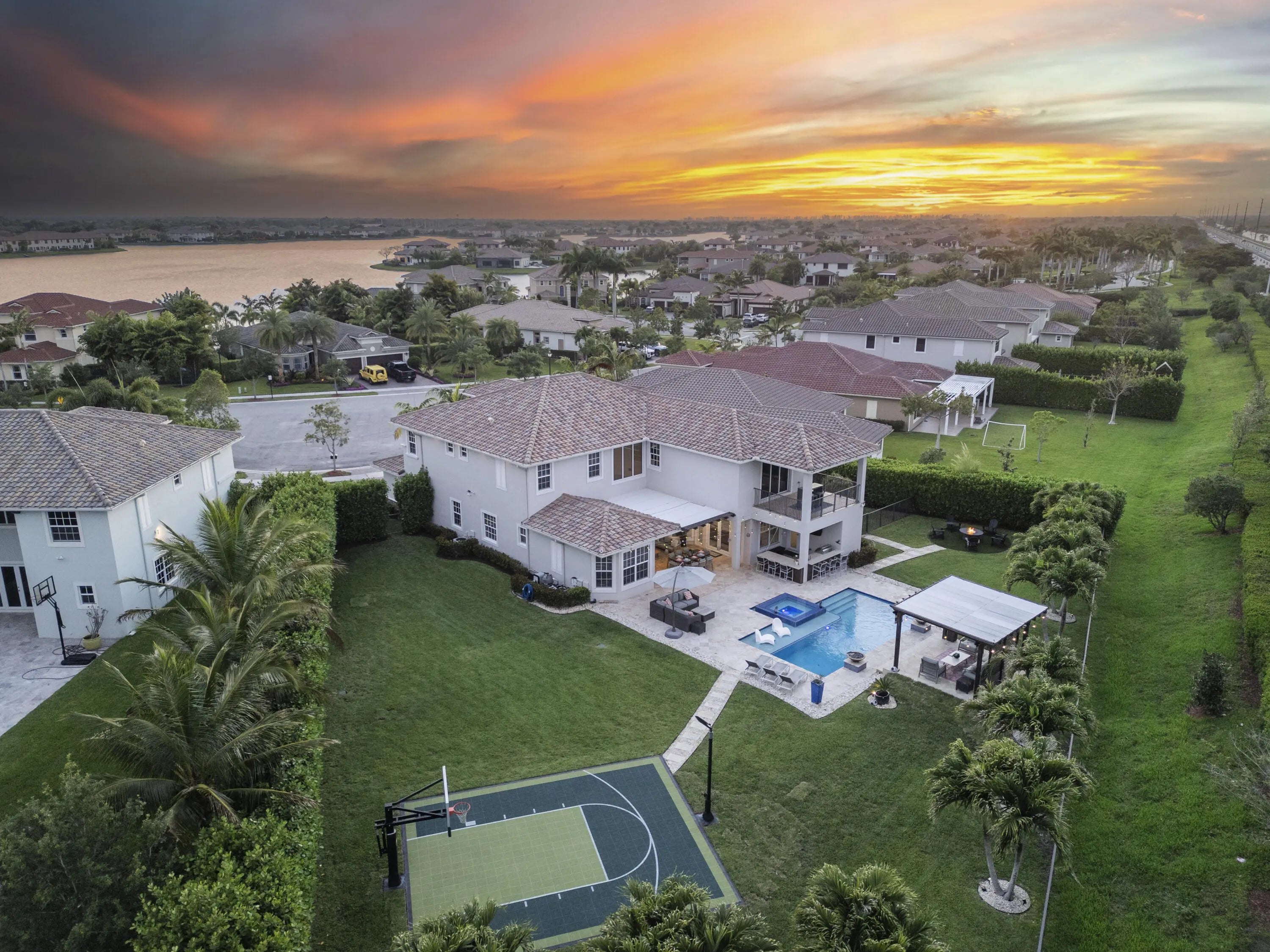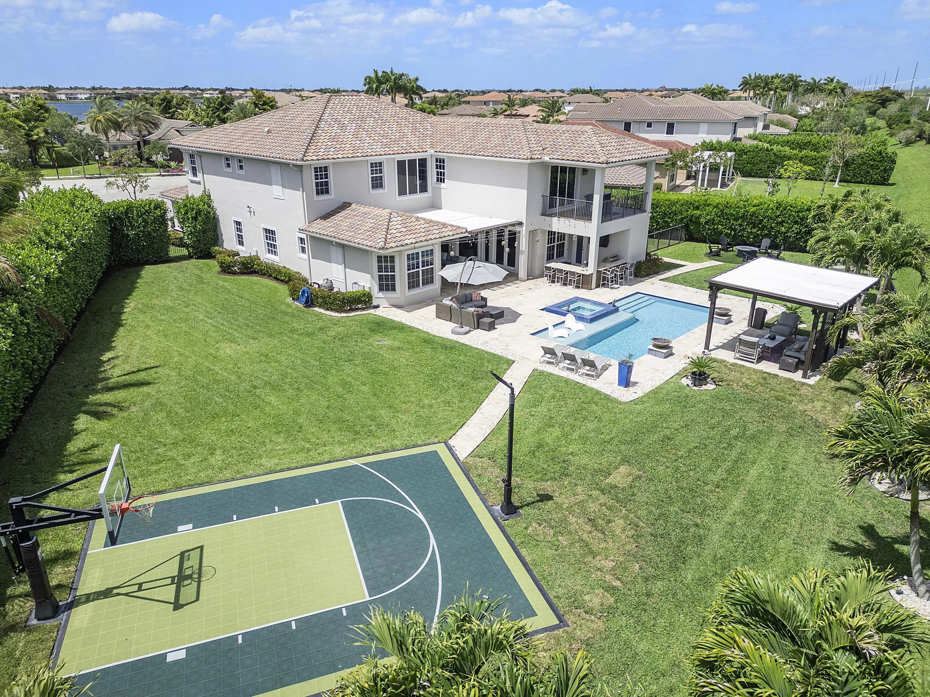 Welcome to this model-quality home in the highly sought-after Miralago community of Parkland, set on a rare oversized lot. With over $500K in upgrades, this residence offers luxury living inside and out. The backyard is an entertainer's dream featuring a custom pool, pergola, outdoor kitchen, private basketball court, and mosquito control system for year-round comfort. Interior upgrades include a beautifully renovated kitchen, laundry, and bathrooms with high-end finishes throughout, custom window treatments, plus a custom movie theater and extended balcony unique to this model. The garage is professionally finished with AC and a fully equipped gym. Located in a resort-style, guard-gated community with top-tier amenities. A truly one-of-a-kind home, must see!