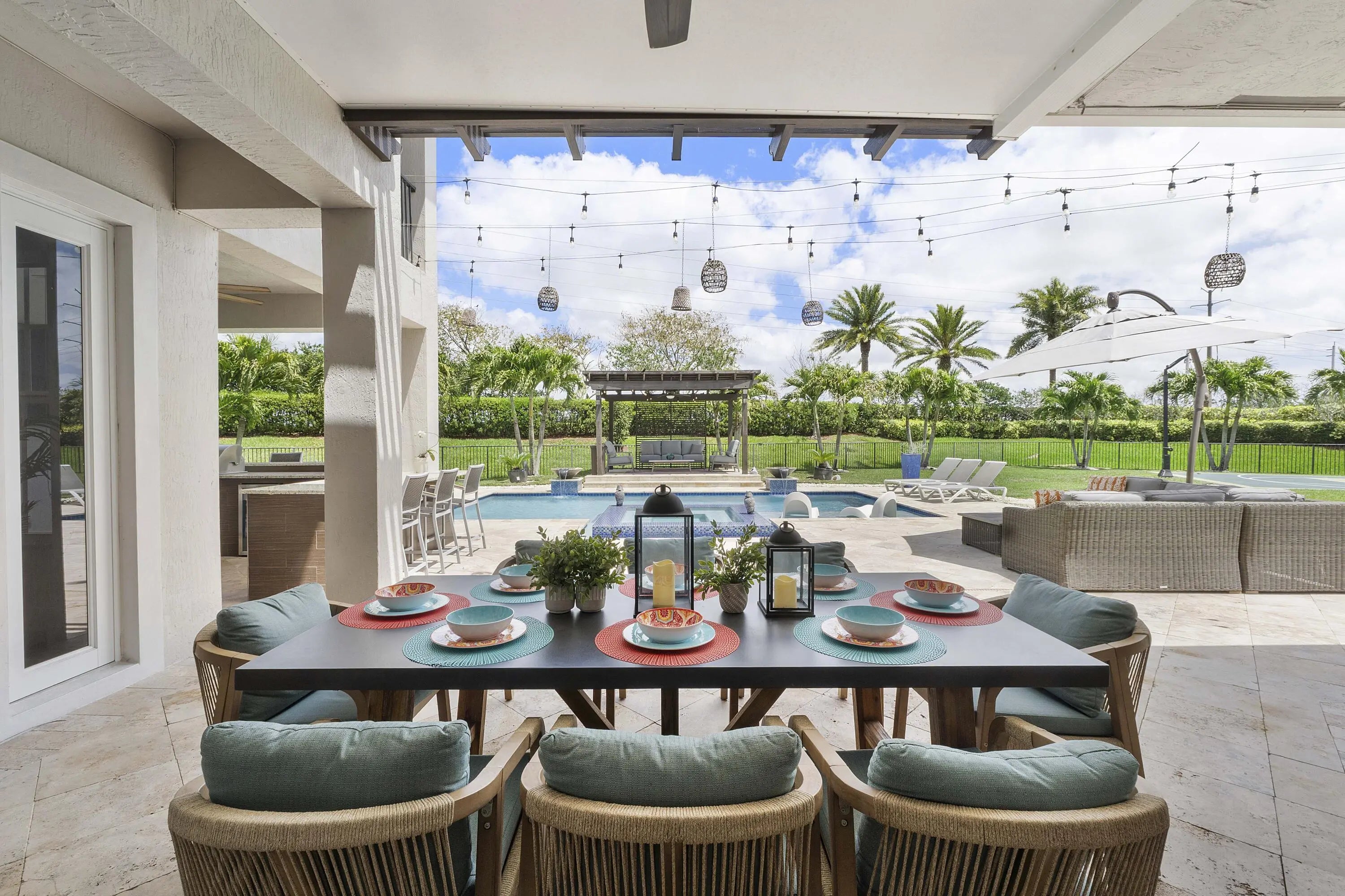 Outdoor Kitchen, Custom Lighting, Summer Kitchen, Pool Bathroom