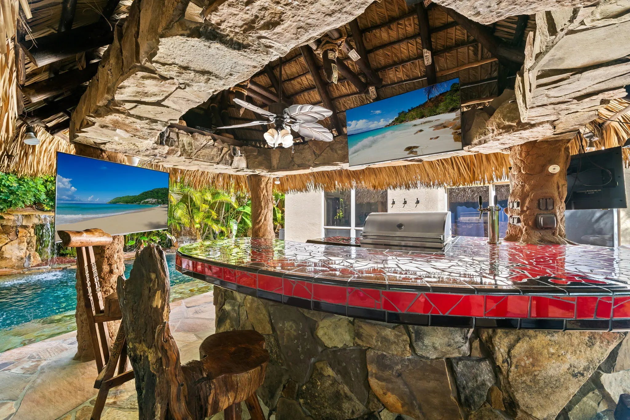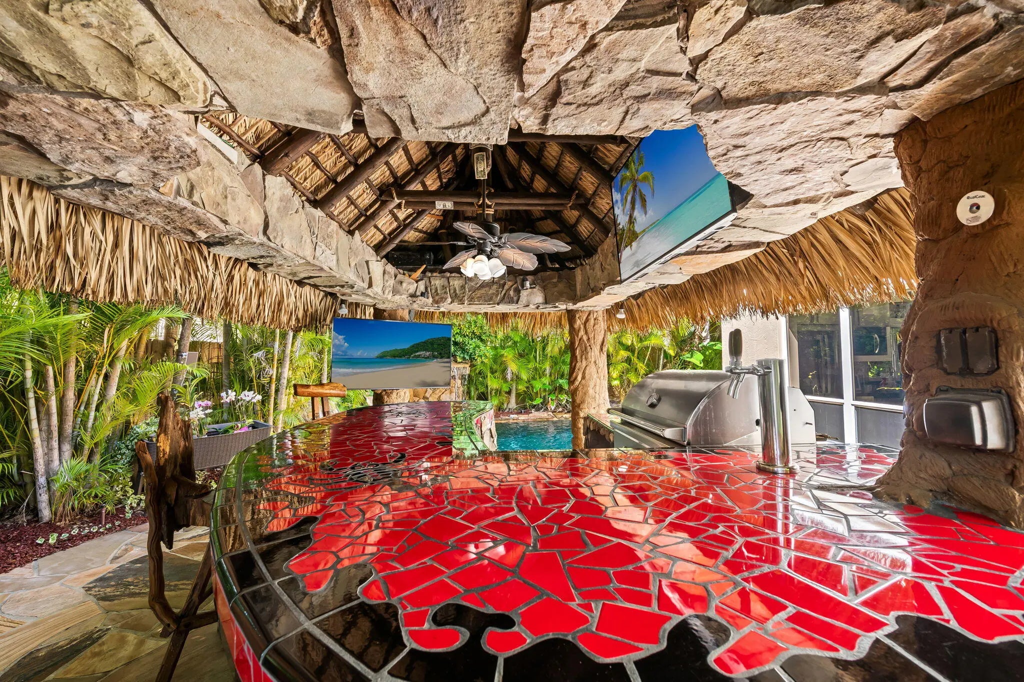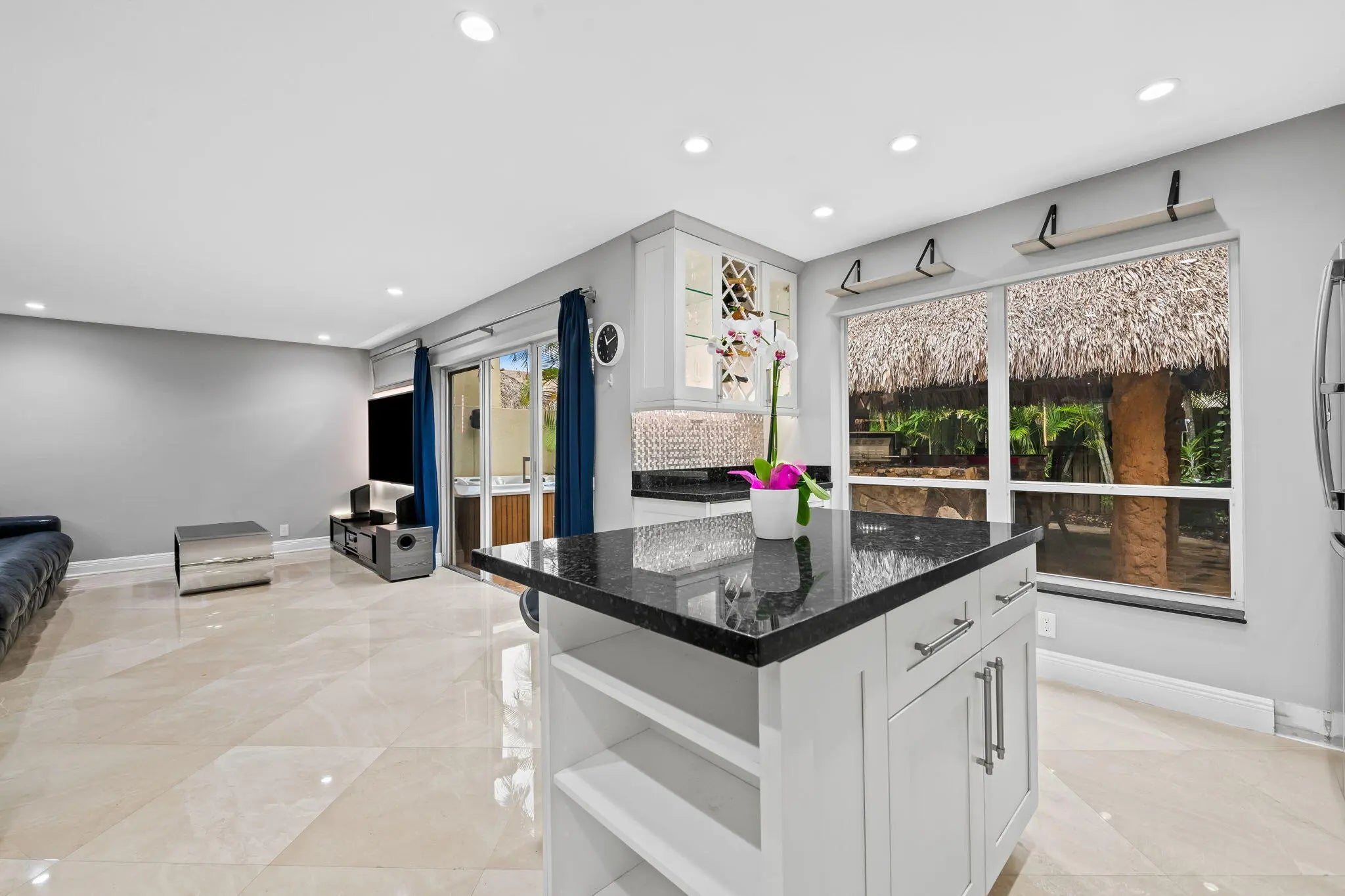 One of the most upgraded, fully turnkey smart homes in Parkland, featuring a resort-style backyard and over $180,000 in outdoor upgrades. This open-concept home offers abundant natural light and seamless indoor-outdoor living. Interior highlights include imported Crema Bella marble flooring, a fully upgraded kitchen with premium appliances, remodeled bathrooms, custom finishes, and LED lighting throughout. The home is fully automated with smart controls for lighting, HVAC, pool, and security. The backyard features a heated saltwater pool, spa, water features, fire pit, built-in grill, and tiki structure. Additional upgrades include impact windows, updated A/C, and enhanced landscaping. Located near top-rated schools, parks, shopping, and major highways.