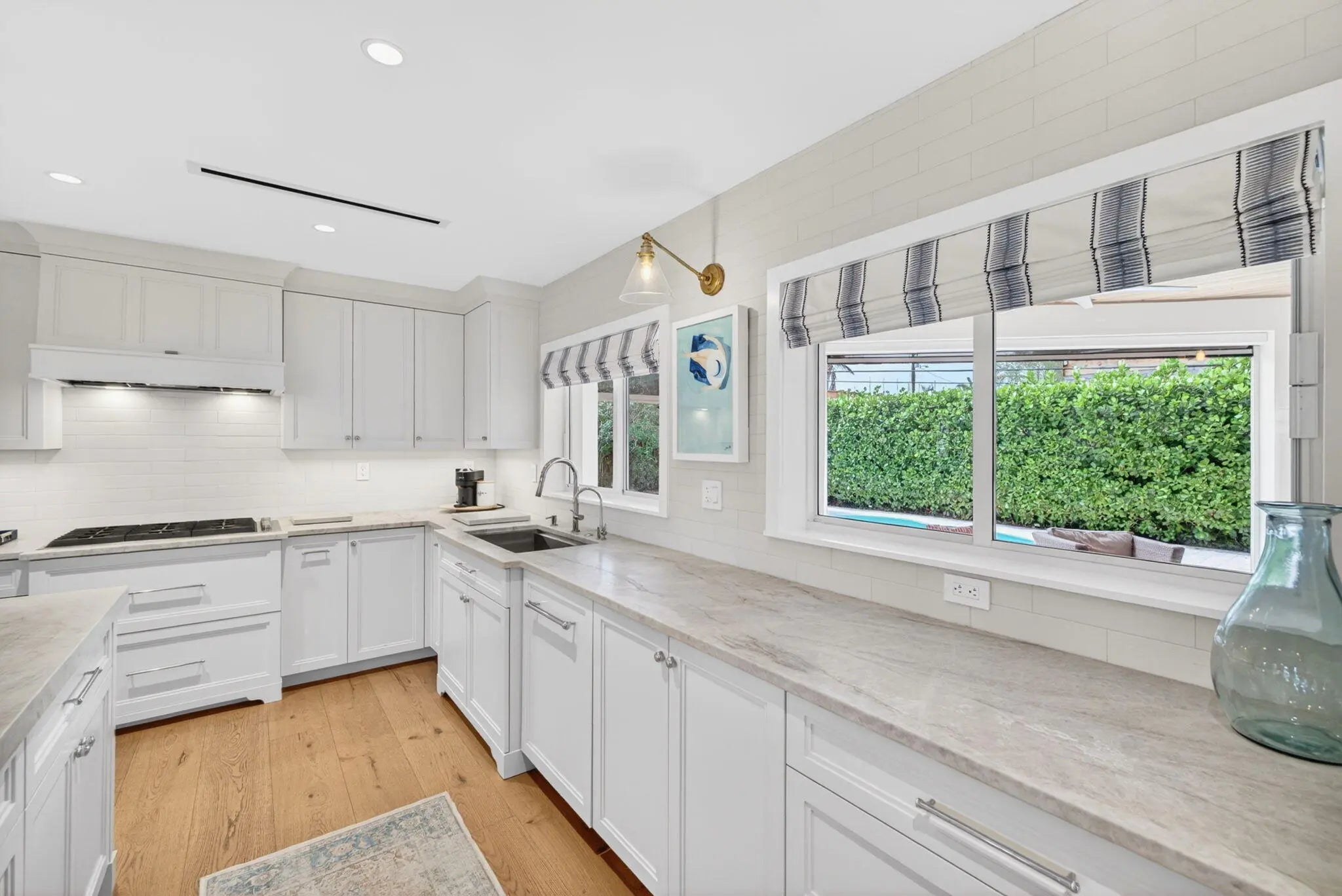 Located in the heart of Coral Ridge within the desirable Bayview School District, this stunning pool home reimagined in 2023 offers 4 beds, 3.5 baths, and a 2-car garage. Designed for comfort and entertaining, it features an open layout with Italian hardwood floors, vaulted ceilings, and designer finishes. The custom-designed gourmet kitchen includes JennAir appliances, gas cooktop, wine cooler, and quartzite island. The primary suite offers custom closets and a spa-style bath. Enjoy indoor-outdoor living with 10 ft sliding doors opening to a covered patio, summer kitchen & resort style heated/chilled saltwater pool. Additional features include tankless water heaters, generator hookup, whole-home water filtration, and 2-zone A/C. See Full description in additional remarks. Located in the heart of Coral Ridge on one of the most desirable streets within the highly sought-after Bayview School District, this stunning pool home features 4 bed/ 3.5 baths and a 2-car garage! Reimagined in 2023 this home is designed for both comfort and entertaining! It features an open concept complete with custom gourmet kitchen with every "bell and whistle", custom-designed front door, Italian hardwood floors, vaulted ceilings, custom light fixtures, solid core doors, designer wall paper, custom bathrooms and more. No expense spared! The gourmet kitchen is equipped with panel ready Jenn-air appliances including a gas cooktop, built-in refrigerator, wine cooler, quartzite countertops with leathered finish, massive center island, and abundant cabinetry. The primary suite offers a large WI closet with custom built-ins, while the spa-inspired bathroom features dual sinks, custom hardware, a walk-in shower, and a private water closet. A beautifully designed laundry room provides additional storage and everyday convenience. While the garage is completely finished with epoxy floors, racking system, slate wall storage, 2nd refrigerator and cabinetry. As you step out through the 10-foot-high collapsible sliding doors you are greeted by a spacious covered patio (11 ft high tongue and groove ceiling) with retractable screens, summer kitchen with Coyote grill, refrigeration, sink and quartz countertops. Your resort style saltwater pool surrounded by marble pavered pool deck, can be both heated or chilled and features multiple sitting areas with inset umbrella. This backyard is fantastic and built for year-round enjoyment. Additional features of the home include double tankless gas hot water heaters, (1000 gallon propane tank buried in ground), generator-ready, Allini full home water filtration system, 2-year-old roof with foam insulation, two zones of AC, gas lanterns, landscape lighting, custom landscaping and more. Come and see for yourself. This one won't last.