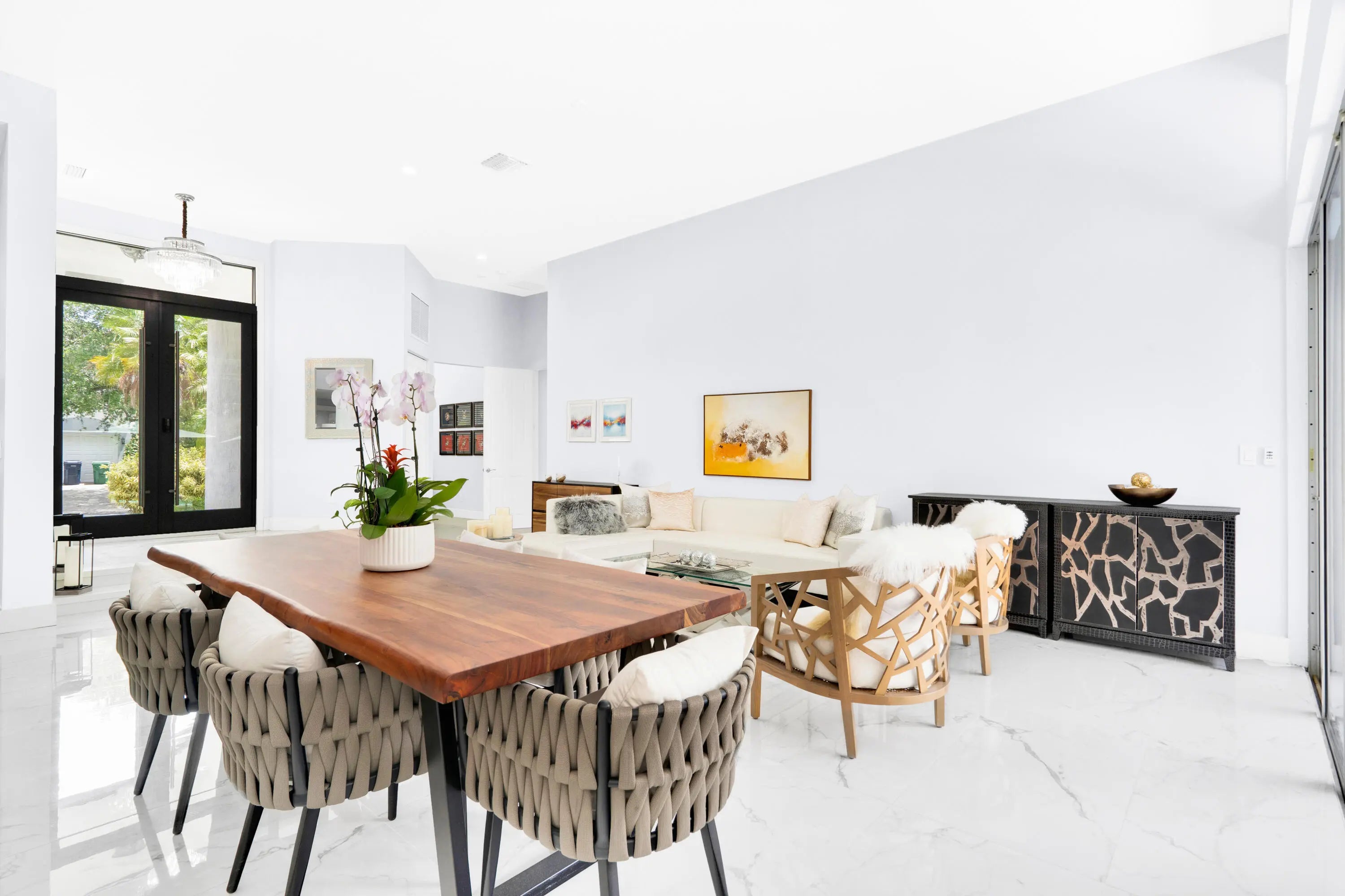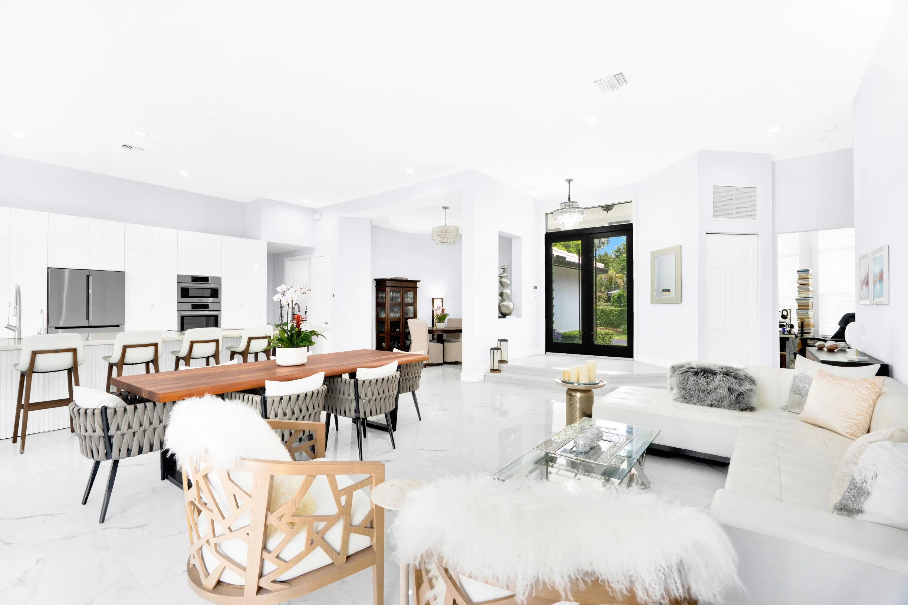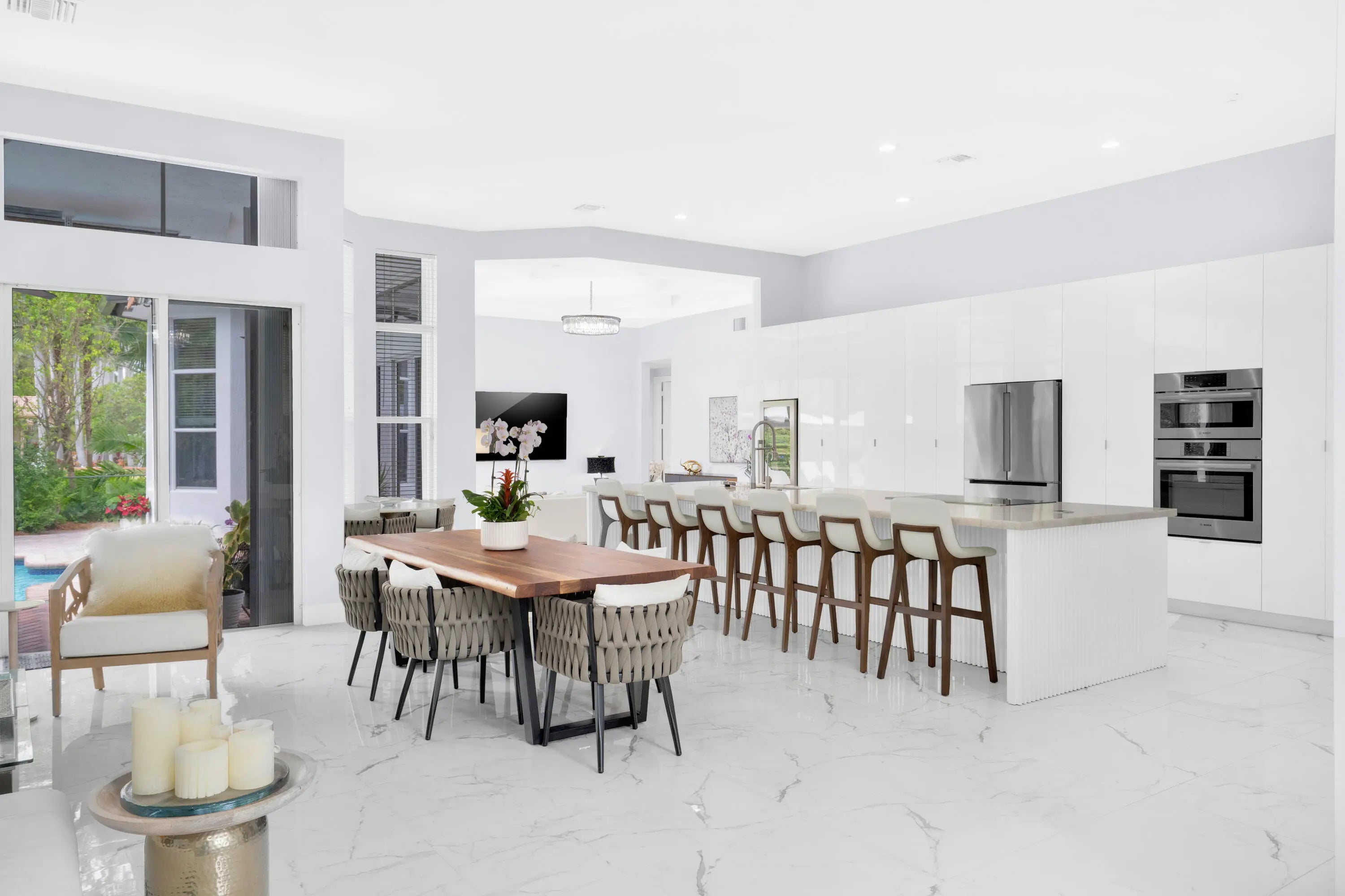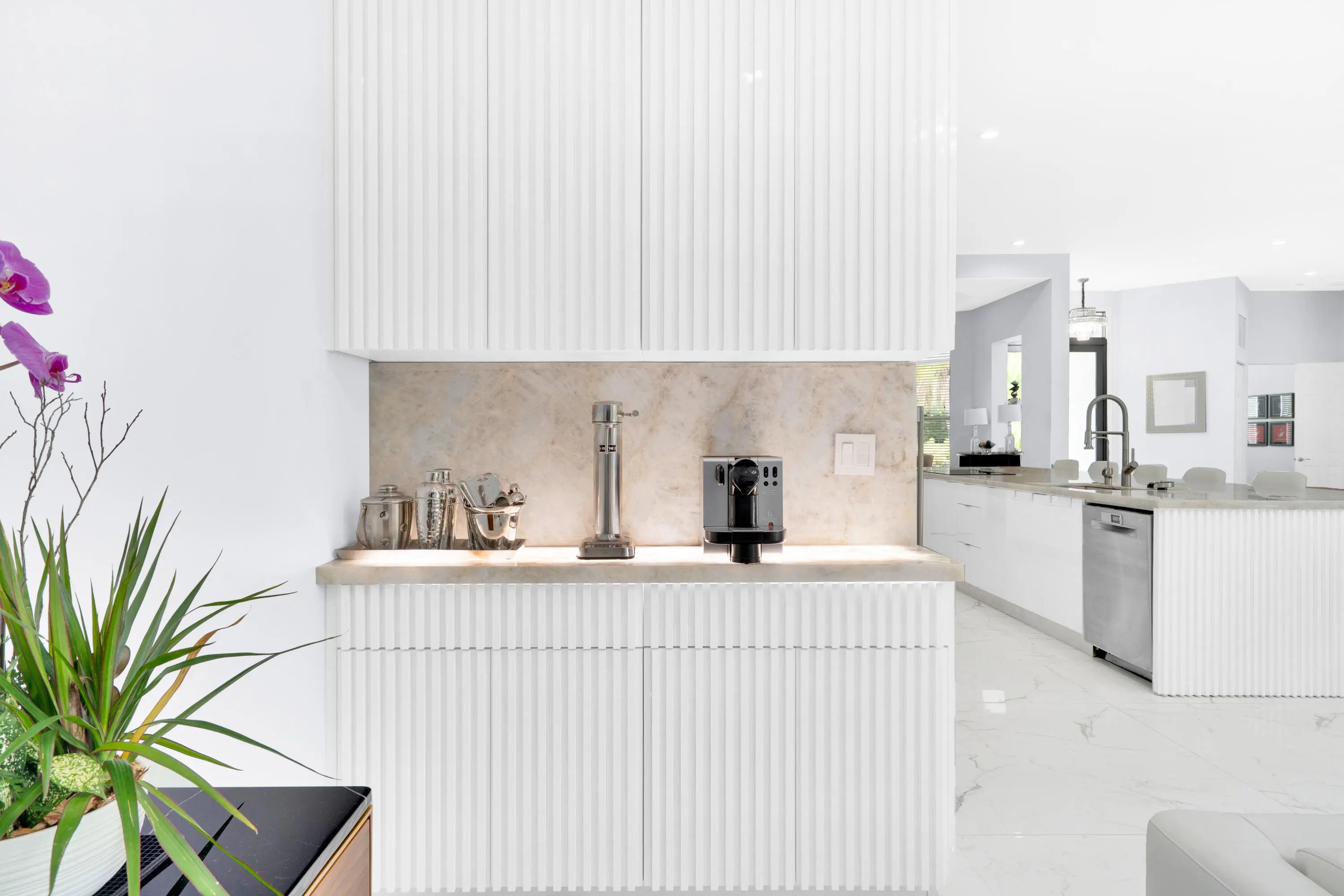 Positioned within the gated enclave of Old Cutler Palms and directly across from the iconic Deering Estate. This fully reimagined 5-bedroom, 4.5-bath single-story residence delivers a rare intersection of design, scale, and functionality—purpose-built for South Florida's coastal lifestyle. Extensively renovated in 2023, the home is defined by volume and flow: 12-foot ceilings, expansive open living spaces, and a statement kitchen anchored by a Cristallo quartzite island designed to seat six. Top-tier appliances and refined finishes elevate the space from functional to exceptional—equally suited for intimate living or large-scale entertaining. The split floor plan offers privacy while seamless indoor-outdoor integration leads to a resort-style pool and expansive entertaining terrace. What decisively separates this property is its unmatched layout and space utilization, which can't be replicated. Set on a nearly 17,250 sq ft corner lot, with a 3-car garage and additional paved recreational space, the residence combines security, scale, and lifestyle versatility—minutes from top-tier schools, trails, green spaces, and waterfront access. A gated, paved 24' x 66' multi-purpose area can easily accommodate any land or water sport activity imaginable. Complete with multiple power connections, can accommodate large vessels with ease. Its immediate proximity to the Intracoastal is a true gem. This is not simply a home—it is a strategic acquisition for buyers who value privacy, tranquility, control, capability, and location within one of Palmetto Bay's most tightly held oasis.