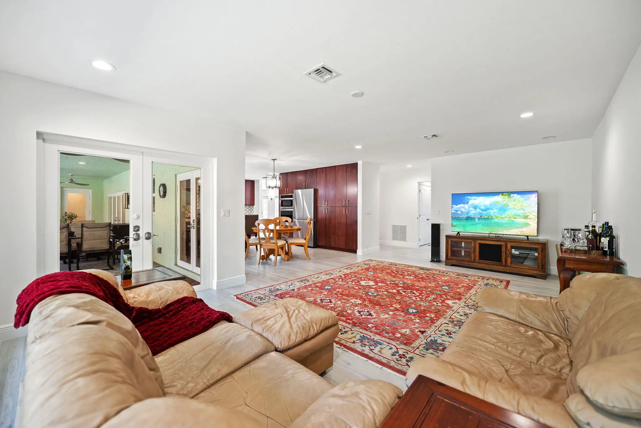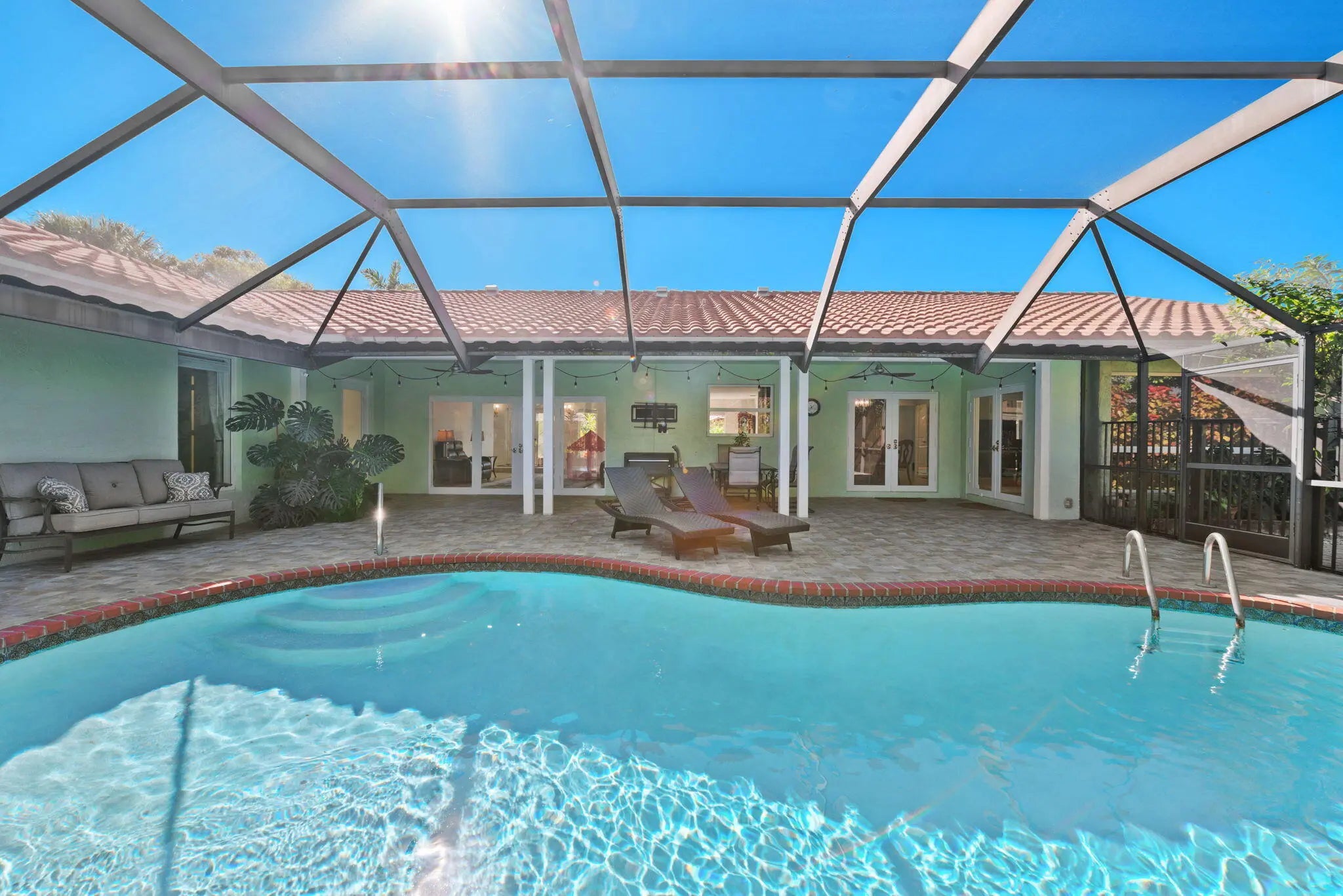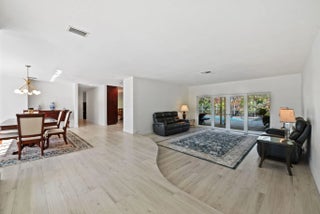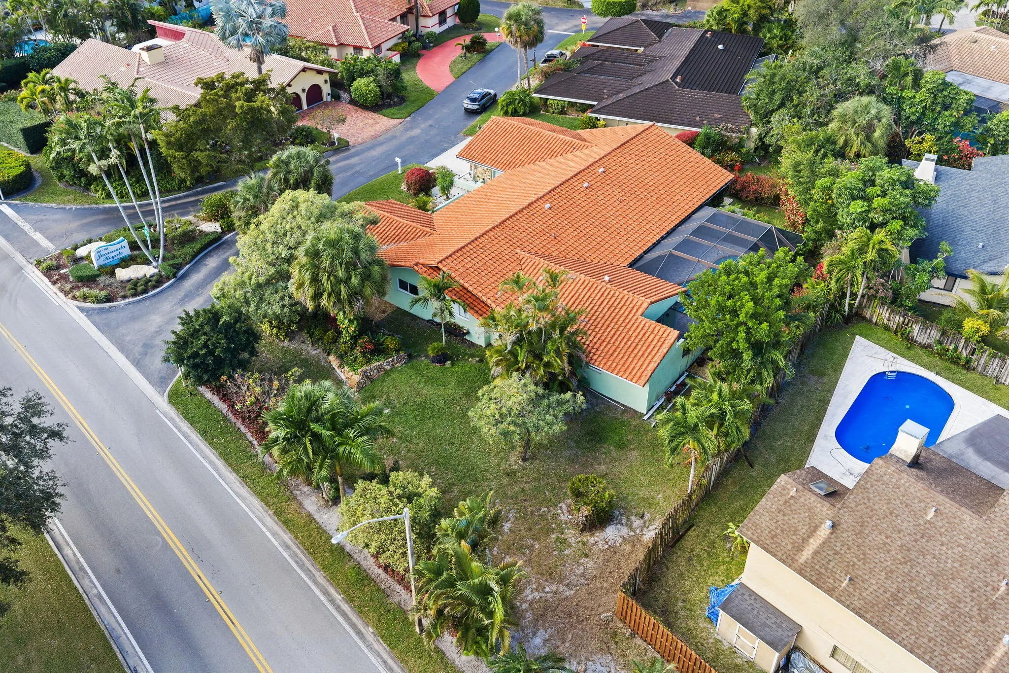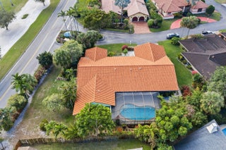 Located in the exclusive community of Jacaranda Royale, this beautifully updated corner-lot home offers stunning golf course views and upgrades throughout. 4 Beds | 3.5 Baths | 3,430 SF under AC | 2-Car Garage Features include a custom kitchen with solid wood cabinetry, quartzite countertops, and marble backsplash, porcelain flooring throughout, and a spacious primary suite with oversized bath and multiple walk-in closets. Oversized laundry room and plenty storage throughout. Enjoy a screened saltwater pool, large patio with TV hookup and built-in speakers perfect for entertaining. Major upgrades: Roof (2021), Impact windows/doors & garage door, Dual AC (2021 & 2024), Insulation (2023), Pool system (2025). Fully prewired for high-speed internet and cable in every room. Prime location close to main roads shopping centers and places of worship