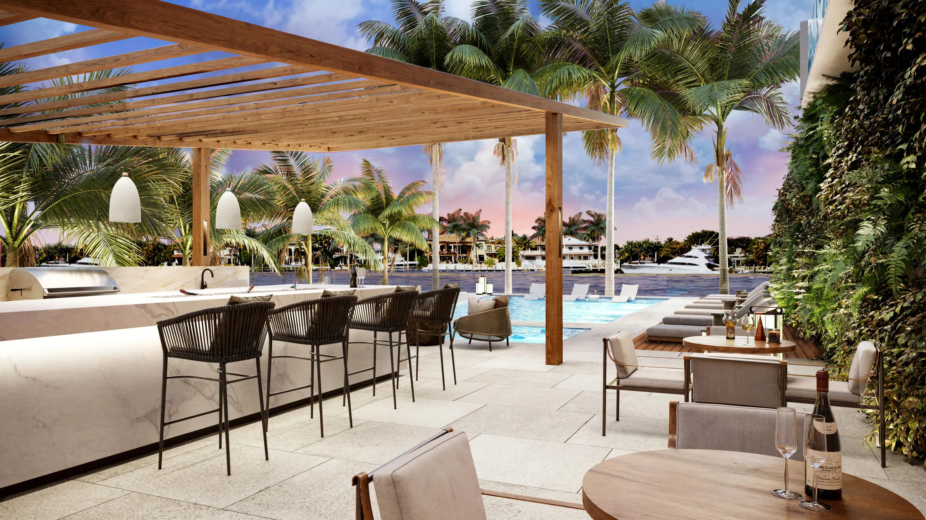 New construction waterfront residence with expansive terrace and unobstructed Intracoastal views. Experience elevated living in one of the only newly constructed boutique condominiums directly on the Intracoastal in Pompano Beach. Limited to just 42 residences across 10 stories, this exclusive building offers a rare blend of privacy, location, and modern coastal elegance.Offering 1,750 square feet of interior space, the residence features a spacious private terrace of approximately 400 square feet overlooking the Intracoastal—ideal for relaxing or dining while enjoying views of passing boats and the vibrant waterfront. The flow-through layout provides both sunrise and sunset exposures, filling the home with natural light and creating a seamless indoor-outdoor connection. A private elevator entry opens into a thoughtfully designed interior with a soft, neutral palette, wide-format flooring, custom cabinetry, and premium finishes. Residents enjoy a curated collection of amenities, including a waterfront pool, fitness center, and elegant social spaces. Flexible rental guidelines further enhance long-term value and income potential. Ideally located just minutes from the beach, waterfront dining, and the vibrant Pompano Pier lifestyle, this residence offers an exceptional opportunity within one of Pompano Beach's most exclusive new Intracoastal developments. Photos shown are from a completed and professionally staged unit and are for illustrative purposes only. Actual residence may vary in finishes, layout, and views.