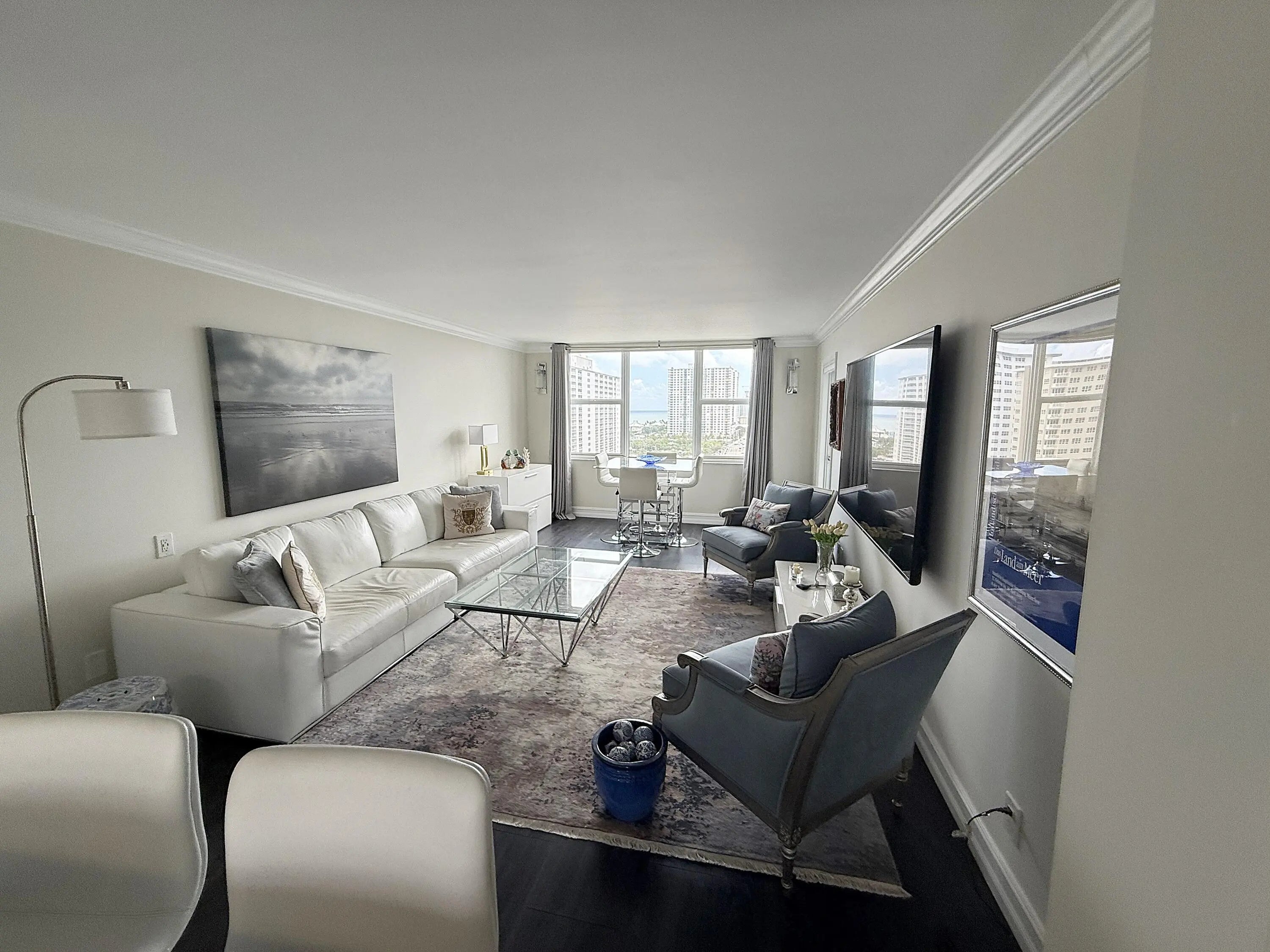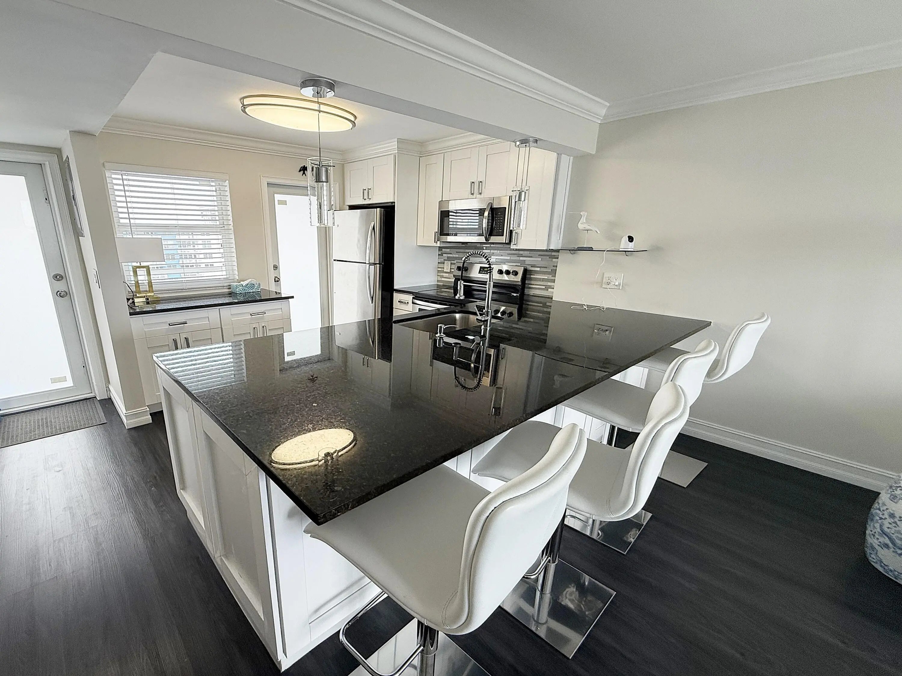 Stunning 1-bedroom penthouse level condo offering sweeping ocean, Intracoastal & city views. Minutes' walk to the beach & Pompano Pier. Updated to the highest level open concept kitchen with a stainless-steel butcher's sink, waste disposal, Bosch dishwasher & an extra wide granite breakfast bar, sleek pendant lighting & seating for four. Abundant cabinetry on both sides provides exceptional storage. Luxury vinyl plank flooring, smooth wall finishes, elegant crown moldings, tall windows create a bright, clean, airy coastal feel, enhanced by abundant natural light. Spacious bedroom includes two closets, including a walk-in, large window overlooking the beautiful new travertine deck heated pool. The bathroom features shower over tub combination & an attractive vanity with ample storage. If you're looking for perfection, this is it. Stunning 1-bedroom penthouse level condo offering sweeping ocean, Intracoastal, and city views. Ideally located just a 5-minute walk to the beach and directly across from the Pompano Fishing Pier. Updated to the highest standards, the home features an open concept kitchen with a stainless-steel butcher's sink, waste disposal, Bosch dishwasher, and an extra wide granite breakfast bar with sleek pendant lighting and comfortable seating for four. Abundant cabinetry on both sides provides exceptional storage. Luxury vinyl plank flooring, smooth wall finishes, elegant crown moldings, and tall windows create a bright, clean, and airy coastal feel, enhanced by abundant natural light throughout. The spacious bedroom includes two closets, including a walk-in, and a large window overlooking the beautiful heated pool and new travertine deck. The bathroom features a shower over the tub combination and an attractive vanity with ample storage. Additional upgrades include a new water heater, electrical panel and impact resistant hurricane windows and doors providing enhanced safety, efficiency and peace of mind. Granada House is fully up to date with all the required inspections, codes and maintenance, a complete re-surfacing of the parking lot coming this summer.