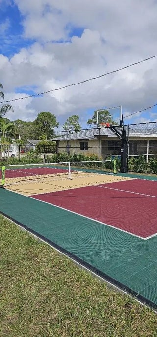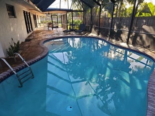 This completely renovated 4 bedroom 2 full bath sits on two private lots at the end of the culdasac. The tasteful ranch exterior is beautifully landscaped, while the interior has a mid century modern vibe that is on trend and fun! The home offers a screened swimming pool and patio area, air conditioned home gym, lighted pickleball/basketball court, large designer kitchen with oversized island that seats 6, electric fireplaces, new roof, new A/C units, new sprinkler system, new pool pump, everything has been updated. Home is sold completely furnished.