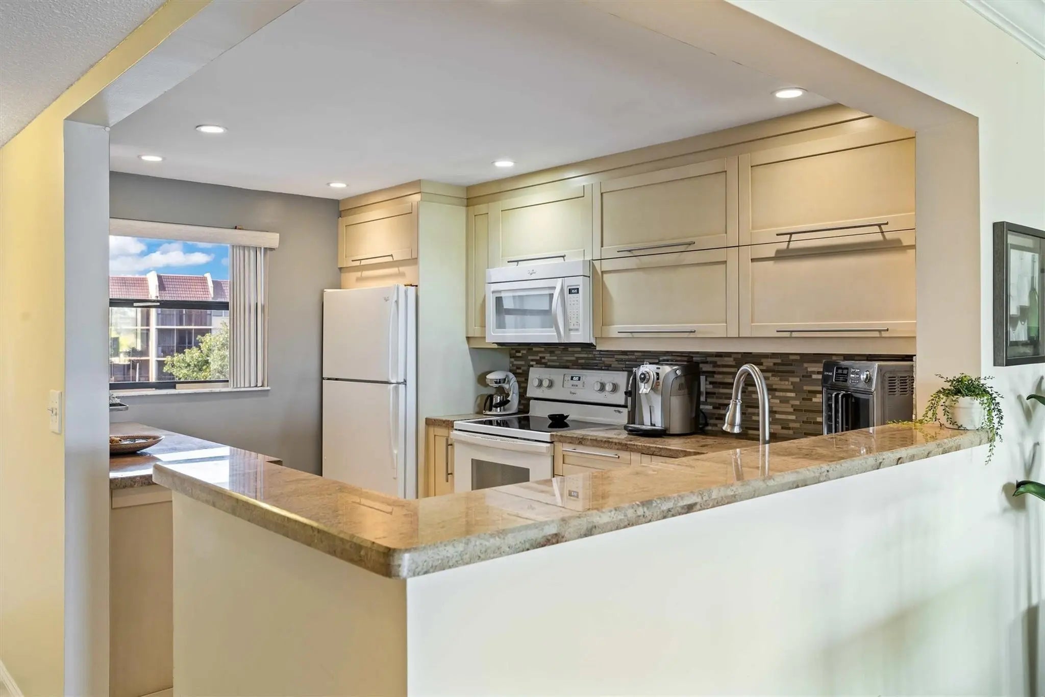This beautifully updated 2/2 condo is located in a vibrant 55+ community, offering a turnkey, fully furnished living space just steps from the clubhouse. The condo features modern finishes, including granite countertops, stainless steel appliances, and updated bathrooms. The spacious open-concept layout is perfect for entertaining, with large windows bringing in natural light and a private screened-in patio for relaxing.The community is packed with resort-style amenities, including a heated pool, fitness center, tennis courts, shuffleboard, and a clubhouse that hosts social events, fitness classes, card games, and more. Conveniently located near shopping, dining, and medical facilities, this condo is perfect for those seeking an active and maintenance-free lifestyle. washer/dryer in unit