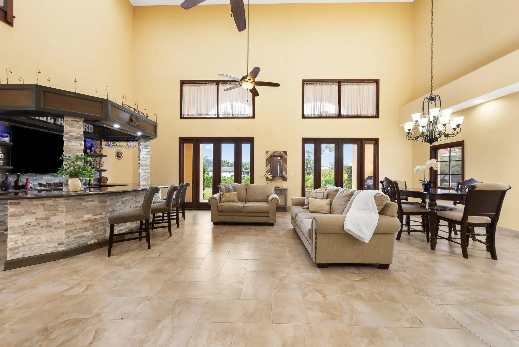 This home, lovingly maintained in pristine condition by its original owners, is now available for its first resale since construction! Offering luxury and convenience, you'll find striking oak wood doors & banister with a winding staircase, a primary suite that features a private balcony & walk-in closets. Other notable features include high-end custom finishes, Pella impact windows, tankless water heater with recycling pump, central vac, 23-ft ceilings, & R30 insulation for energy efficiency. The backyard offers potential for a custom pool, outdoor kitchen, & tennis courts. Lush Areca palms line the canal, enhancing privacy and adding a tropical feel. Ideally located near I-595, I-75, & 869, commuting is easy. A true gem, blending modern amenities with timeless elegance.