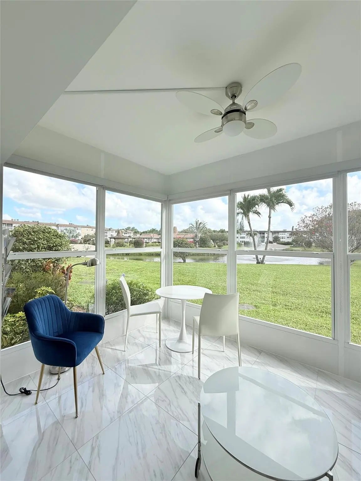 BEAUTIFULLY RENOVATED 2BR/2BA first-floor condo with STUNNING LAKE VIEW from the Florida room. Features an OPEN KITCHEN w/ sleek textured white cabinets, stainless steel appliances, and recessed lighting. ELEGANT DECOR & FURNITURES. MARBLE-STYLE tile throughout in white & light-grey tones. SPACIOUS WALK-IN closet w/custom cabinetry. MOVE-IN READY and IMPECCABLY MAINTAINED _ TRULY A MUST-SEE!**AC 2020 - Tankless** Very well maintained building w/reserve funds.Community boasts heated pool, billard, gym, BBQ area, clubhouse and more activities. Minutes away from shops, resaurants, supermarkets, highways and beautiful beaches.