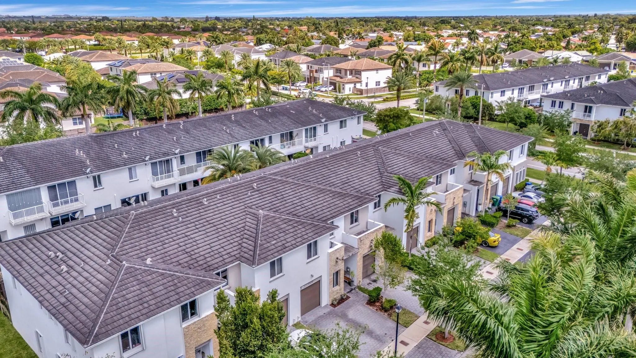 Nestled in the desirable Venetian Parc community, this charming 2story townhome offers 3/2.5, & 1car garage. Porcelain flooring thru out the 1st level, seamlessly connecting the open-concept kitchen & inviting family room perfect for both everyday living & entertaining. The private fenced-in patio features 2 stunning Sylvester palm trees, creating a serene outdoor retreat. Inside, enjoy the benefits of a complete alkaline water filtration system for the entire home, plus an add'l reverse osmosis/hydrogen water filter in the kitchen for optimal drinking water. Upstairs, the spacious primary bedroom boasts a private balcony, walk-in closet, & a luxurious ensuite w/ dual vanity sinks, large shower, & Roman tub. The laundry room is located upstairs. Also included A Level 2 EV charging station.