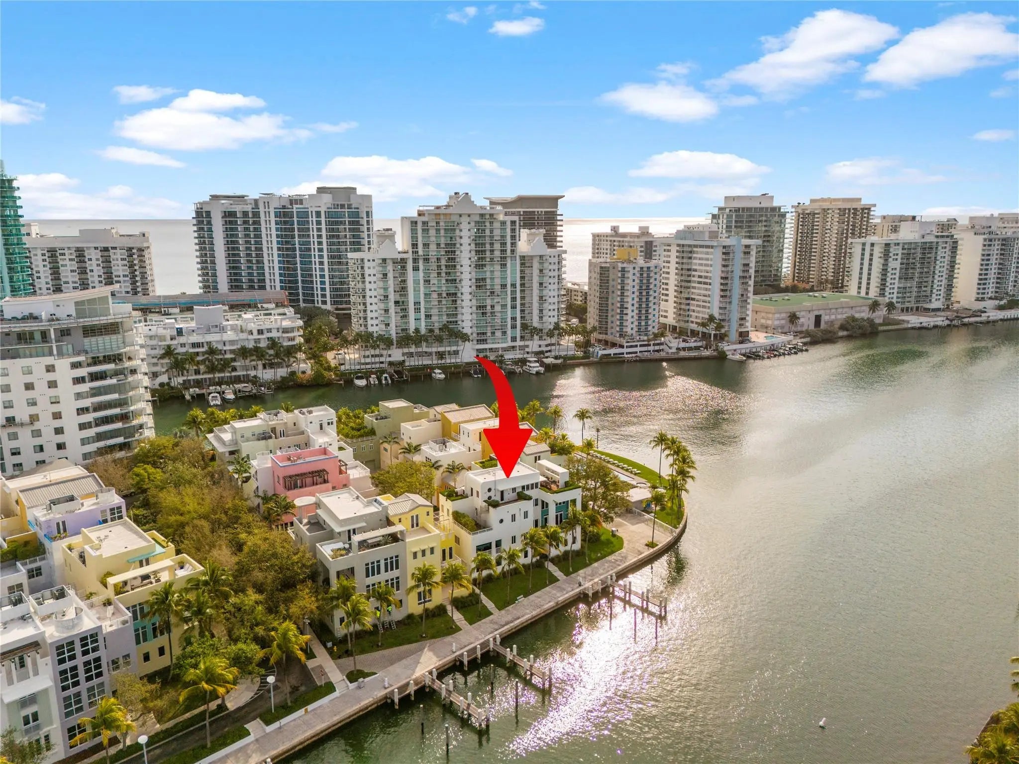 Experience elevated Miami Beach living in this luxurious 4-story townhouse located in one of the area’s most exclusive gated waterfront communities. Just a short walk to the ocean, this expansive residence boasts 5 bedrooms, 5.5 bathrooms, over 5,349 sq ft of AC living space (over 8,000 sf+ total), soaring 22-ft ceilings, and an elevator to all floors. Enjoy 4 private terraces, a private dock with Ocean access for up to 40ft boat, 2-car garage, and full valet service. Designed for the modern lifestyle, it features sleek finishes, generous natural light. Community offers 24/7 security, 2 pools, fitness center and much more. An exceptional opportunity for those seeking privacy, comfort, and effortless elegance by the beach.
