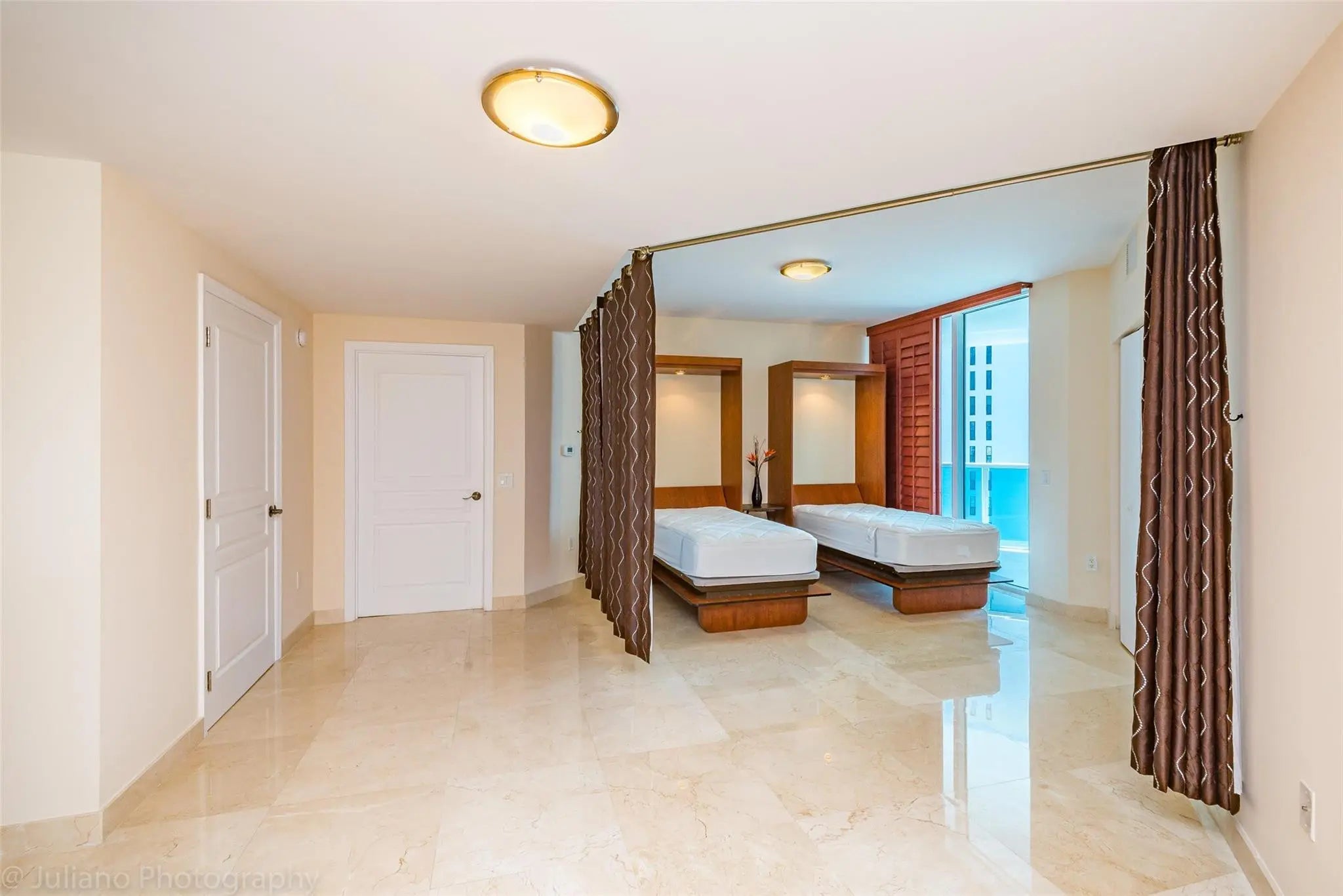 Sonata Beach Club! Private elevator access directly into the unit, an added touch of exclusivity. Just north of Fort Lauderdale and south of Boca Raton. Beautifully furnished 2 bedrooms and 1 large room with 2 built-in Murphy beds, closet and private balcony open space or room can be closed off by ceiling curtain and used as a bedroom for guests. Ocean and city views from two expansive terraces. Floor-to-ceiling impact windows/doors fill the home with natural light. Chefs kitchen, with plenty of storage. Laundry room and garage parking provide everyday convenience, across the street private beach access from pool area, beach chairs ensures a relaxing stay! Residents also enjoy access to a state-of-the-art fitness center, a stunning pool, BBQ area your home away from home, seasonal escape! Sophisticated Ocean front condo at the prestigious Sonata Beach Club. Private elevator access directly into your unit for an added touch of exclusivity. Situated north of Fort Lauderdale and south of Boca Raton. Beautifully furnished 2/2.5 plus Bonus flex room with 2 built-in Murphy beds, used as a bedroom for guests. Gorgeous ocean and city views from two expansive terraces. Floor-to-ceiling impact windows/doors fill the home with natural light. Chefs kitchen, with plenty of storage. Laundry room and garage parking provide everyday convenience, private beach access from pool area with beach chairs ensures a relaxing stay! Residents also enjoy access to a state-of-the-art fitness center, a stunning pool, BBQ area premier beachfront living your home away from home, your seasonal escape!