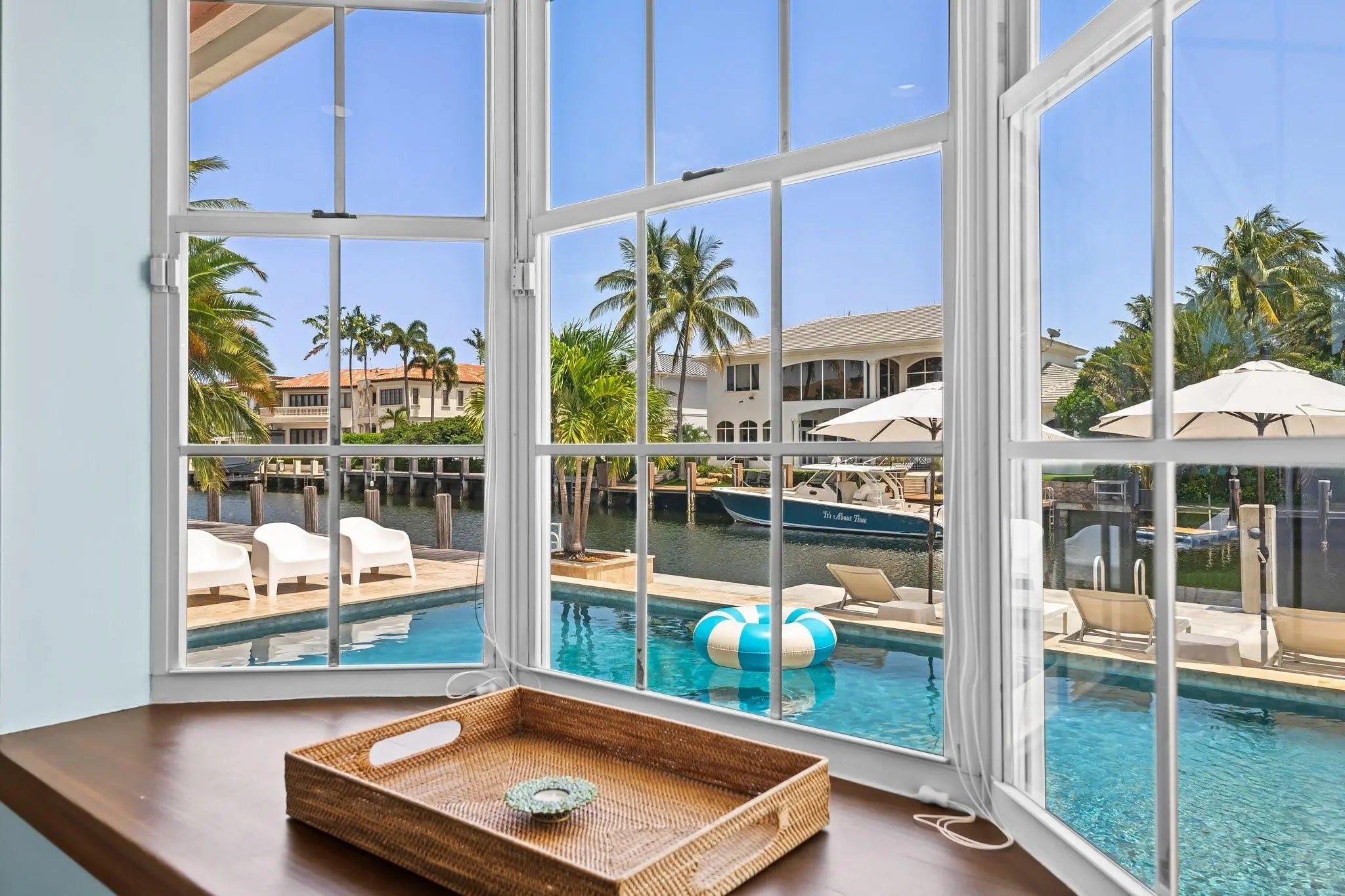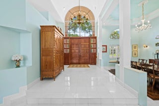 Boater’s paradise! This stunning one-story waterfront home offers 4 beds, 4.5 baths, and 3,300 sq ft of luxury living. A grand foyer, vaulted ceilings and an open-concept layout flow seamlessly to the outdoors. Boasting 100' feet of ocean-access frontage NEW concrete dock & sea-wall, 30' floating dock, and upgraded power—perfect for your yacht. Entertain by the resort-style Diamond Brite pool with travertine marble deck, wood paneled ceiling patio. The chef’s kitchen dazzles with Bosch & Sub-Zero appliances, island with bar seating, and sleek design. The spacious primary suite boasts custom built-ins, jetted tub, dual vanities, and a newly tiled cabana bath. Plus: 3-car garage and new tile roof (2024). Coastal luxury at its finest—bring your boat and live the dream!