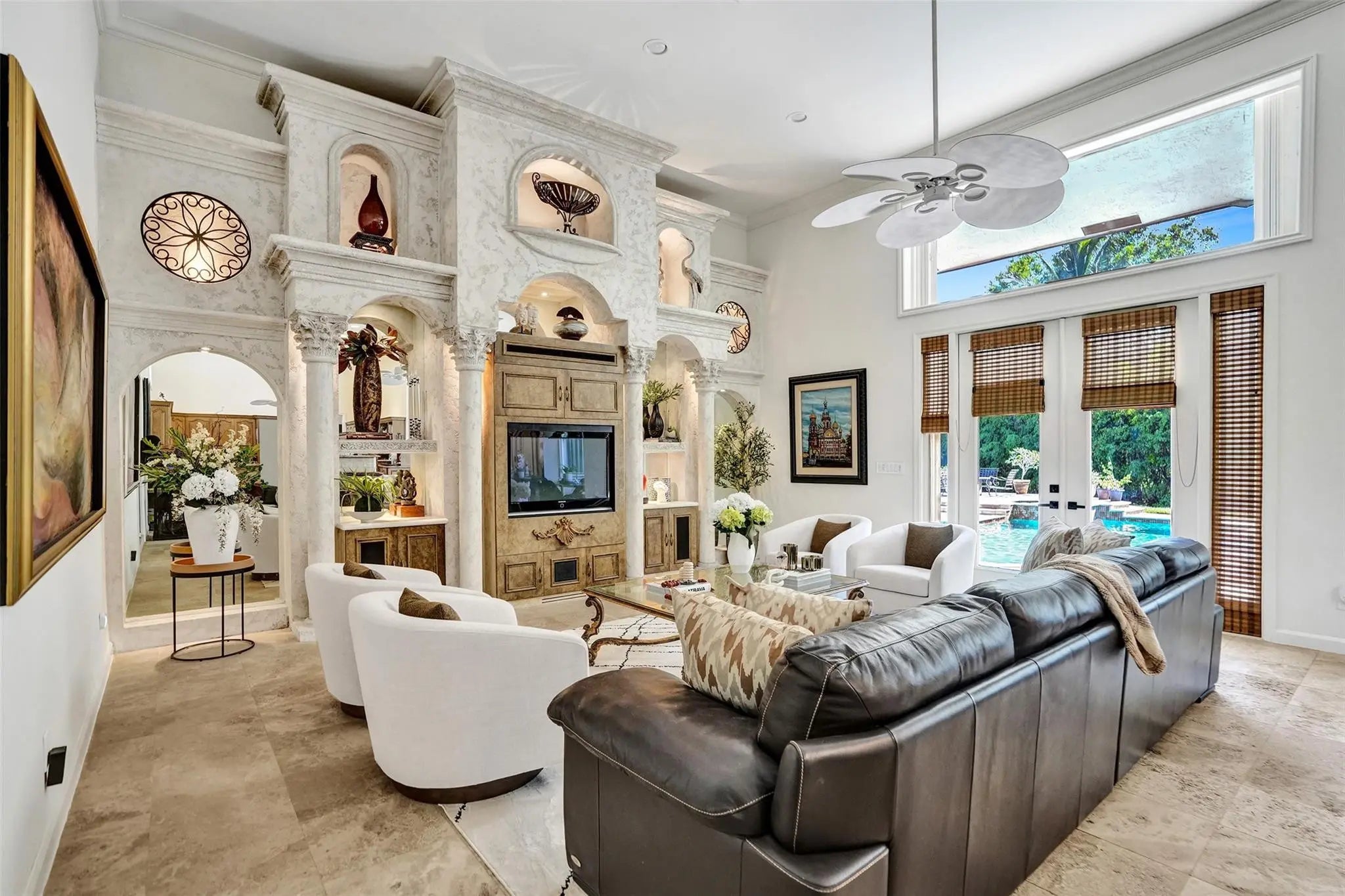 Welcome to the epitome of sophistication in Plantation Acres! This stunning estate is designed for luxury and comfort, featuring 5 bedrooms plus a home office, 5.5 bathrooms, split floor plan, home theater with seating for 12 & a chef's kitchen. Set on a vast 49,077 square foot lot, the property boasts a North/South facing tennis court, below ground pool w/jacuzzi & an outdoor shower. Enjoy alfresco dining with a built-in BBQ & refrigerator on your private patio, surrounded by a lush private yard. Indoors, revel in the tile and stone floors, an indoor wet bar & expansive living spaces tailored for entertaining. With a newer roof, hurricane shutters & ample parking in a tranquil cul-de-sac, this home offers a sophisticated lifestyle in a serene setting, ready for its next owner to cherish.