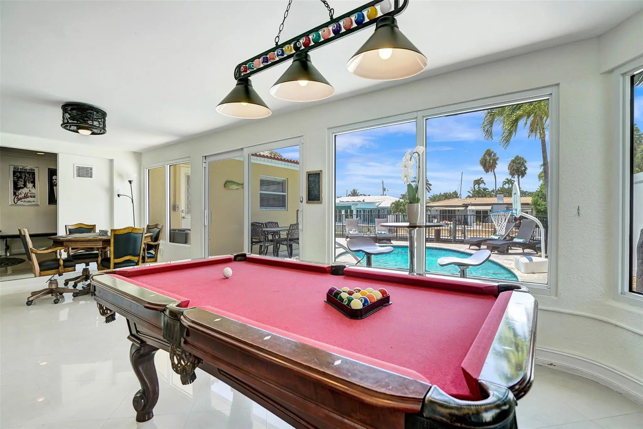 Fully appointed Vacation Rental in Bel Air, Lauderdale-by-the-Sea! Walk to the beach, restaurants, and shops.Perfect for families or groups looking to relax in style just minutes from the beach!This spacious 4-bedroom, 3-bathroom 9 bed home is located on a deep-water lot with 55 feet of dockage — bring your boat or enjoy our kayaks and the peaceful waterfront views. The home is designed for fun and relaxation, with a variety of amenities: Heated pool, tiki hut, putting green, outdoor entertaining area, pool table, gaming table, bicycles & beach gear! Enjoy the South Florida outdoor living!