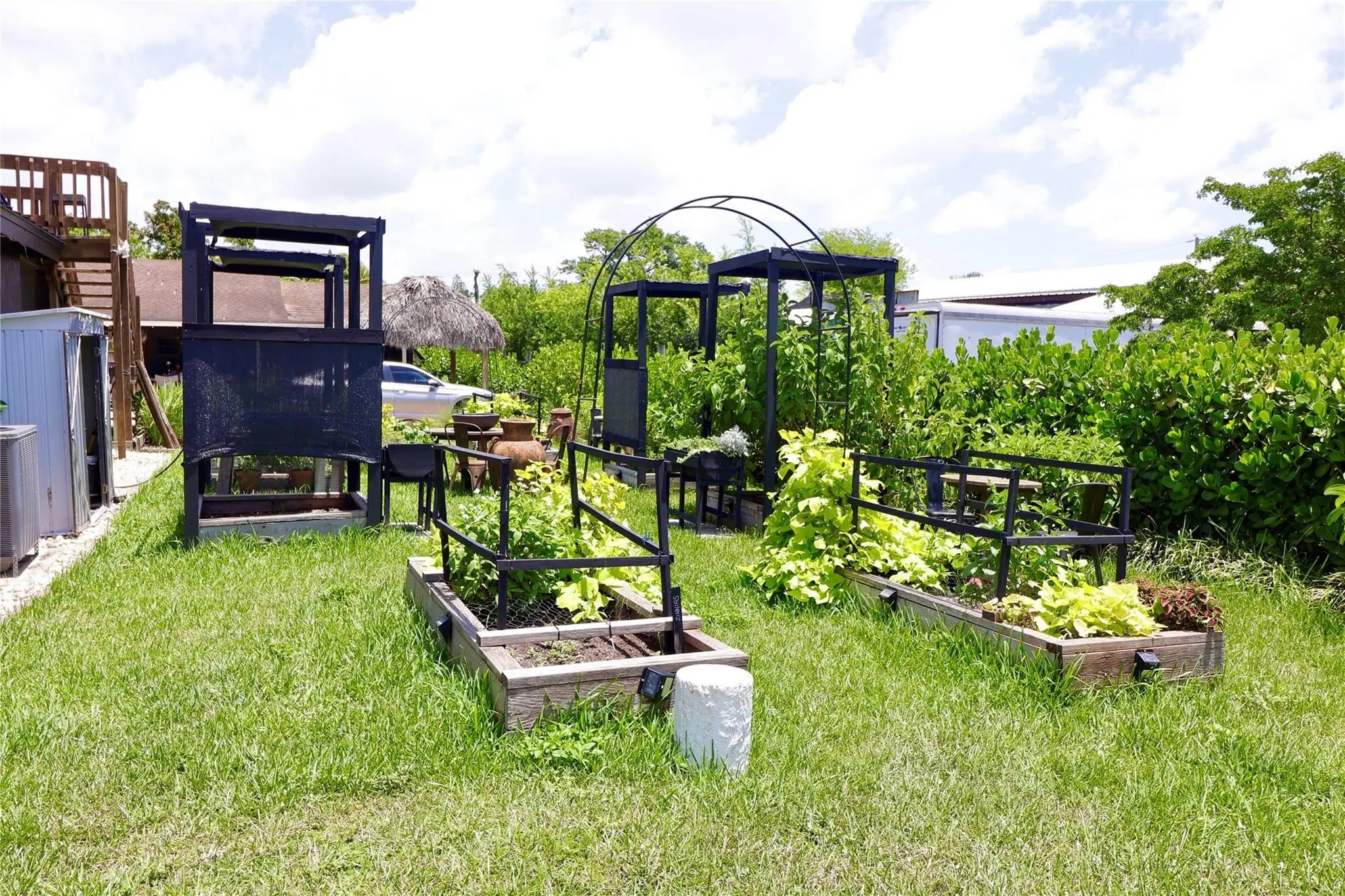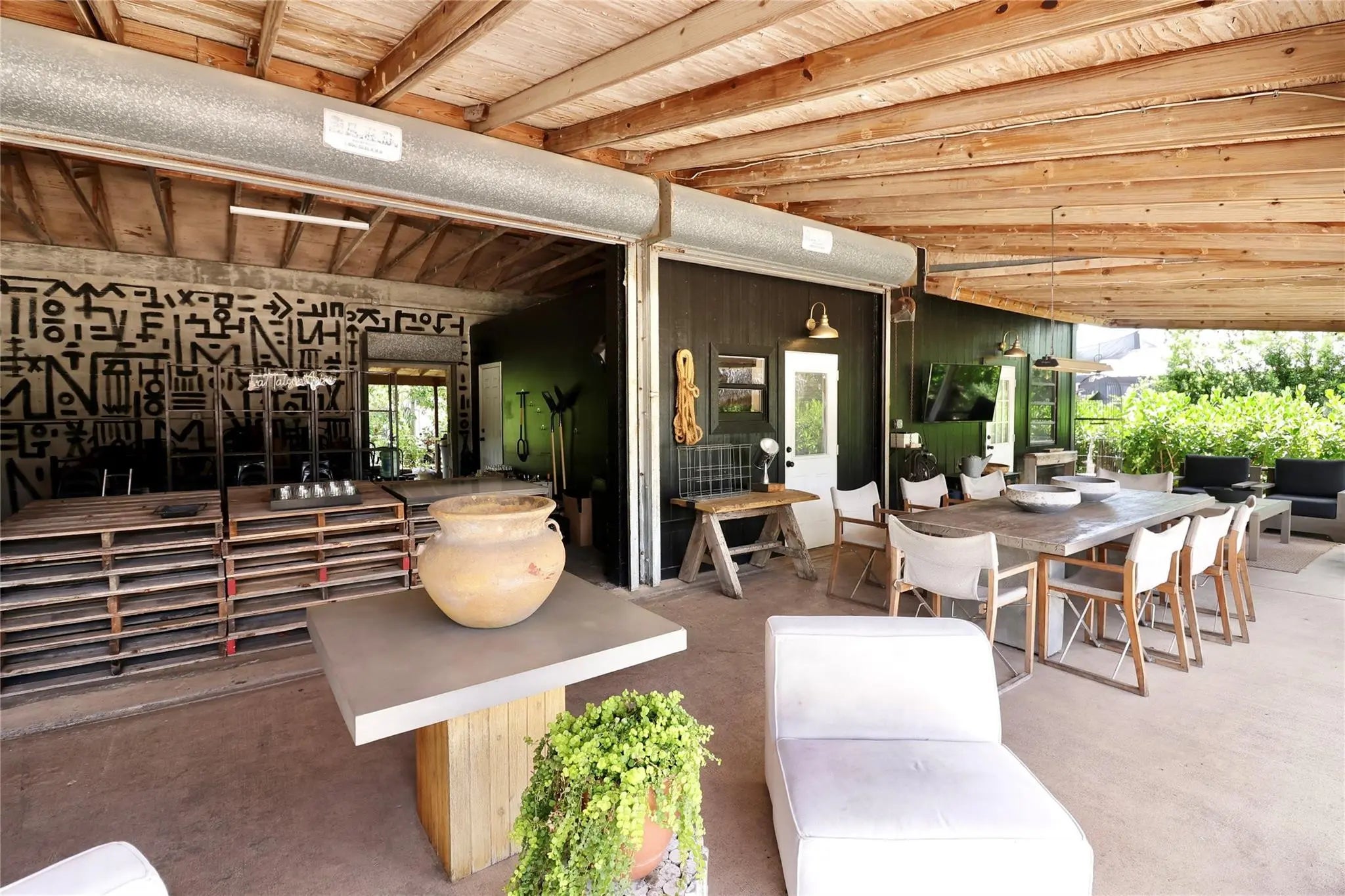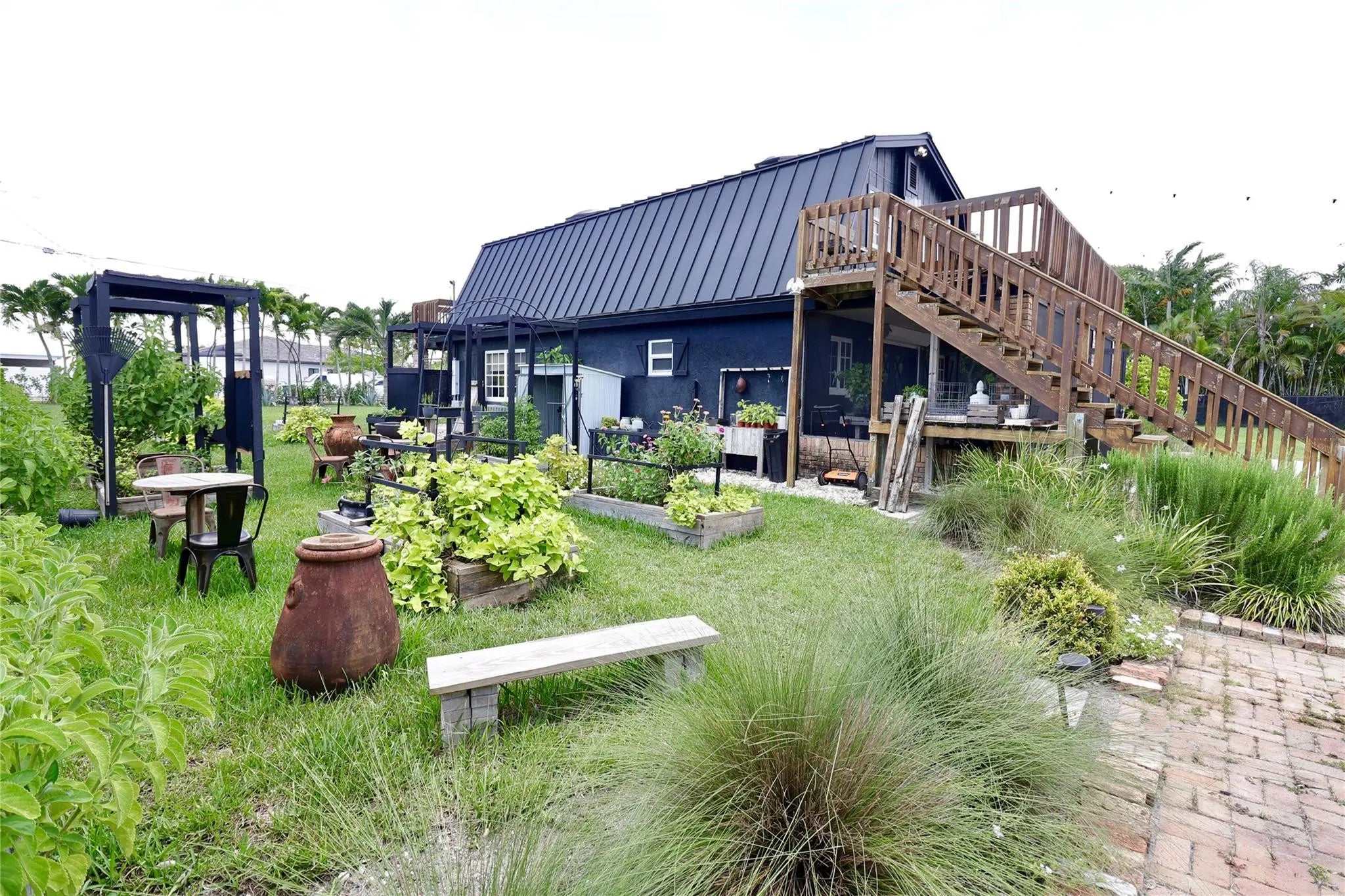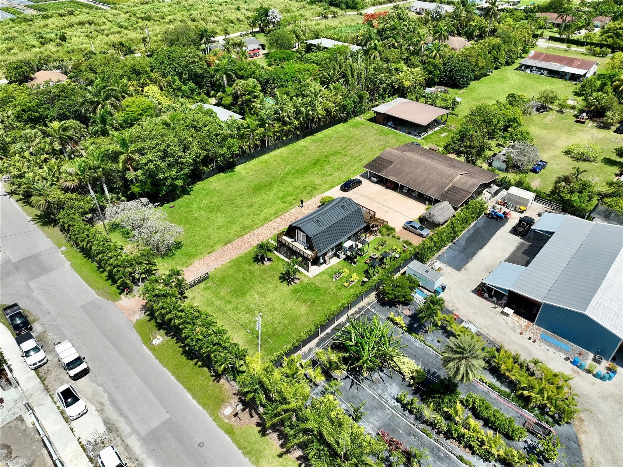 Redland farm home on a one acre lot, The main home consist of 2 bedrooms, 1 & 1/2 bathrooms, Wood ceilings, sky lights, French doors, front and back upstairs balcony with comfortable sitting areas to enjoy the sunset views. The guess house consist of 2 bedrooms, 1 full bathroom and a full kitchen. . Aluminum roof on the main home and shingle on the guess house. Can park up to 10 cars. Comfortable outdoor sitting areas for socializing, relaxation or to enjoy morning breakfast and coffee. The huge yard is a versatile event space and is designed to host memorable events such as weddings, birthday parties, BBQ's, Outdoor art exhibits, Networking events Ect...