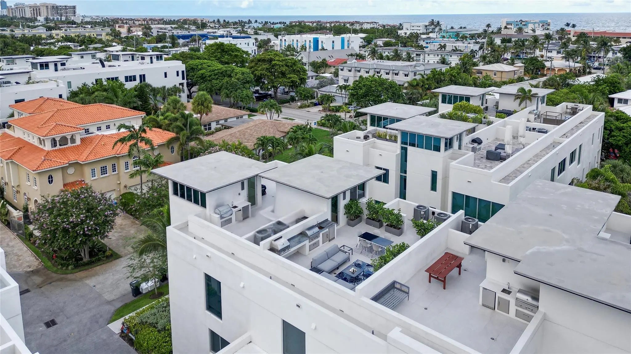 Completed in 2022, this 4-level townhome in Lauderdale-by-the-Sea blends modern luxury with laid-back beach living. Featuring 3 spacious bedrooms, 3.5 bathrooms, and elevator access to every floor, the home includes a chef’s kitchen, open living area, private terrace, and full guest suites. The top-level primary retreat offers dual walk-ins, a soaking tub, double vanities, and a spa-style shower. Enjoy sweeping rooftop views with a built-in summer kitchen, grill, and pizza oven—perfect for entertaining. Additional upgrades include a whole-home water filtration system and custom garage storage. Community perks: waterfront pool, spa, guest parking, and available boat slips. Walk to beach, shops, and dining. Modern coastal living is redefined in this four-level townhome located just steps from the beach in Lauderdale-by-the-Sea. Completed in 2022, this residence combines upscale finishes, functional design, and unbeatable lifestyle convenience in one exceptional offering.Boasting 3 large bedrooms and 3.5 bathrooms, the layout is thoughtfully spread across three expansive interior levels. The entry-level welcomes you with a semi-private courtyard, custom-fitted two-car garage, and an en-suite bedroom perfect for guests or a home office.Ascend the beautifully crafted floating staircase to the second floor, where a sleek chef’s kitchen, walk-in pantry, and laundry room flow seamlessly into the open-concept living and dining space. A stylish terrace extends the living area outdoors, while a chic powder room and second guest suite with full bath complete the level.Occupying the entire third floor, the primary suite retreat offers peace and privacy with two walk-in closets, a spa-style bathroom with soaking tub, double vanities, and a dramatic glass-enclosed shower. A cozy sitting area rounds out this private sanctuary with lush views.Crowning the home is an entertainer’s dream rooftop terrace featuring panoramic views of the ocean, city skyline, and swaying palms. Outfitted with a summer kitchen, built-in grill, and pizza oven, this level offers the perfect setting for sunset gatherings. Other upgrades include a full-property water filtration system and a modern elevator with an upgraded cabin servicing all floors.Community highlights include a waterfront pool, spa, boat slips (as available), and ample guest parking. Walkable to dining, shopping, and sandy shores, this is carefree beach town living at its finest—close to both Fort Lauderdale and Boca Raton.