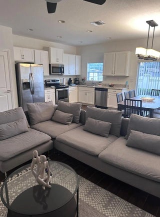 Beautiful furnished townhouse 3 bedrooms + 2 full Bathrooms + half guest bathroom, open layout, stainless steel appliances, Quartz countertop, modern wood kitchen cabinets, new furniture all around the property, full equipped, Washer and Dryer family size, covered garage, gated community, club house with nice pool area. Beautiful community with excellent location