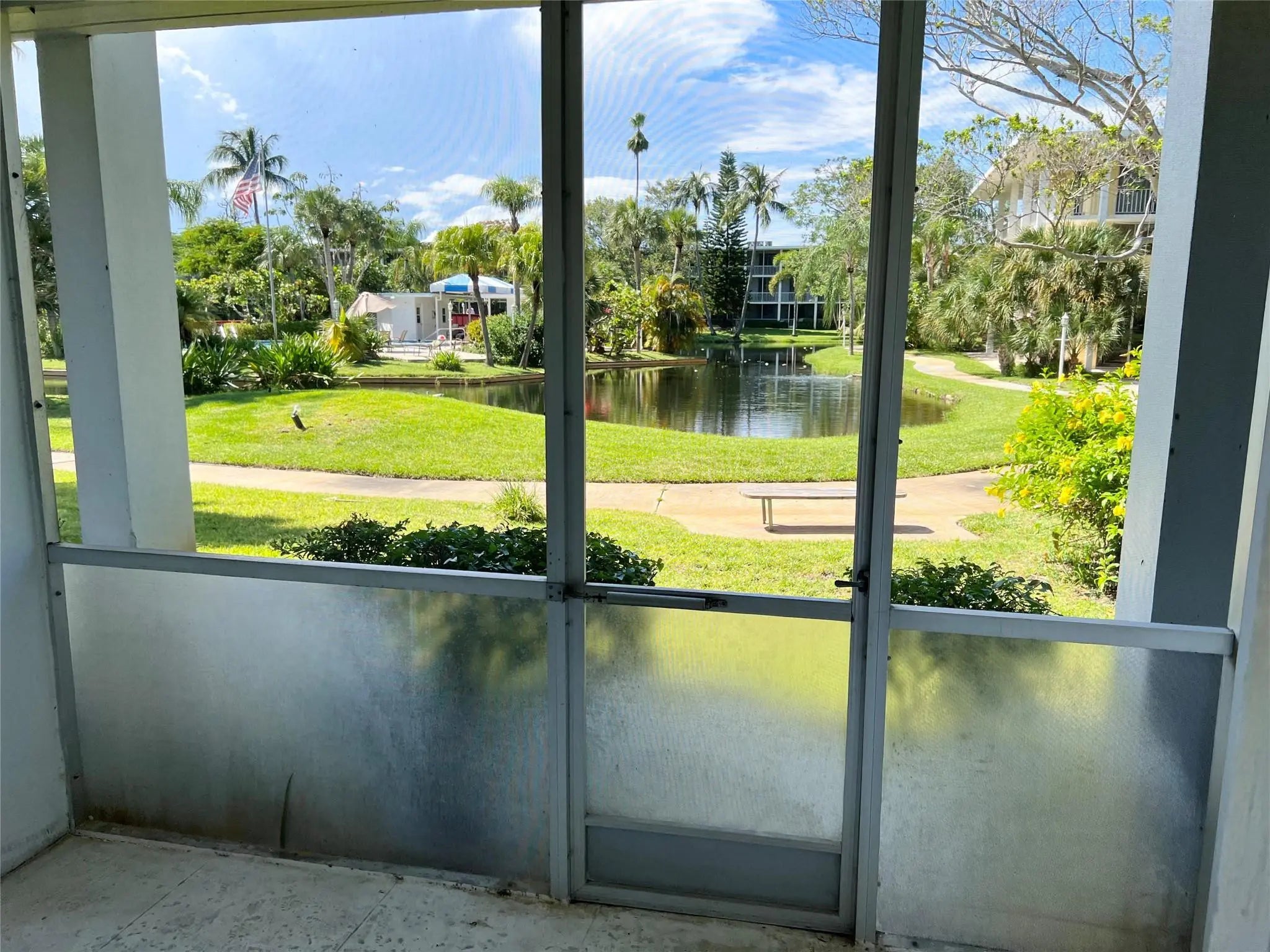 RARE OPPORTUNITY for INVESTOR!!! Tenant occupied and Leased until 8/31/2026 at $1550.00 per month. This first floor studio with large screened in patio directly faces a stunning lake and water fountains in the very quiet community of Deerfield Lake. Fresh paint throughout Unit. New waterproof vinyl flooring, backsplash and baseboards. Updated light fixtures. GREAT Location in East Deerfield Beach with easy access to Federal Hwy, I-95, or Sawgrass Expressway. Close proximity to beaches, stores, restaurants, and entertainment options. Amentities include heated community pool located on an island, clubhouse, walking trail around the lake, BBQ, laundry facilities, etc. Special Assessment to cover SIRS cost is $601.79 per year for next 11 years.