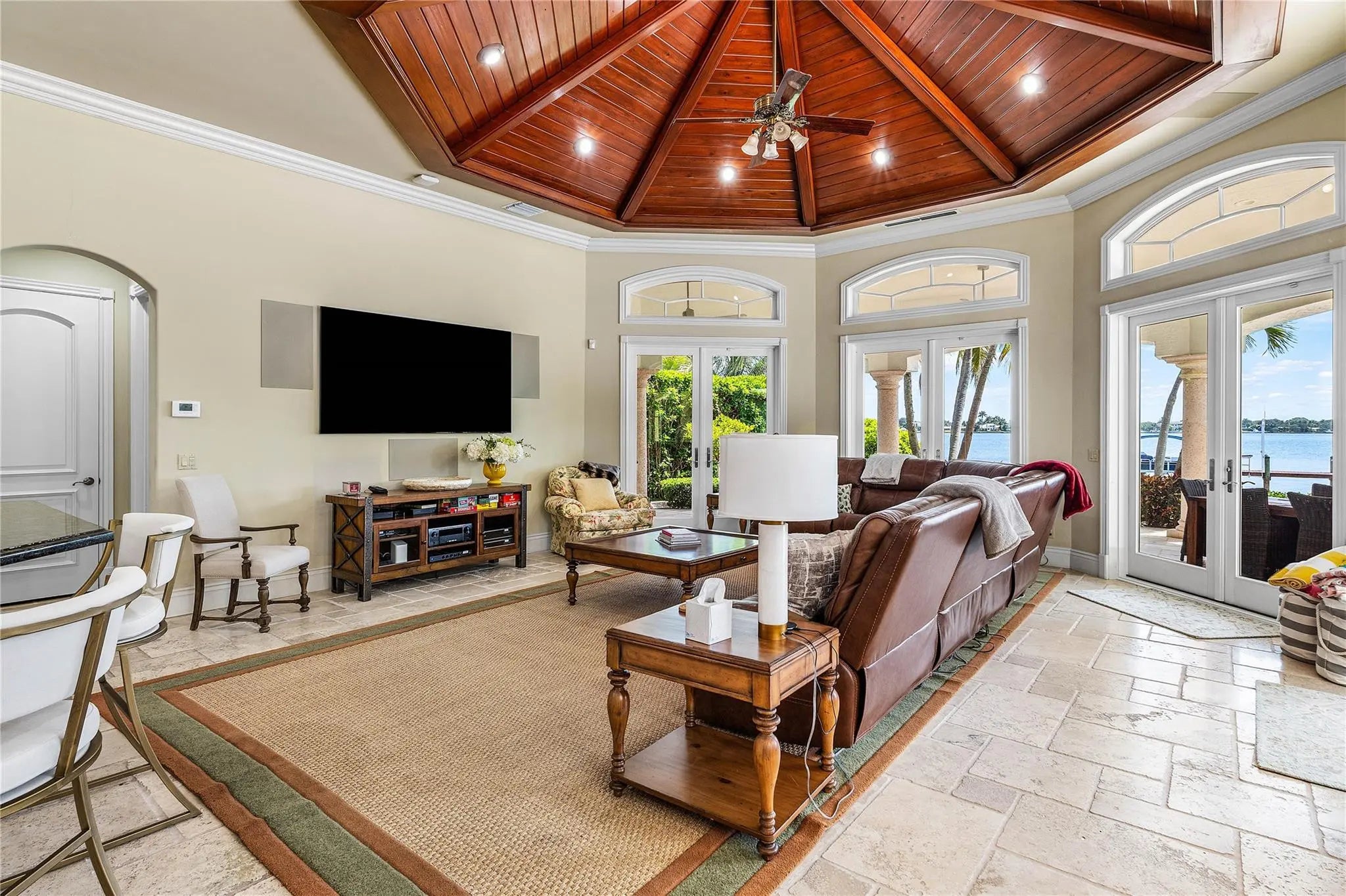 Stunning seasonal rental on the widest section of the Loxahatchee River with unobstructed water views all the way to the Jupiter Lighthouse. This fully furnished 4BR/4.5BA residence offers king beds and en suite baths in every bedroom, an open kitchen with adjoining dining and den, formal living and dining rooms, private office, cabana bath, large laundry, and 4-car garage. Enjoy the ultimate indoor-outdoor lifestyle with pool, dock, covered patio with BBQ and outdoor dining, fresh breezes from the river. Just minutes to Jupiter’s beaches, golf, fine dining and shopping. Home is very well equipped with large chefs kitchen, superior linens and furnishings. Pet Friendly.