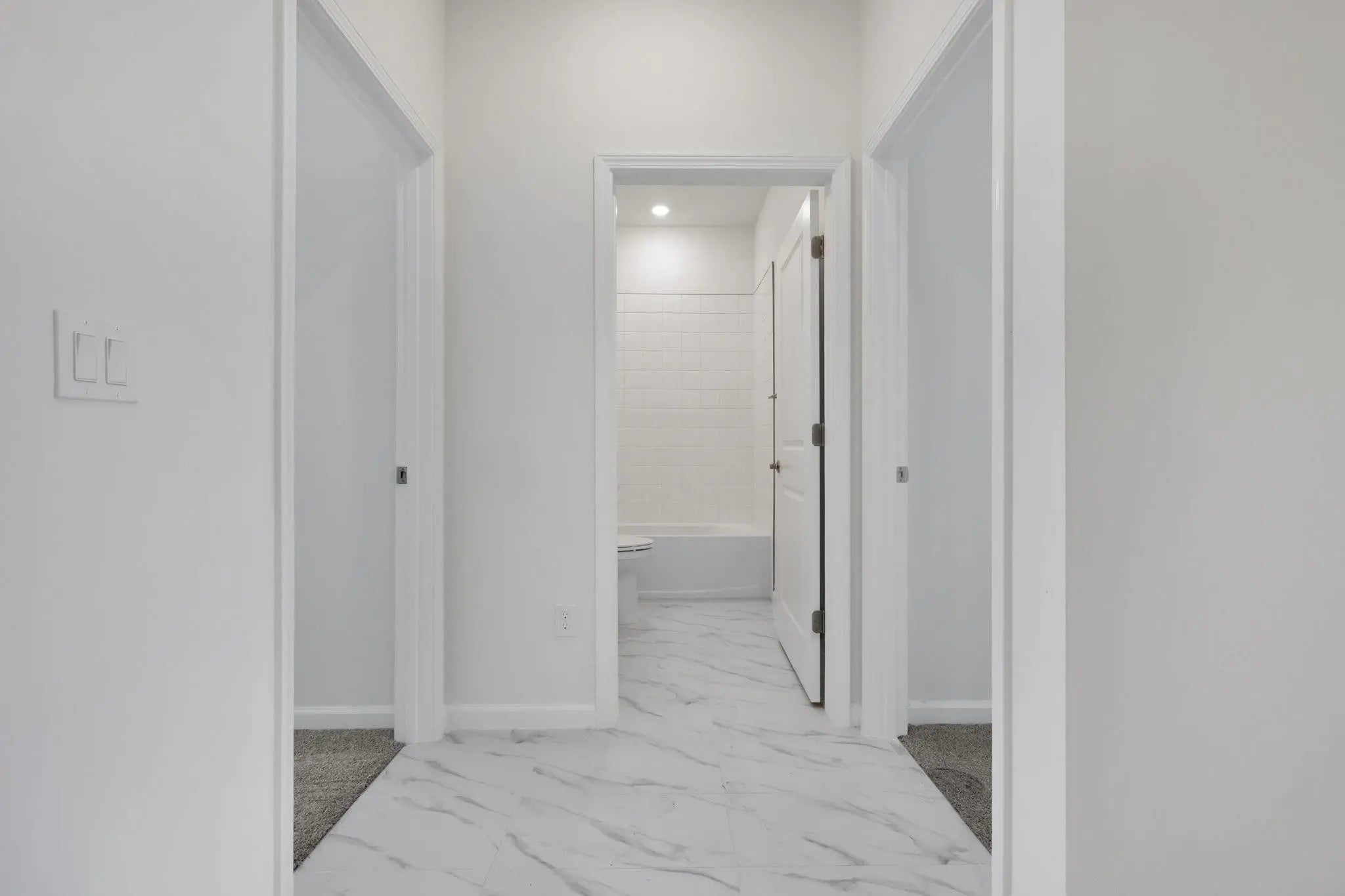 Single-story Hillcrest home perfect for modern living. This 1,814 sq. ft. floorplan features 4 spacious bedrooms and 2full bathrooms, offering comfortable space for family and guests. Step inside to a large foyer and hallways atthe front of the home that provide separation and privacy between living spaces. The inviting open-conceptliving area seamlessly connects the great room and kitchen, while a separate dining space off the kitchenoffers a dedicated area for formal meals. The kitchen is a chef’s delight, boasting a large island withseating—perfect for casual meals or entertainment. The primary suite includes a private bathroom featuringdouble vanity sinks and a generous walk-in closet.
