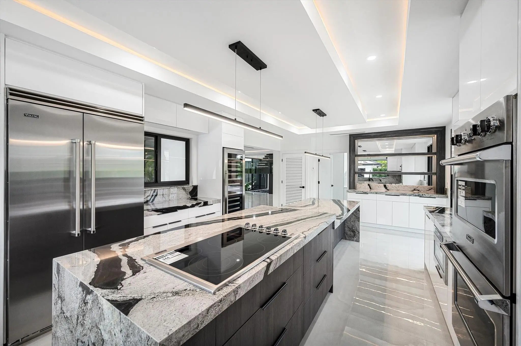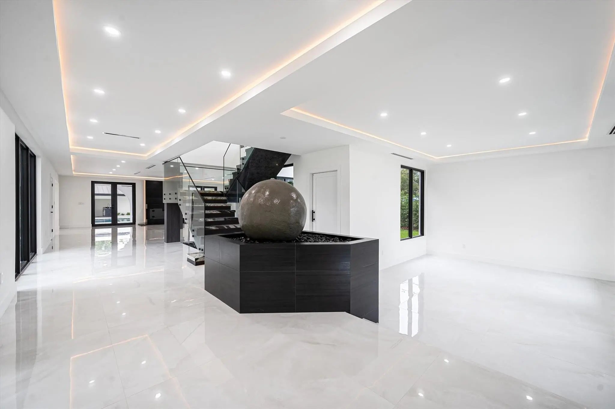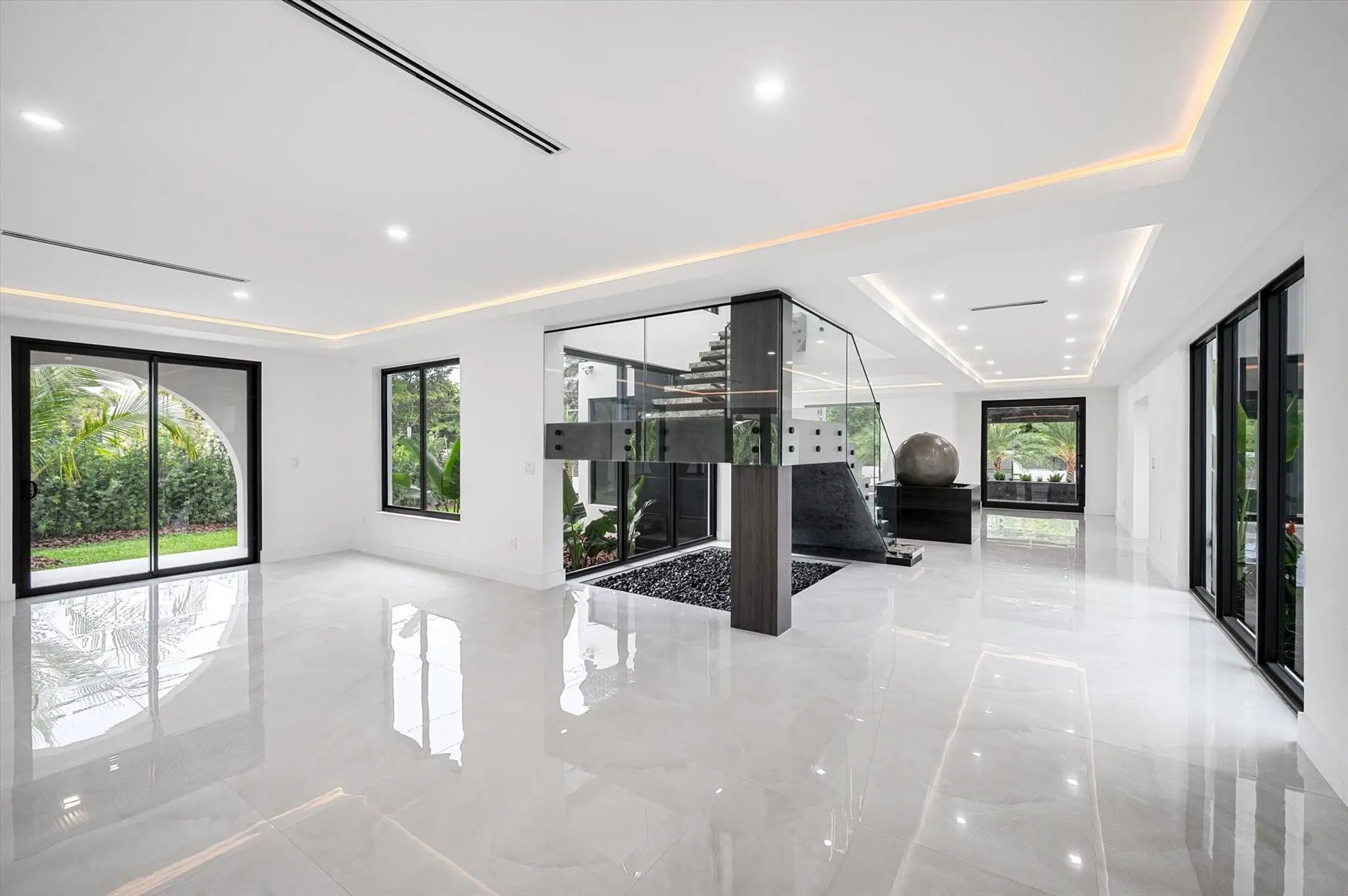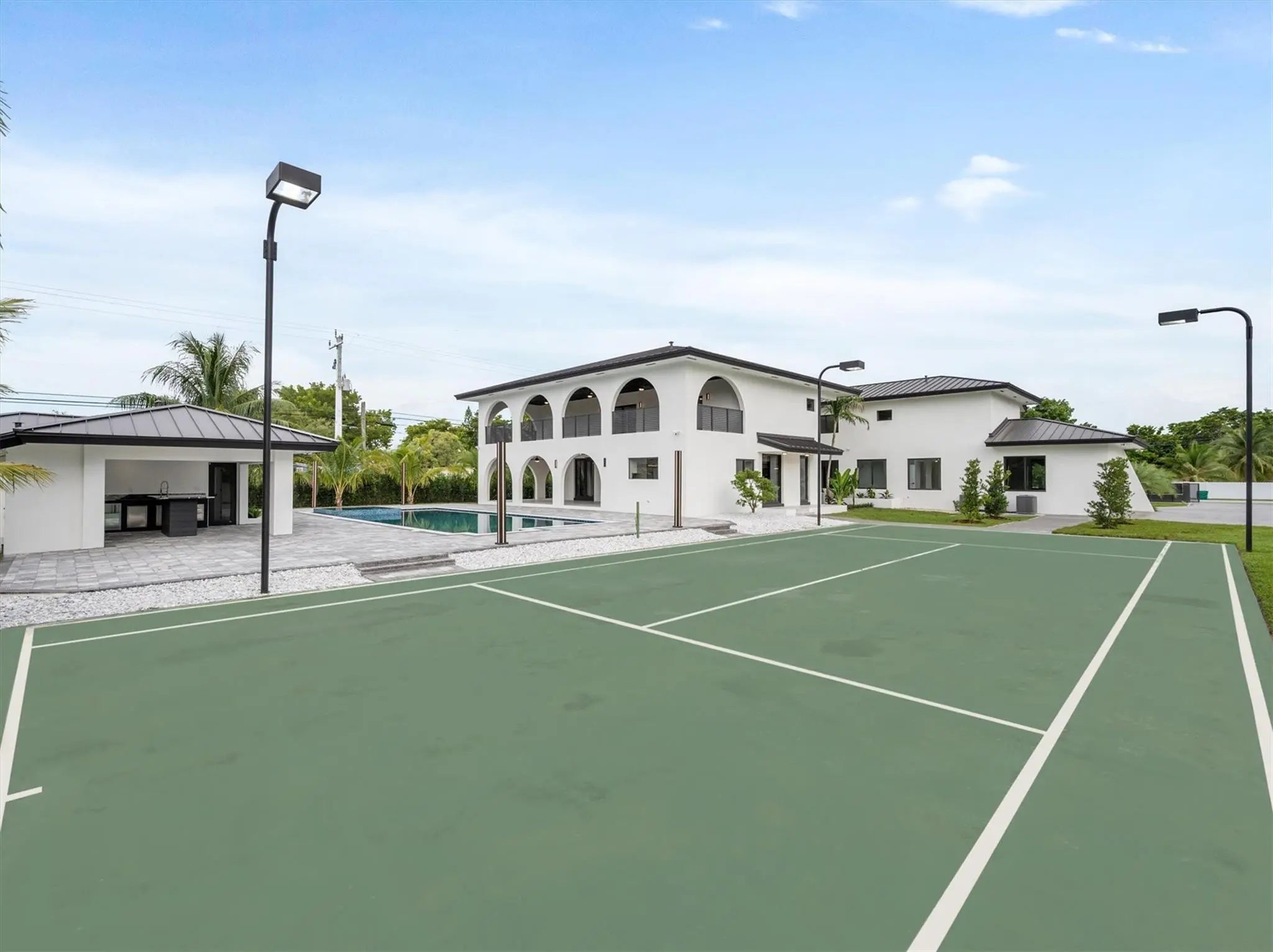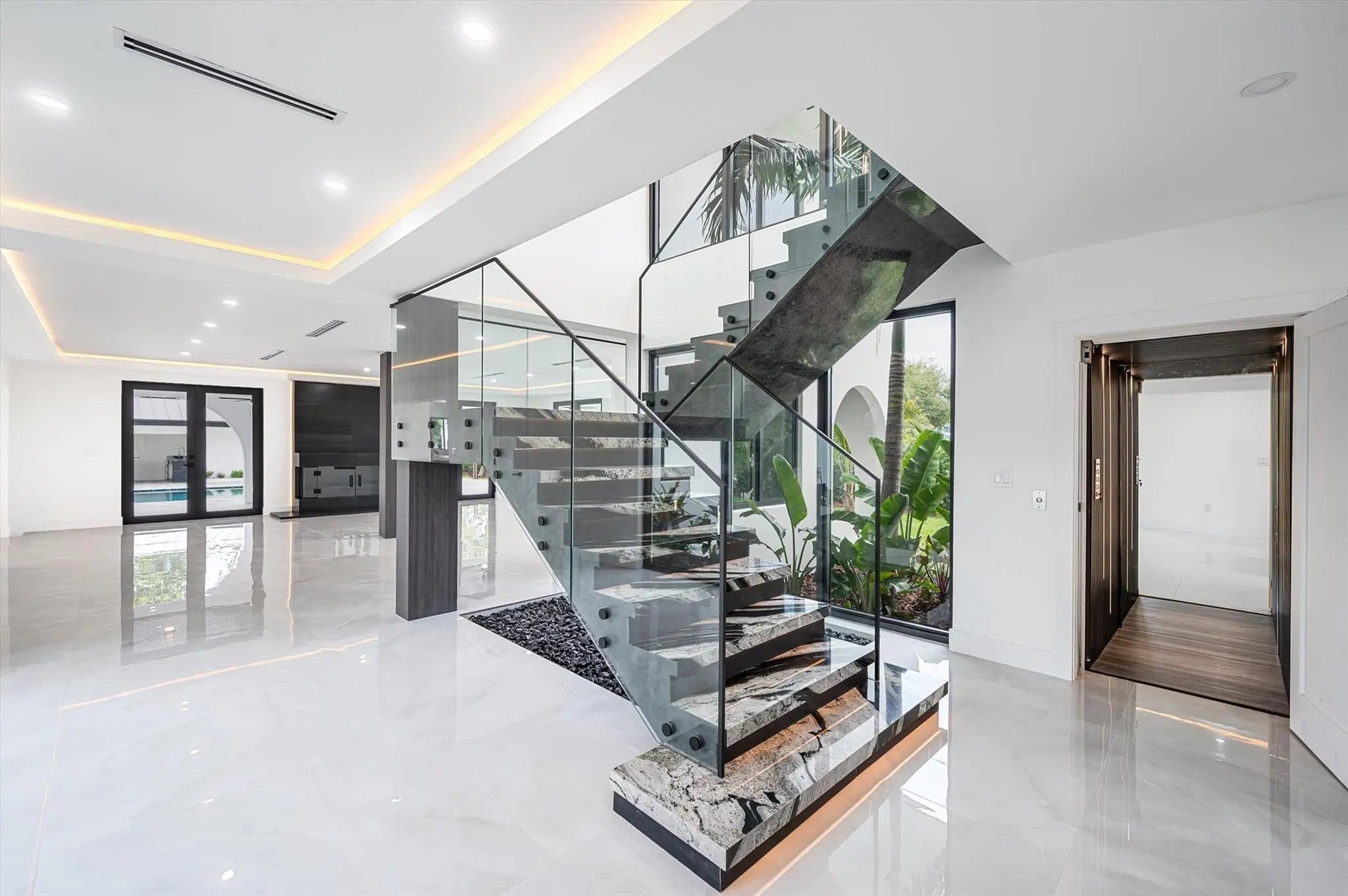 Nestled in the prestigious Miller Estates, this 7,000+ sq ft residence sits on over an acre in one of the most sought-after neighborhoods. A grand circular driveway, expansive carport, and pivot front door set the tone for a resort-like lifestyle. Inside, every detail shines—from a marble staircase, elevator, and water feature to a brand-new metal roof, impact windows, and designer LED lighting. Enjoy a massive kitchen, resort-style pool, basketball court, 2/1 guest house, and a bonus detached space ideal for a gym, yoga studio, or cigar lounge. Offering elegance, comfort, and privacy while just minutes from major highways, this estate truly has it all.