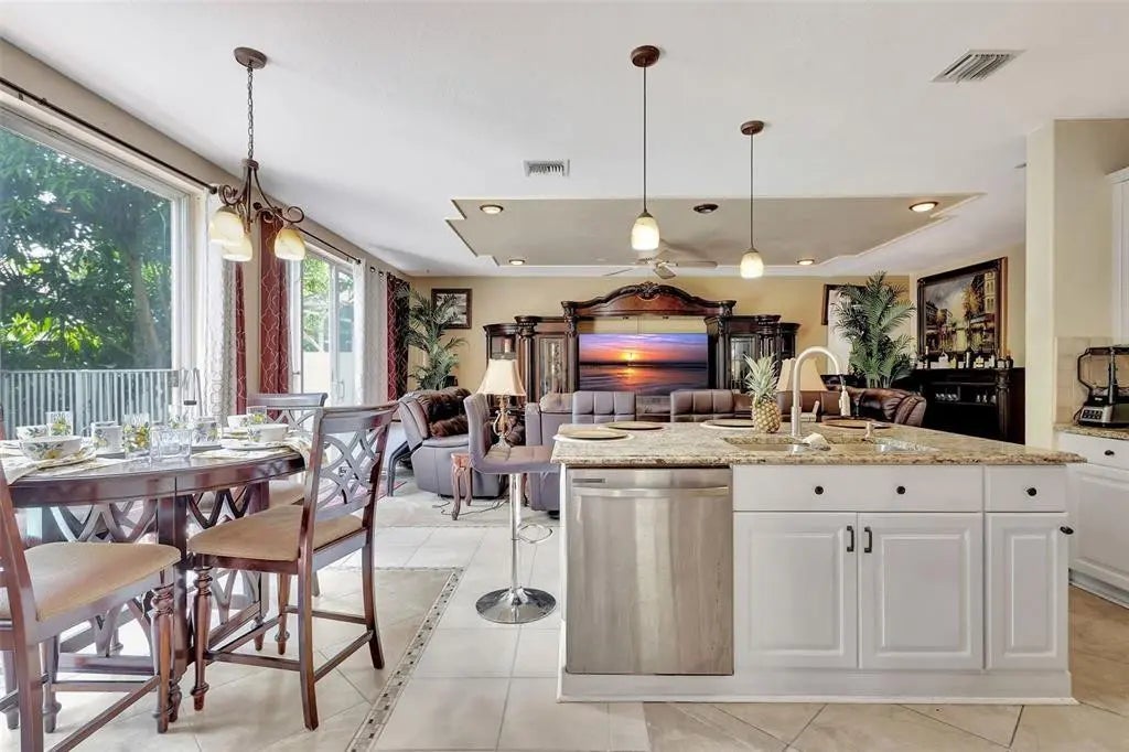Nestled in a family-friendly, gated community, this stunning 5-bedroom, 3-bathroom home epitomizes luxurious living. The grand living room, with its vaulted ceilings and elegant plantation window treatments, creates a sophisticated atmosphere. The modern kitchen, updated with state-of-the-art appliances in 2024, is perfect for culinary creations. The thoughtful layout includes a first-floor bedroom and full bathroom, ideal for guests, an office, or multi-generational living. The spacious master suite features a luxurious bathroom, offering a private sanctuary. Outside, the expansive yard with a sparkling pool provides a serene retreat, blending comfort, style, and convenience. Perfect for hosting gatherings or enjoying peaceful moments.