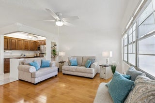 Welcome home to this spotless, updated and cheerful 1 bed 1 bath home in delightful Century Village East. Minutes to everything you need & want (shopping, restaurants and beach), CV offers its residents amazing amenities and social activities. The home features new AC, new fans/lighting, new appliances, new closet doors, new furnishings, new electric panel and crown molding. A new roof was just installed! No carpet anywhere! Wood laminate flooring in the living room and bedroom, tile in the kitchen and bathroom. Grill steaks at the newly refurbished patio overlooking the lake. No noise from the laundry room located immediately next door! Clubhouse is just nearby. From the rear lanai, enjoy direct access to your vehicle! Enjoy the amazing Florida lifestyle you've been dreaming of!