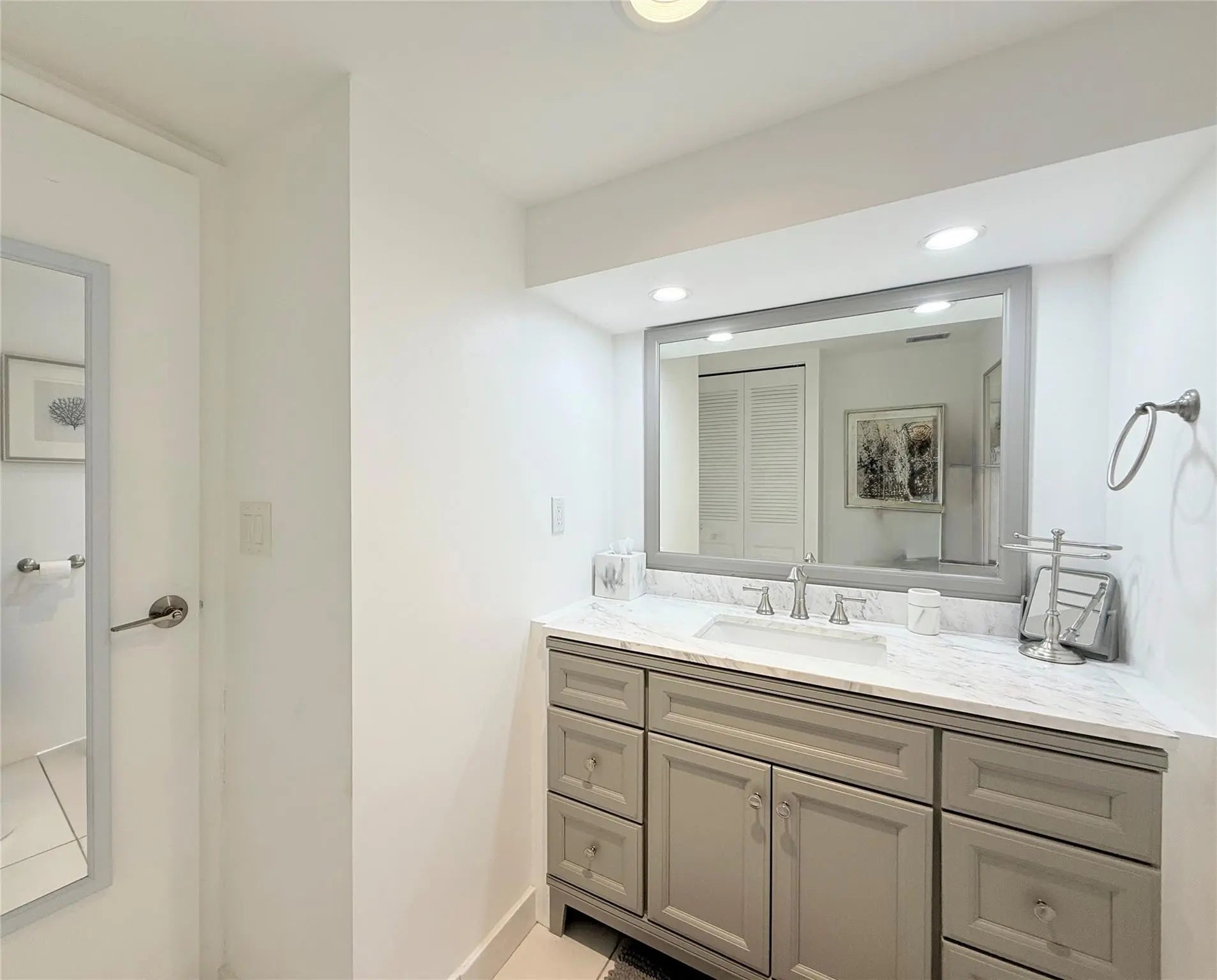 STYLISH, MOVE-IN READY RETREAT! Step into this ELEGANT & BRIGHT 1BR/1.5BA condo, sold turnkey furnished and ready to enjoy. The sleek white open kitchen features stunning gray granite countertops, while the RENOVATED BATHROOMS impress w/ white QUARTZ surfaces & MODERN gray-and-white vanities.Relax in the spacious bedroom with rich wood-look laminate flooring & a luxurious KING BED, or gather in the living area & kitchen with crisp white tile. Your long screened Florida room is perfect for unwinding and enjoying peaceful mornings or sunsets. Modern updates: roll-down shutters, water heater (2018), AC (2020). Located in an active 55+ community just steps from swimming pool, w/Civic Center offering heated pools, pickleball, bowling, billiards, tennis, basketball, fitness center & much more!