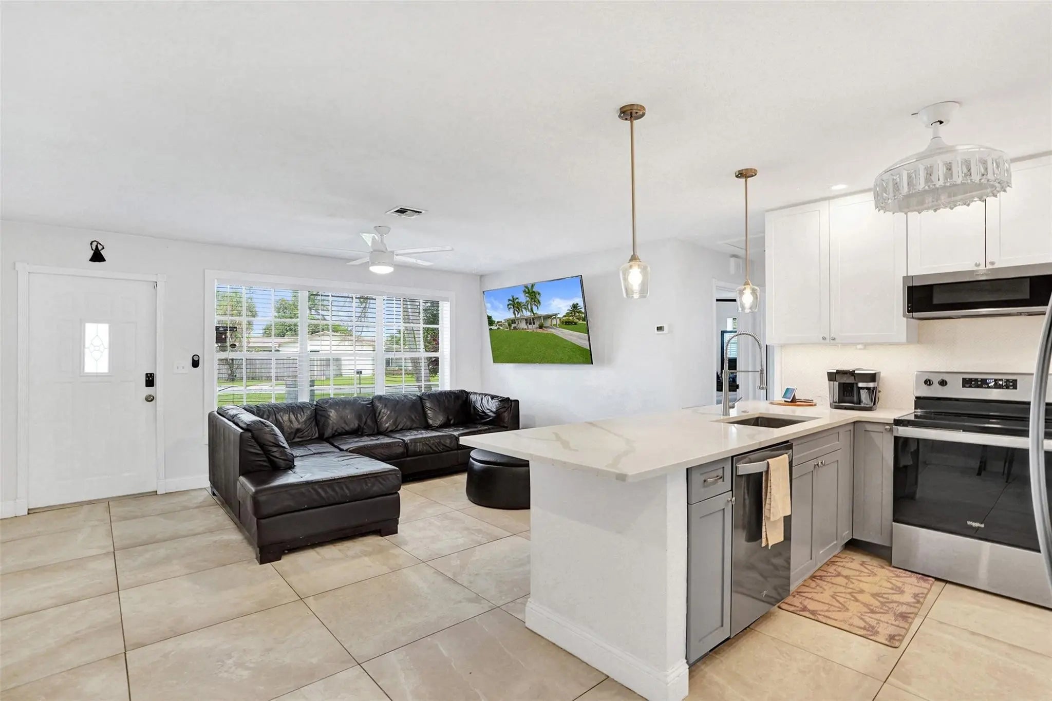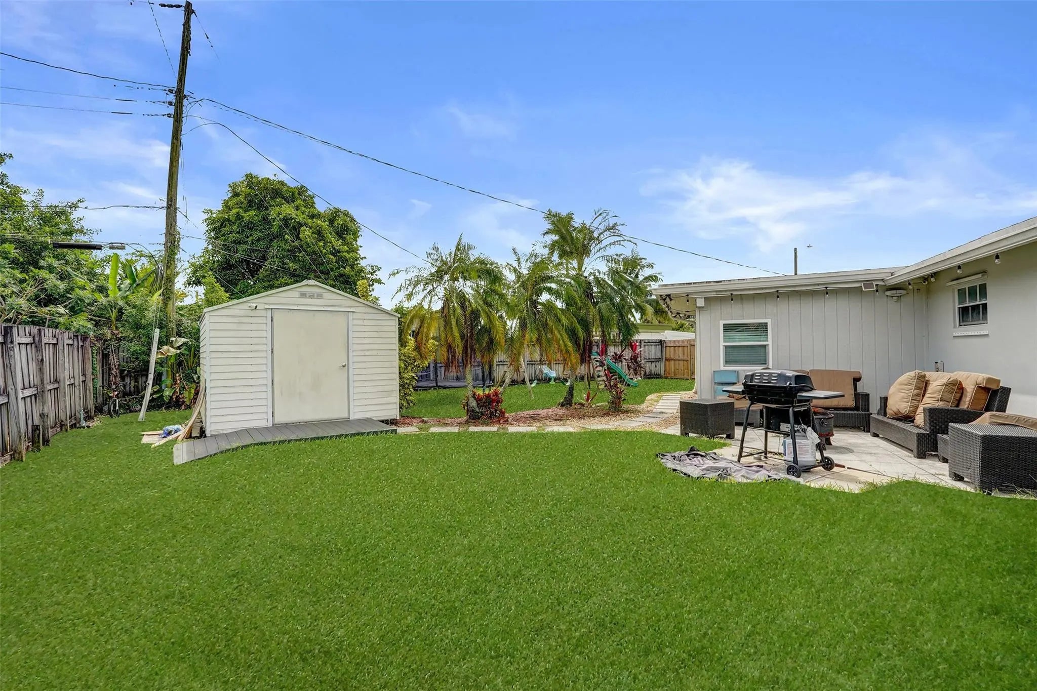 Move-in ready 2-bedroom, 1-bath single-family home situated on a corner lot with no HOA. Features include a newer roof, impact windows, and a bright open floor plan. The remodeled kitchen boasts quartz countertops, stainless steel appliances, white shaker cabinets, and pendant lighting. The backyard is fully fenced with plenty of space for a pool, patio, or playset. Additional highlights include a covered carport, outdoor sitting area, and storage shed. Close to schools, parks, and shopping.