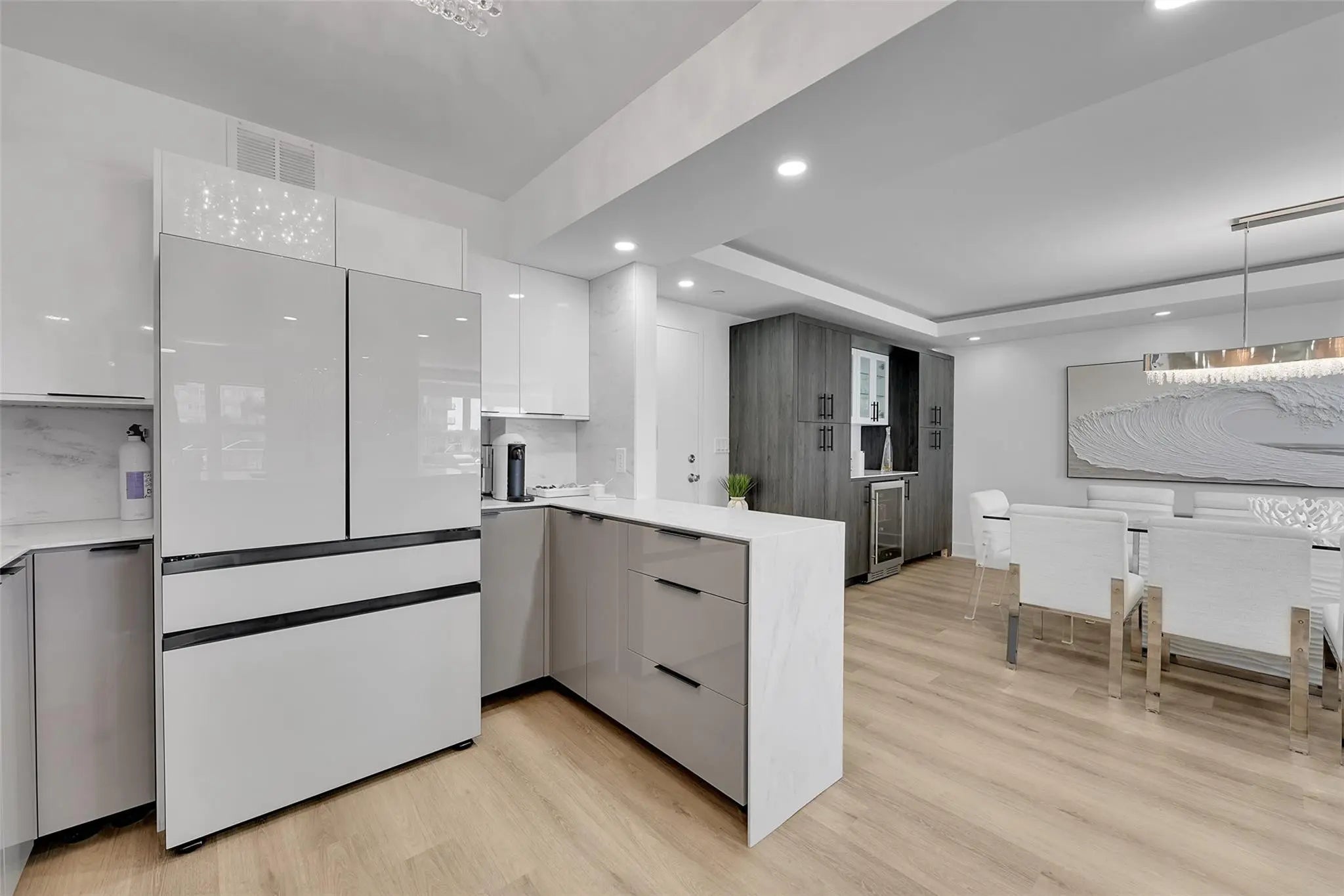 Stunning, fully updated 2 Bed / 2 Bath ocean-view condo overlooking world-famous Pompano Beach. This spacious 1,200 sq. ft. residence was completely renovated in 2023 from top to bottom. Features a spectacular open gourmet kitchen with high-end appliances, quartz countertops & custom cabinetry. Both bathrooms beautifully redesigned with modern finishes. The seller, a professional cabinet maker, added exceptional custom details throughout, including dramatic closets and built-ins. Enjoy ocean views from the oversized balcony and peace of mind with all impact windows and doors. Luxury building with Resort-style amenities include a heated pool, sauna, fitness center, BBQ area, card room, meeting room, library, 24-hour doorman. Perfectly located near vibrant dining, shopping, & entertainment!