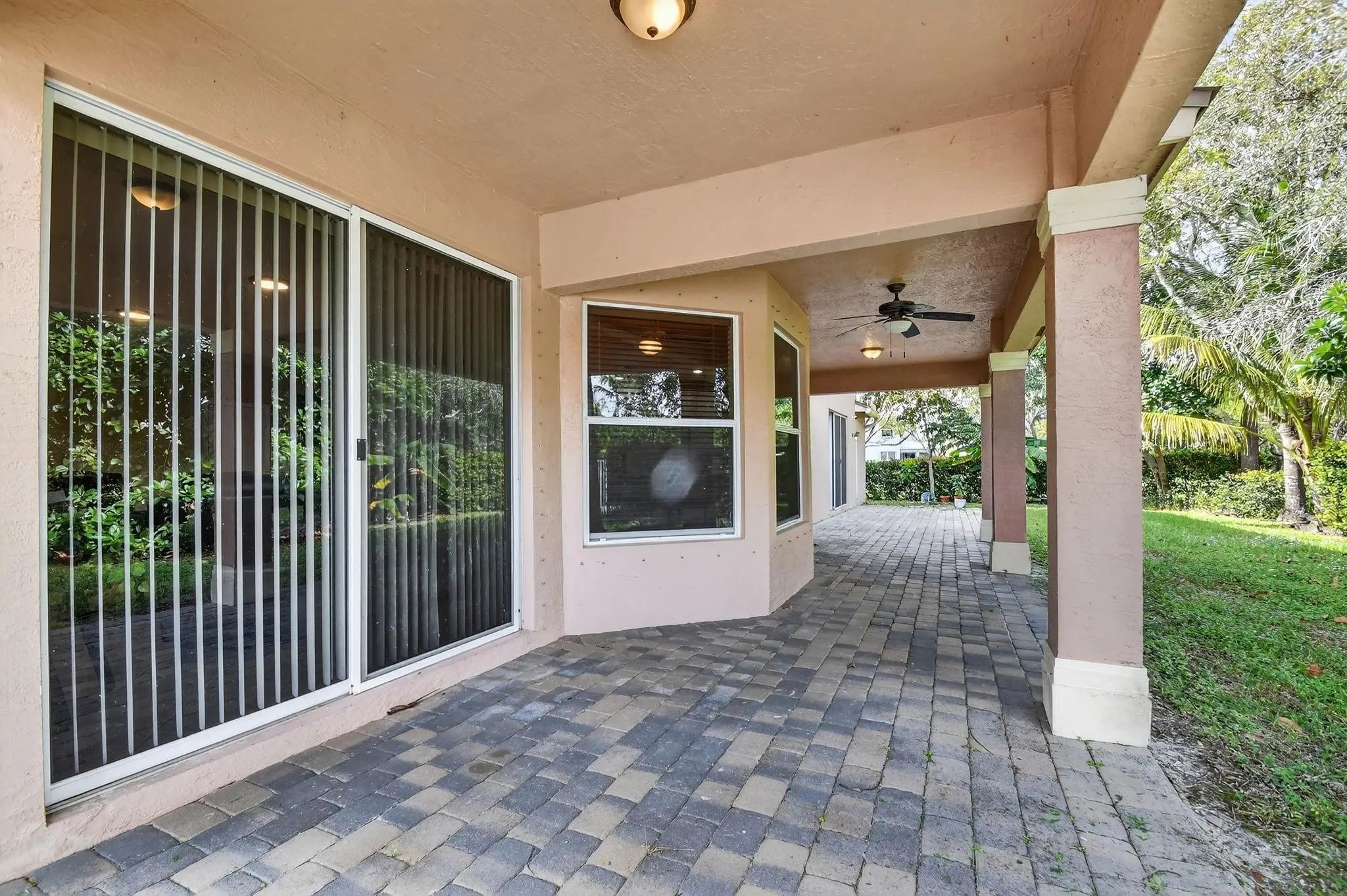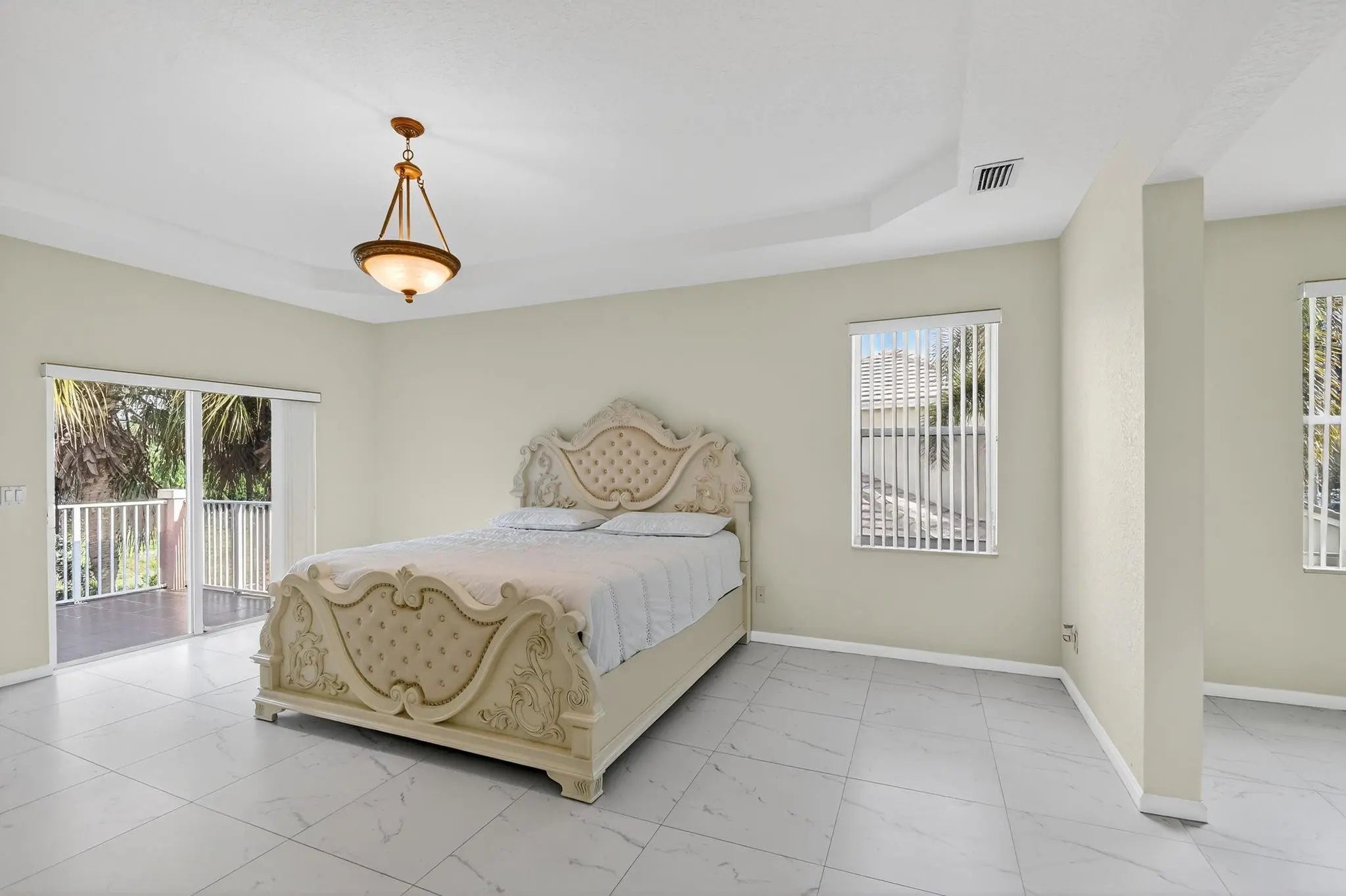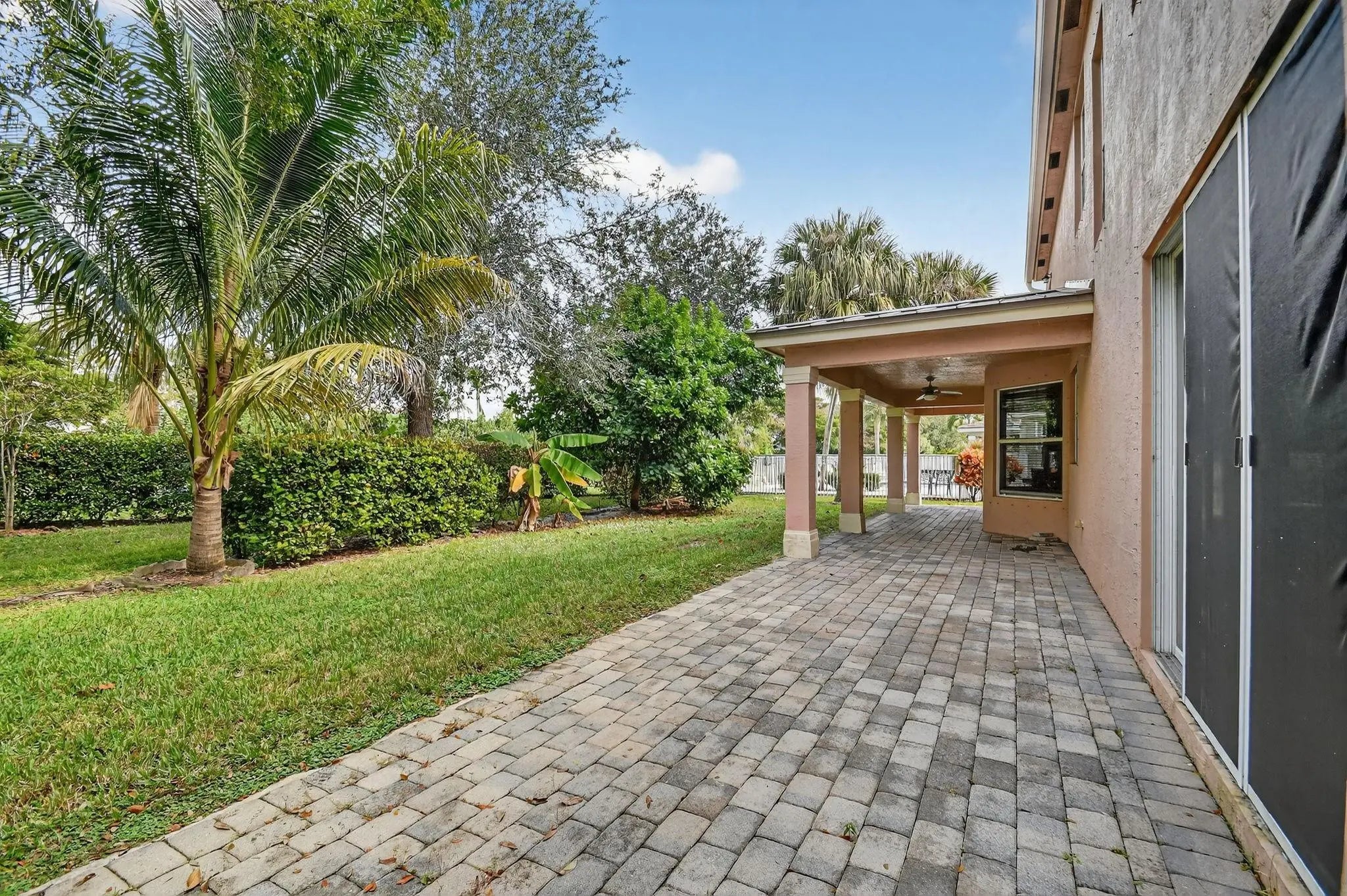 RARE FIND IN SAVANNAH ESTATES! Exceptional 7BR/5BA home on private 0.20-acre corner lot with NO rear neighbors - incredible potential awaits! Grand foyer features soaring 22-foot ceilings making a stunning first impression. Spacious family room pre-wired for projector and surround sound, perfect for entertainment. Primary suite includes private balcony retreat. Recent upgrades: brand-new 2024 aluminum roof, extended patio for outdoor living, and new tile plank flooring in two bedrooms. Lush landscaping includes avocado, guava, yucca, and coconut trees. Exclusive gated community of only 140 homes offers security, low HOA fees, family-friendly atmosphere, and proximity to top-rated Lake Worth schools. Strong investment potential in this desirable neighborhood. Schedule your private showing!