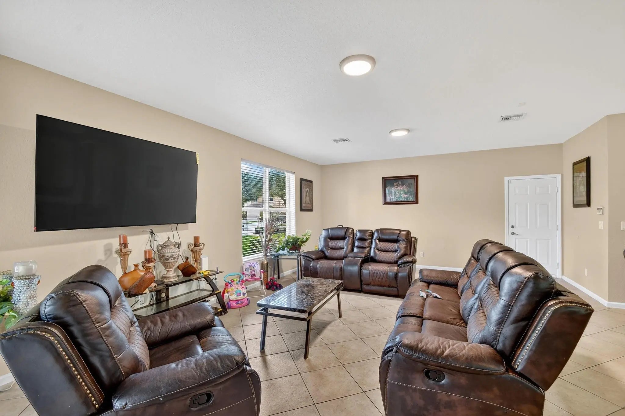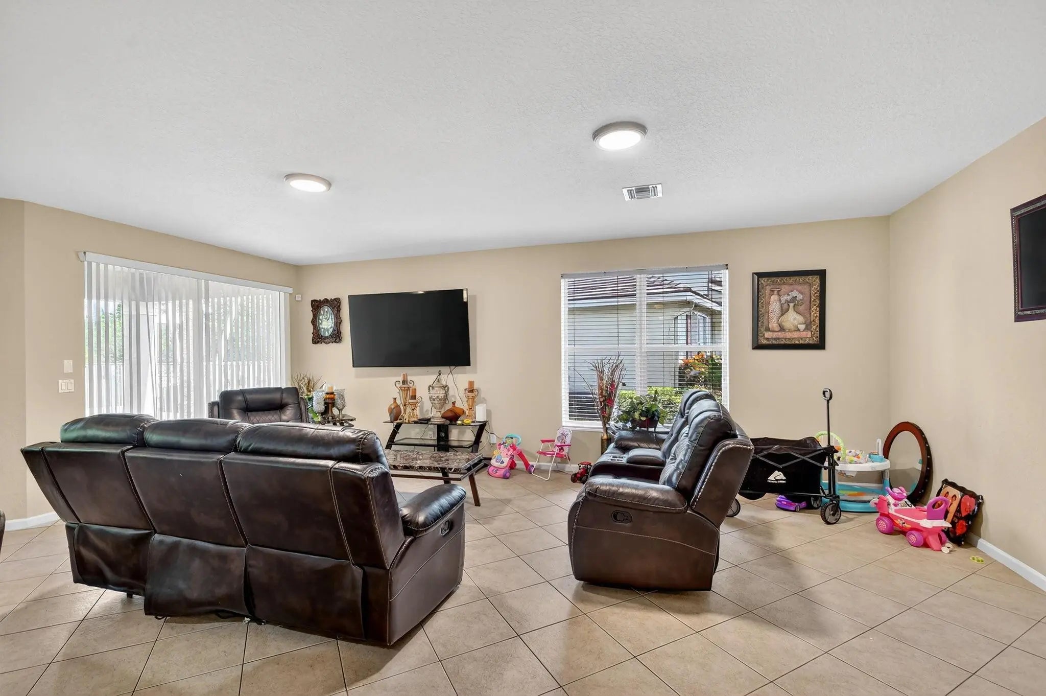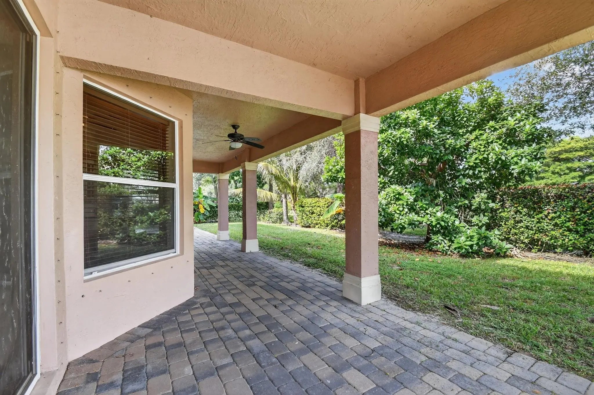 RARE FIND IN SAVANNAH ESTATES! Exceptional 7BR/5BA home on private 0.20-acre corner lot with NO rear neighbors - incredible potential awaits! Grand foyer features soaring 22-foot ceilings making a stunning first impression. Spacious family room pre-wired for projector and surround sound, perfect for entertainment. Primary suite includes private balcony retreat. Recent upgrades: brand-new 2024 aluminum roof, extended patio for outdoor living, and new tile plank flooring in two bedrooms. Lush landscaping includes avocado, guava, yucca, and coconut trees. Exclusive gated community of only 140 homes offers security, low HOA fees, family-friendly atmosphere, and proximity to top-rated Lake Worth schools. Strong investment potential in this desirable neighborhood. Schedule your private showing!