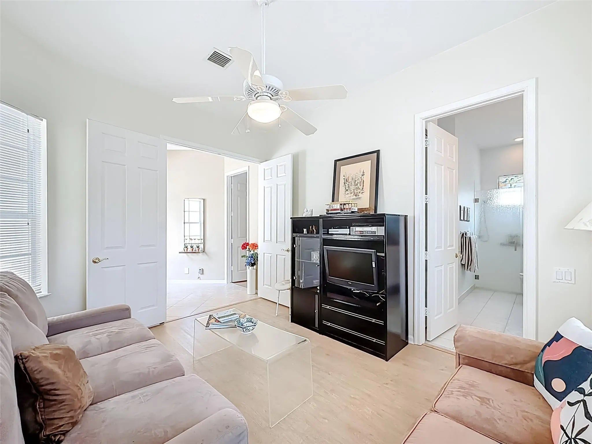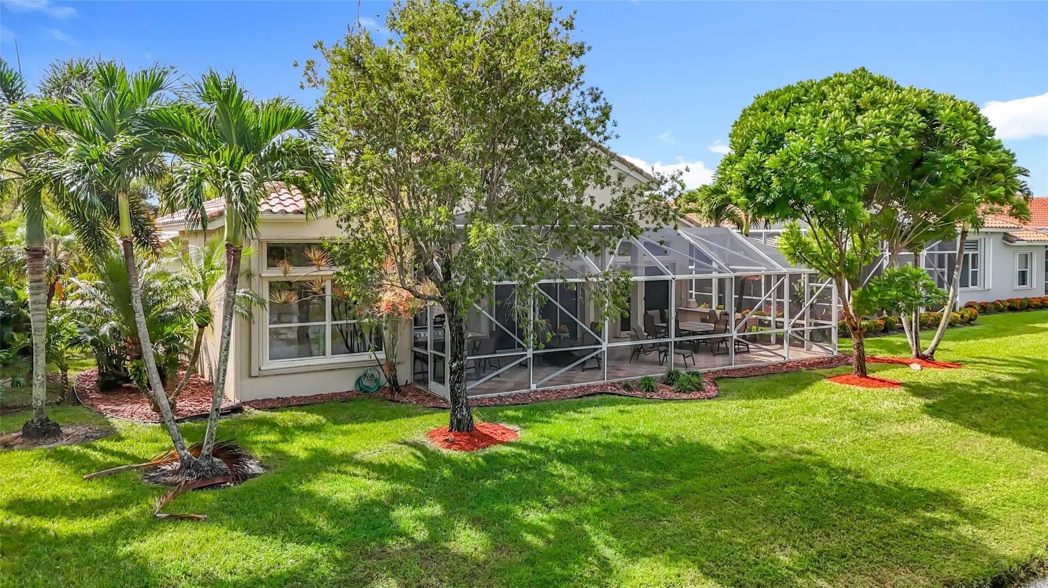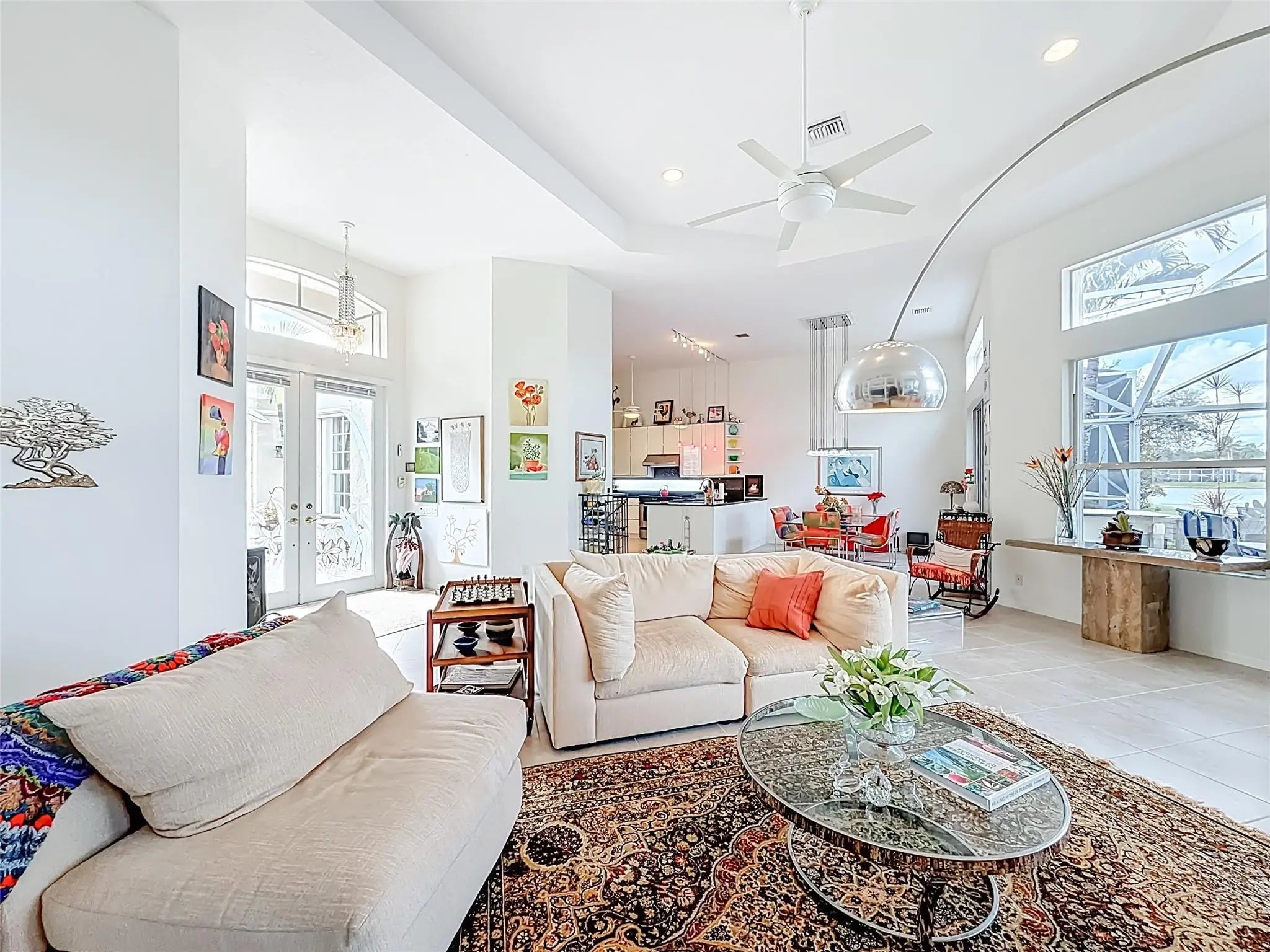 This home was purchased when built and the owner had custom changes made making it total open concept in the living area and some other surprises likely not seen in other homes. It has 2 full bedrooms + another bedroom that's a sitting room now and only needs an armoire + another room that's a den, craft room, grandkids playroom.The view when you walk thru the front door is of the lake and no neighbors behind you. They sliding glass doors are throughout the entire living space opening to an expansive screened patio with a built-in barbeque grill. This home is tastefully decorated and much of the furniture is negotiable. A/C is 5 yrs old, Water heater replaced 7/2022. **DON'T MISS SEEING THIS ONE!!**
