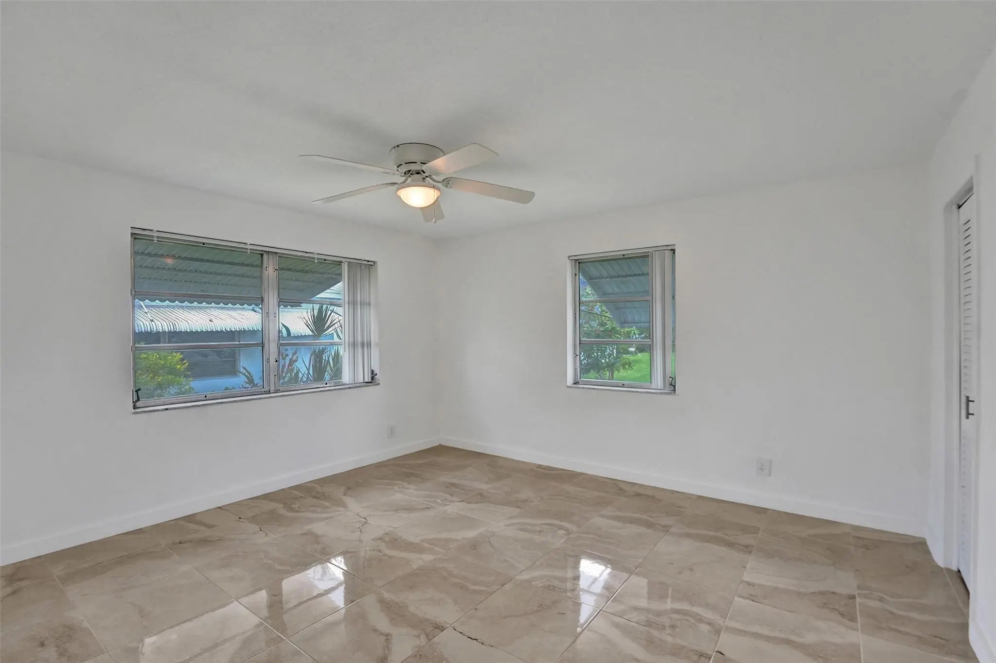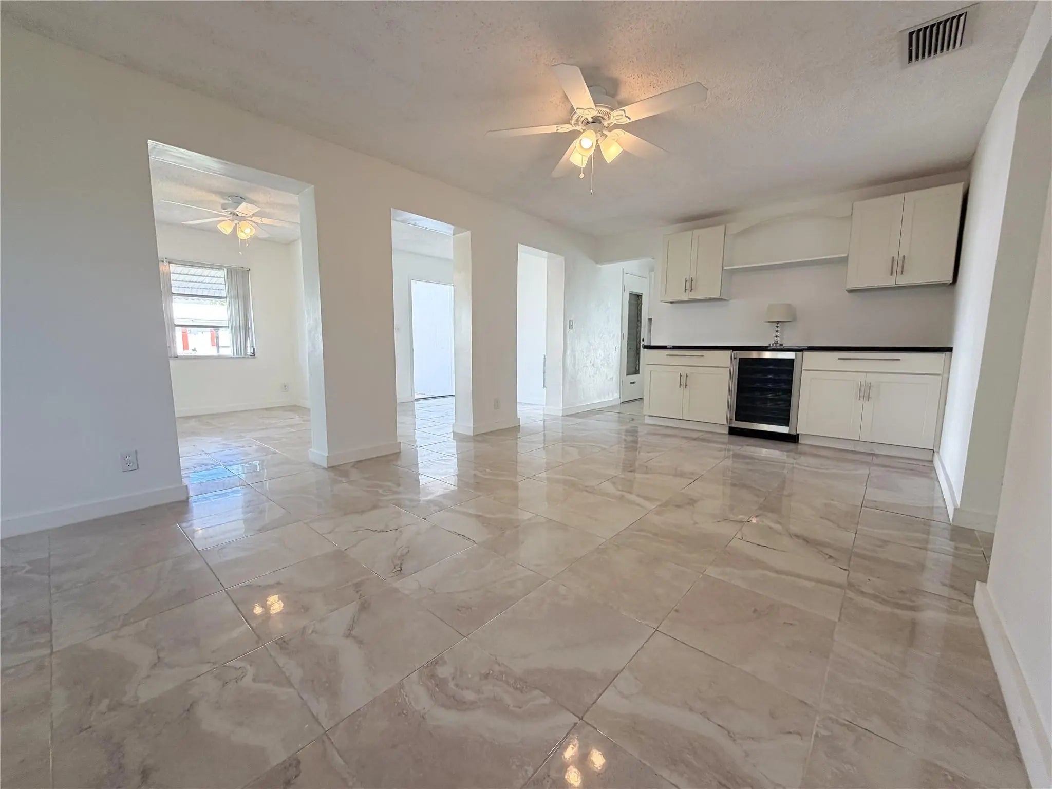 Contemporary 2 bedroom / 2 bathroom with attached garage in the 55+ community of Leisureville. Primary en suite renovated in October 2025, newer stainless appliances, laundry room with washer/dryer, formal dining room featuring built in bar with wine cooler, new HVAC system installed 2024, and new water heater installed 2025. Lawn maintenance and exterior walls/roof paint are included. Leisureville is an adult community located near the beaches and shopping and boasts a variety of amenities including a 9 hole golf course, 2 pools, fitness center, clubhouse and more.
