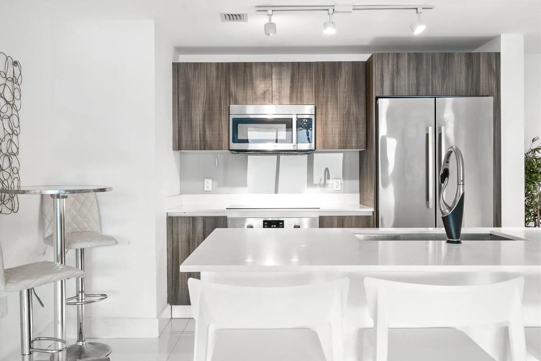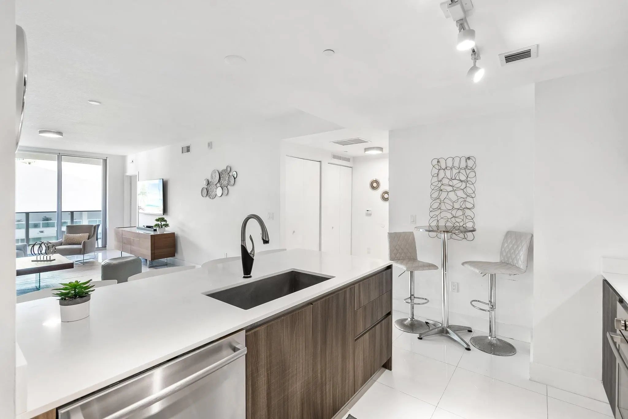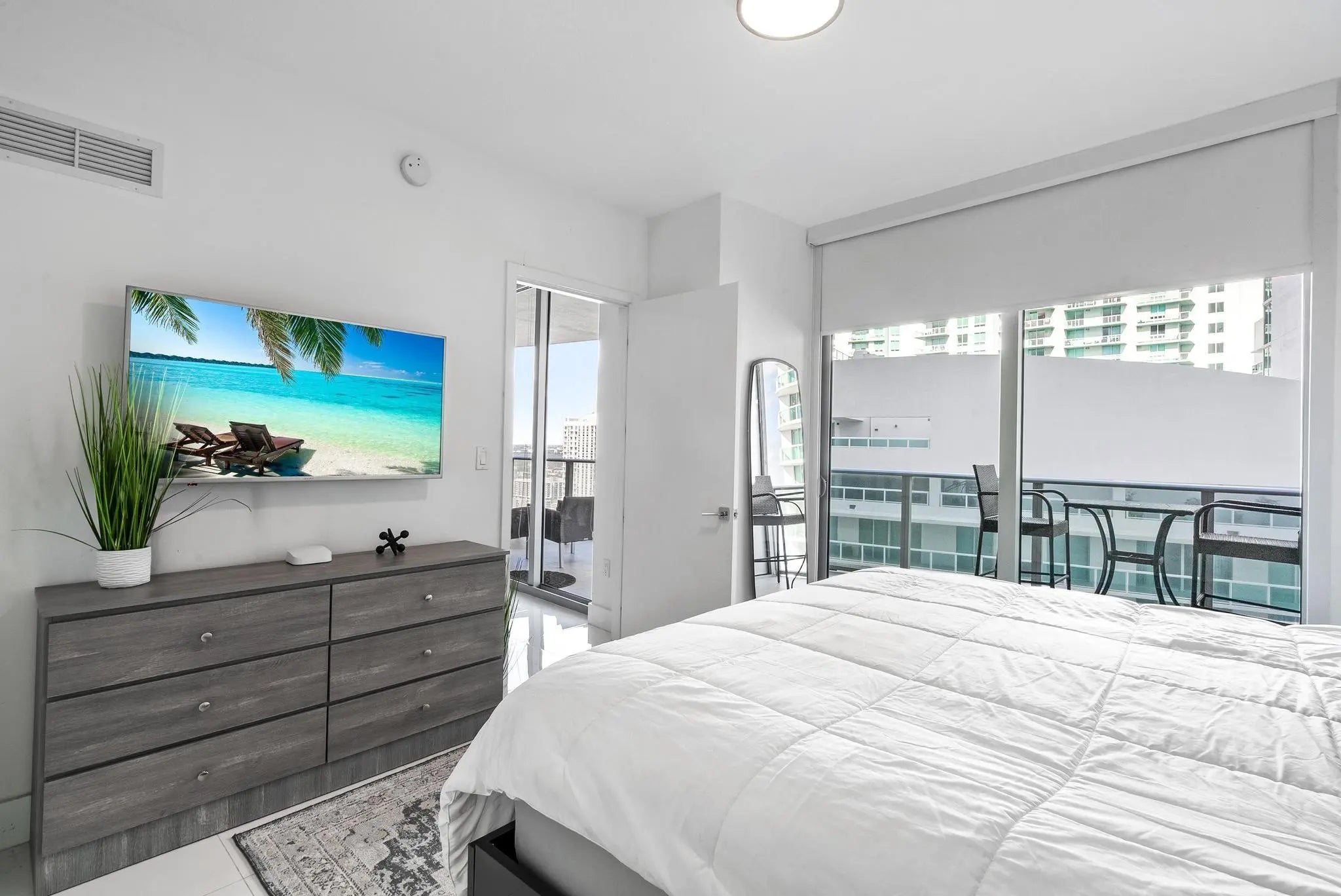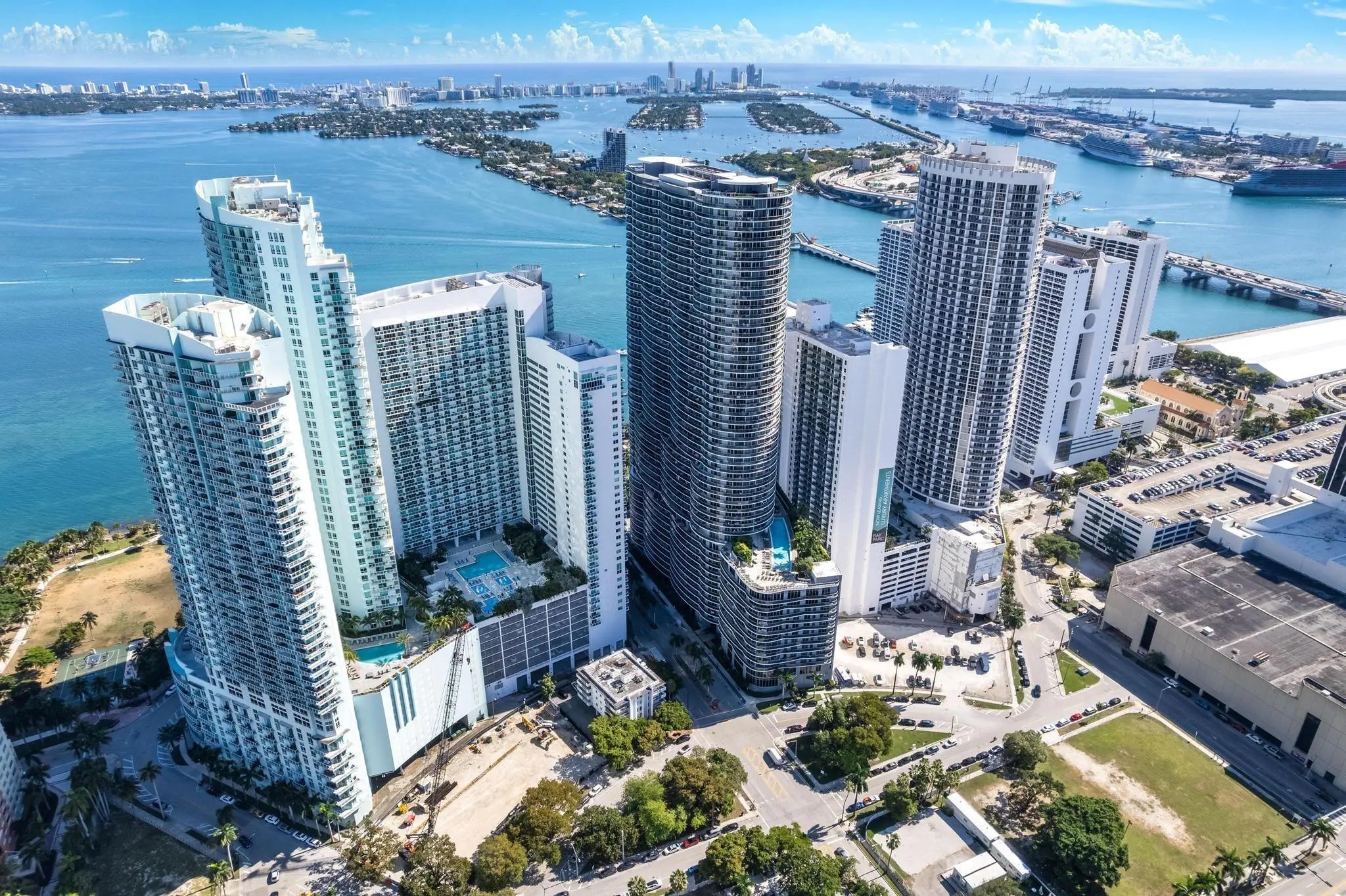 Discover this stunning 2-bed, 3-bath (+ versatile den) luxury condo on the 35th floor of Aria On The Bay with breathtaking Biscayne Bay views and convenient elevator access directly to your unit. Tile flooring throughout, and modern updates include white quartz counters and sleek cabinetry that flow seamlessly in the kitchen and bathrooms. Light-filled, and spacious, this residence offers a perfect blend of style and comfort. Ideal for those looking for luxury and lifestyle, as this building offers it all. Resort style amenities include sunrise & sunset pools, hot-tub, sundeck, luxurious spa, private theatre, 24 hour concierge service, business center, residents lounge, fitness center, teen lounge & kids room, valet and security. Steps away from Downtown Miami, Midtown and more.