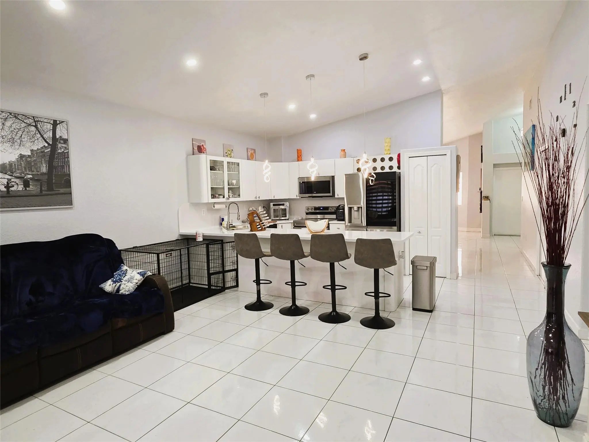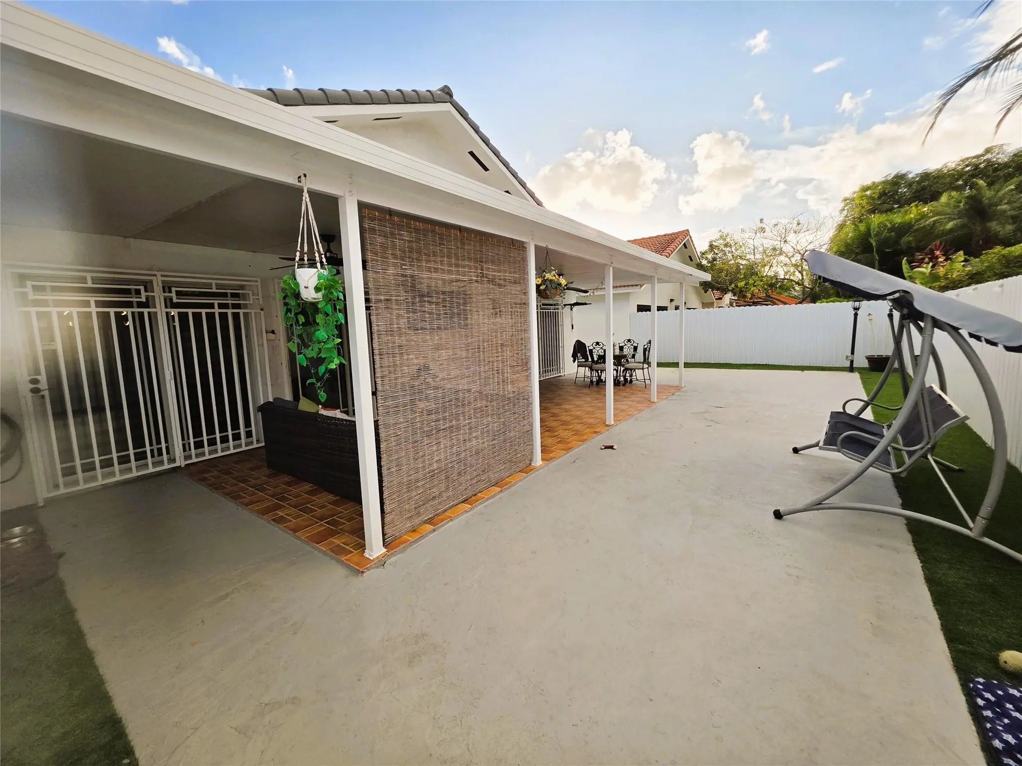 Beautiful 3-bedroom, 2-bath home featuring accordion shutters, a large covered patio and an expansive side yard—perfect for parking your toys. This property offers a bright and open layout with a spacious family room, dining room, and living room in a stacked floorplan filled with natural light. The open kitchen includes a sit-down counter overlooking the family room, ideal for entertaining. All bedrooms are generously sized with ample closet space, including a master suite with his-and-hers closets. Bathrooms have been tastefully updated. Additional features include an indoor laundry room, exterior utility room, Titan electric water heater, and plenty of parking. Located in a wonderful neighborhood close to major highways, great schools, and shopping. Ready to show!