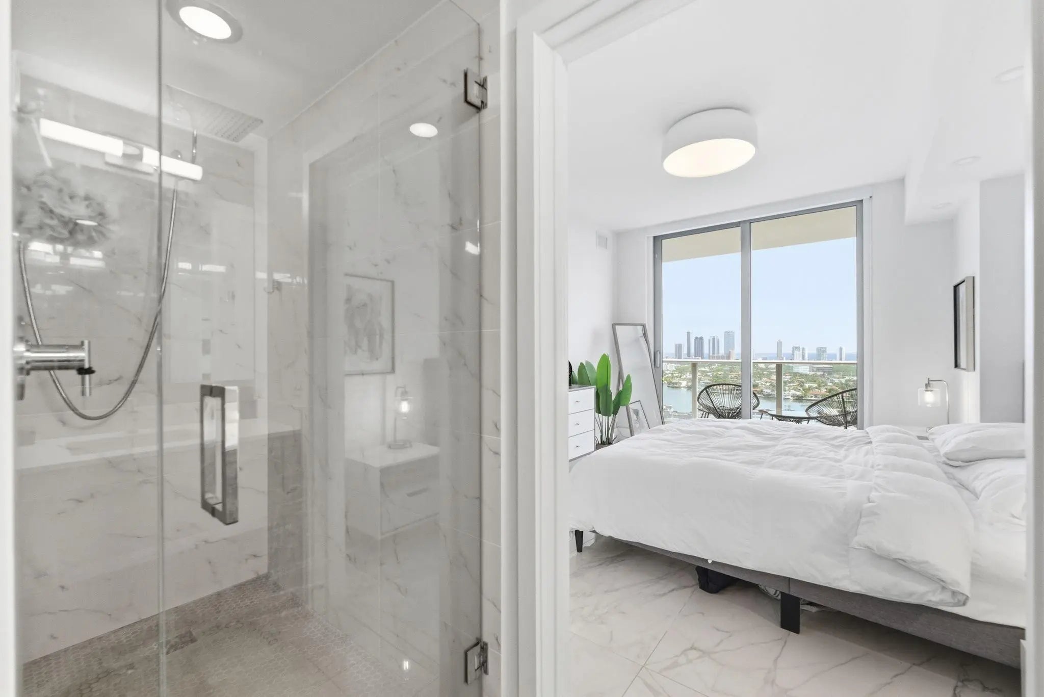 Sophisticated 2 bedroom, 2 bathroom plus den residence at The Harbor in North Miami, minutes from Aventura, Sunny Isles, top restaurants, Aventura Mall, and Bal Harbour Shops. Enjoy private elevator access, marble floors, high end European appliances, custom cabinets, built out closets, and in unit laundry. Floor to ceiling windows open to an expansive private balcony with stunning views of Oleta State Park, the ocean, bay, and Intracoastal. Amenities include 24/7 security, valet, fitness center, spa, sauna, steam room, indoor jacuzzi, heated pool with cabana bar, beach area, lounges, yoga studio, tennis, basketball, pickleball, soccer field, kids’ play room, and pet park. Built in 2018, SIRS complete, no assessments. Come enjoy The Harbor as your primary residence or pied-à-terre.