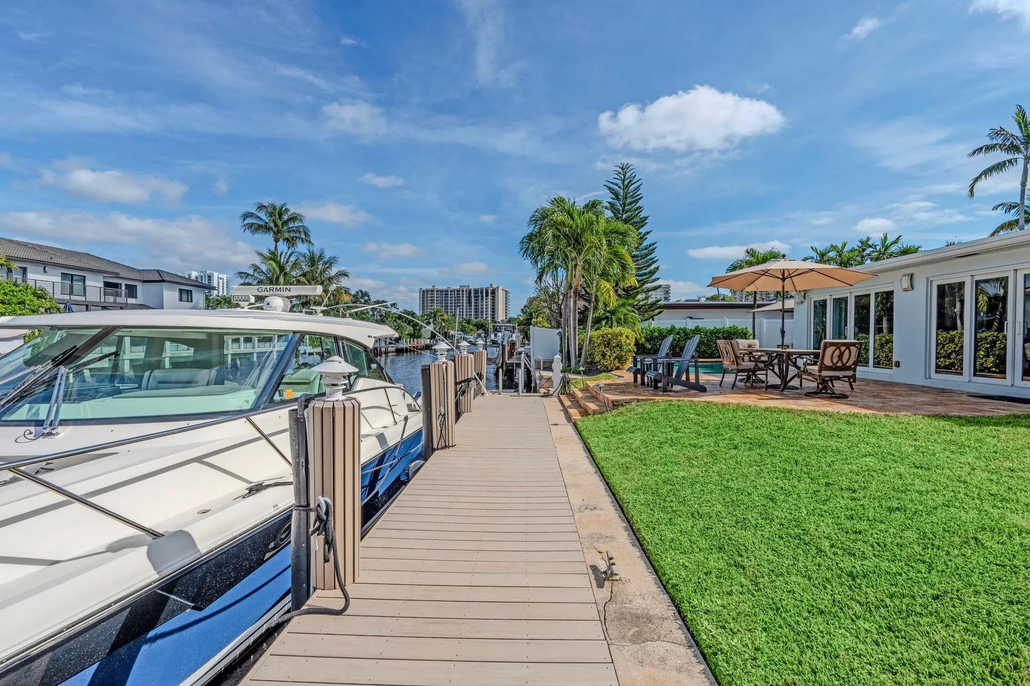 Discover the perfect blend of coastal living and boating convenience in this 3BR/3.1BA inviting home located on the east side of A1A, 5 lots off the intracoastal, in the gated, beachside community of Bel Air. Ideal for serious boaters, featuring 85 ft of deepwater, 40ft dock, with direct ocean access and no fixed bridges. The home offers peace of mind w/ impact glass throughout, a new roof installed in 2014, and a 2 car garage. Bright, open living spaces flow seamlessly to the waterfront backyard, where the heated salt water pool, tiki hut, and wide canal views create an effortless indoor-outdoor lifestyle. In one of the area’s most desirable neighborhoods minutes from the beach, shops, restaurants, home provides excellent flexibility, full time living, seasonal use, or short-term rental