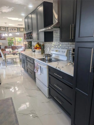 Beautifully updated, bright 4BR/2BA Margate pool home with fenced-in back yard! Perfect for kids and pets. The spacious split floor plan flows effortlessly. Circular driveway fits 5+ cars. No HOA. 2 Large Sheds for storage for bikes, equipment, and tools. Stunning updated kitchen with quartz countertops, stainless steel refrigerator and dishwasher, a sleek cooking hood, soft-close cabinetry, and a large sink. Beautiful tile floor and large laundry room.Working fireplace, a light-filled sunroom, and an inviting family room. Three bedrooms open directly to the back patio. The primary suite features double French doors that frame the sparkling pool. Amazing travertine pool deck, artificial grass play area, and a shaded corner for barbecuing.