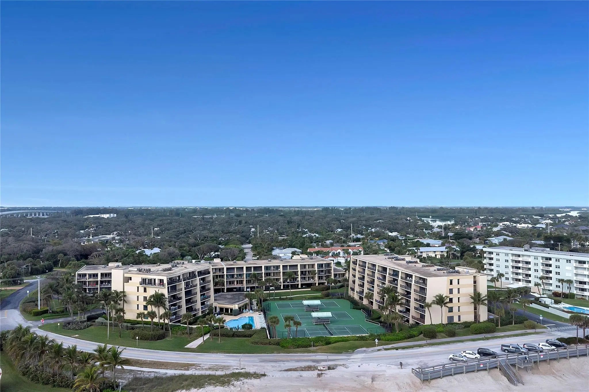 Wake up to the sound and direct view of the ocean everyday from this centrally located 2BR/2BA condo in the Racquet Club! Ocean views from the moment you enter, setting the tone for a quintessential FL lifestyle. Accompanied by a large main living and dining area with crown molding. Large balcony with primary bedroom access, perfect for entertaining! Full storm protection and covered parking directly under building. Secured entrance. 3 tennis courts, 4 pickleball courts, private pool, fitness room, library and newly renovated club room! Walking distance to shopping, dining and nightlife!