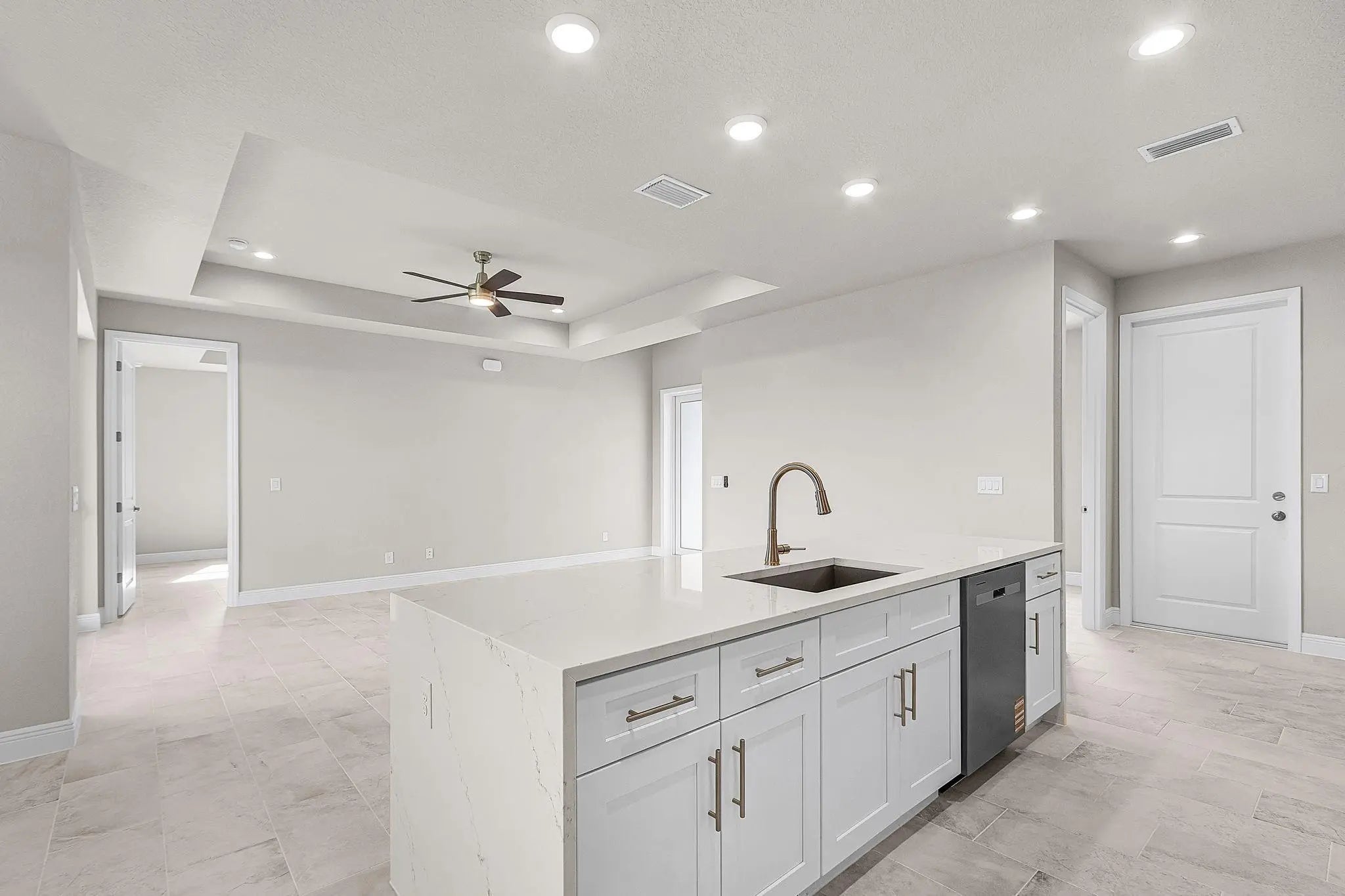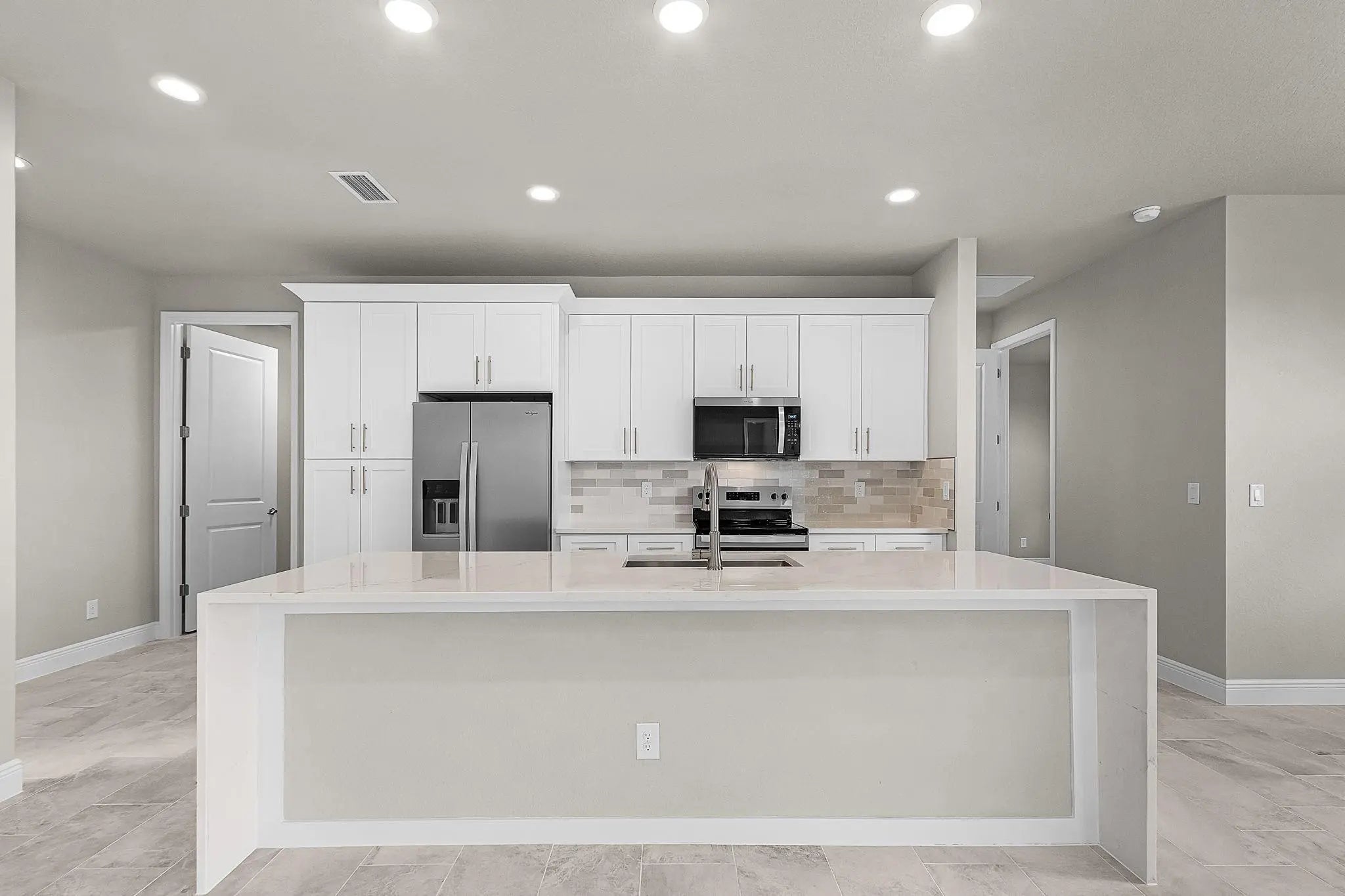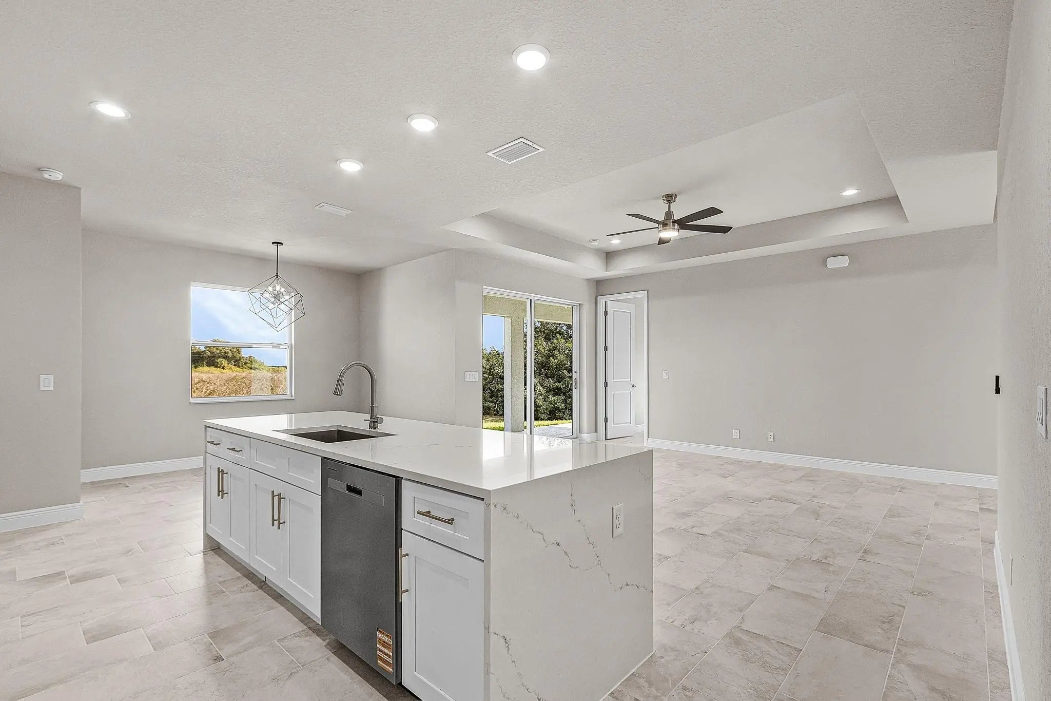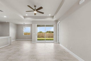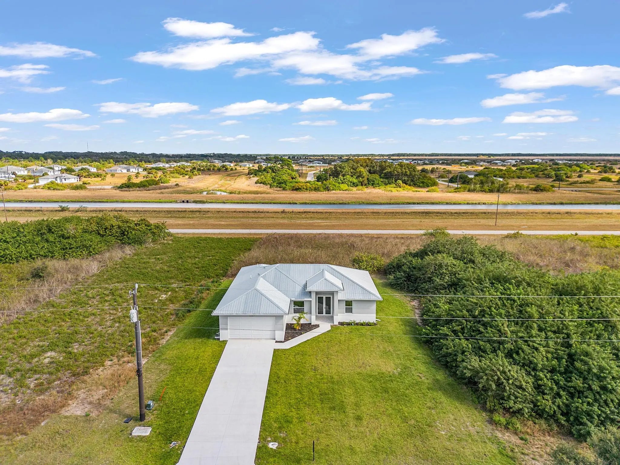Welcome, a thoughtfully upgraded new construction home that feels easy and inviting the moment you arrive. The metal roof and lush landscaping with irrigation create great curb appeal, while high ceilings and impact windows and doors fill the home with light and peace of mind. Inside, the kitchen is clean, modern, and functional with solid surface countertops and stainless-steel appliances, perfect for everyday living or casual entertaining. Step outside to the tiled lanai, an ideal spot to enjoy quiet mornings or relaxed evenings. Brand new, beautifully finished, and designed for comfort. —schedule your showing today and see why this one stands out.
