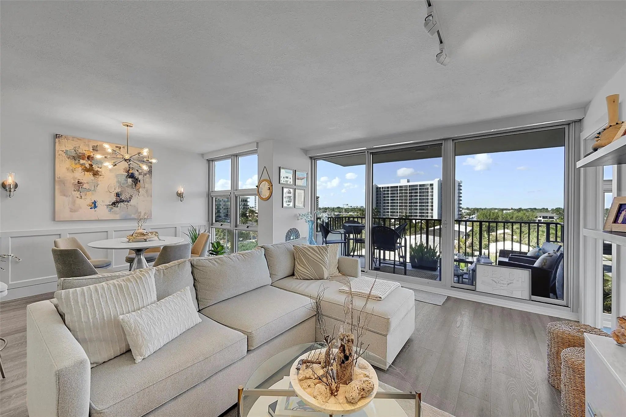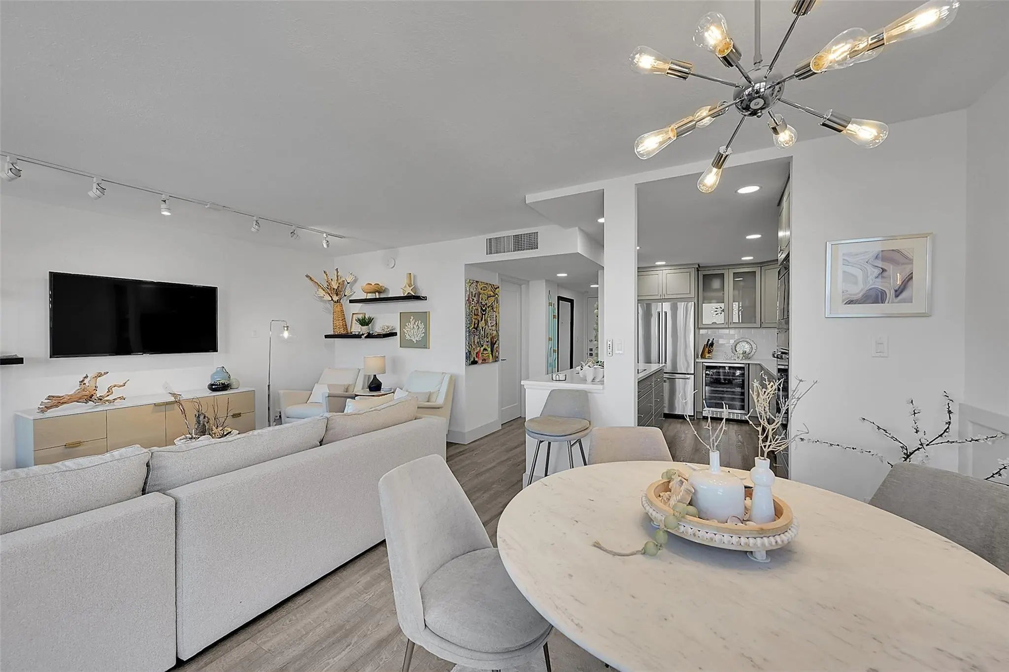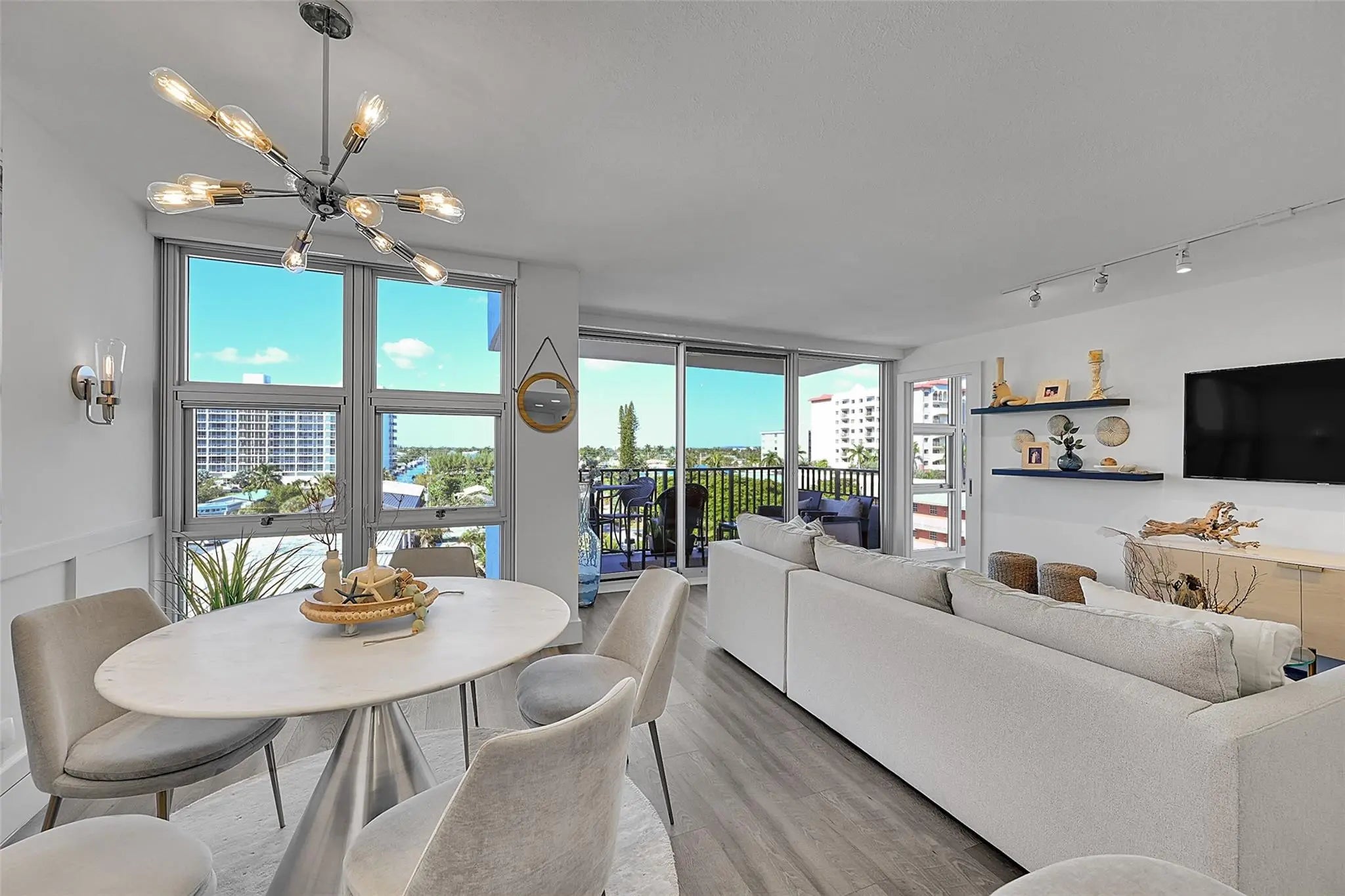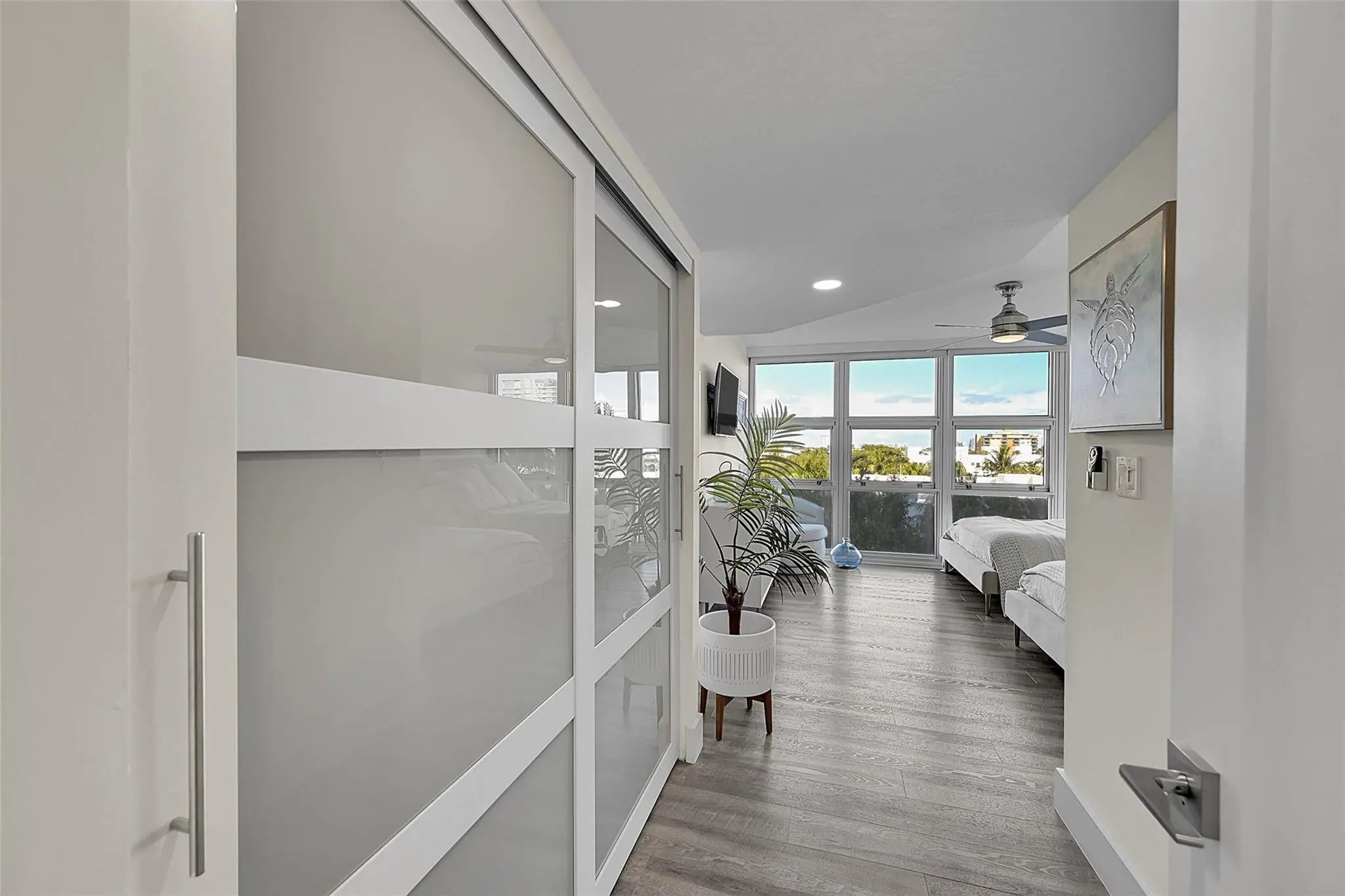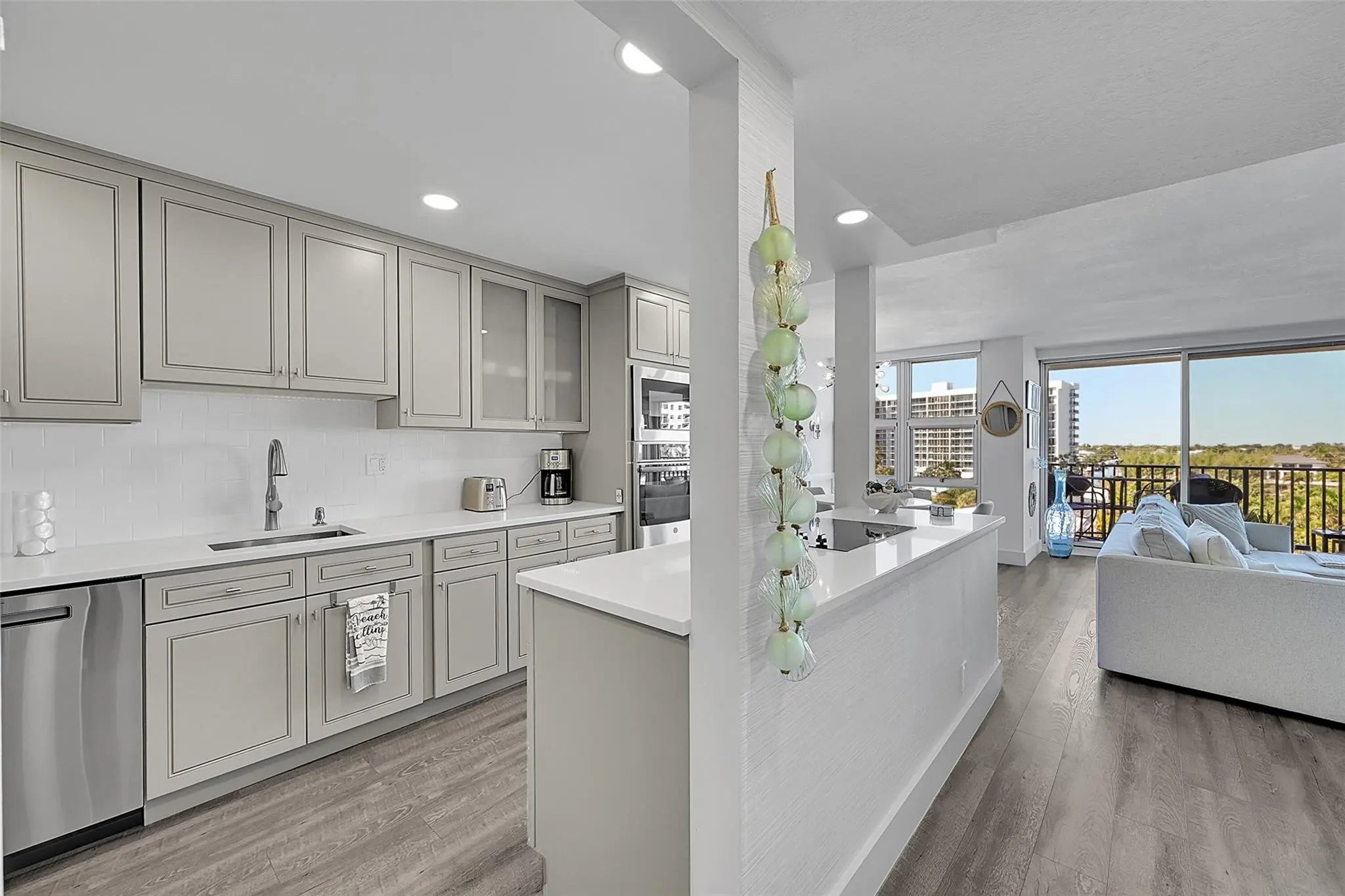 Corner unit completely renovated down to the studs, offering a combination of quality, light, and intracoastal and ocean views. This residence features floor-to-ceiling impact windows, an open kitchen with custom cabinetry, quartz countertops, GE Profile appliances, custom doors, remote control custom blinds and California Closets. The building is nearly fully renovated, with a brand-new fitness center nearing completion. Silver Thatch offers 24/7 security, garage parking, pools, tennis, pickleball, bocce, sauna, extra storage, and a new covered BBQ area. Unbeatable location just steps to the fishing pier, dining, shopping, boating, and golf in the heart of Pompano Beach.