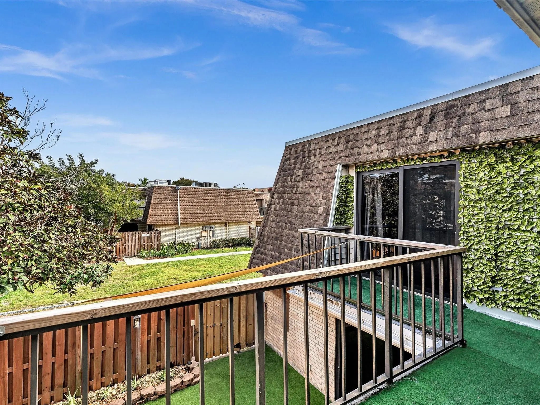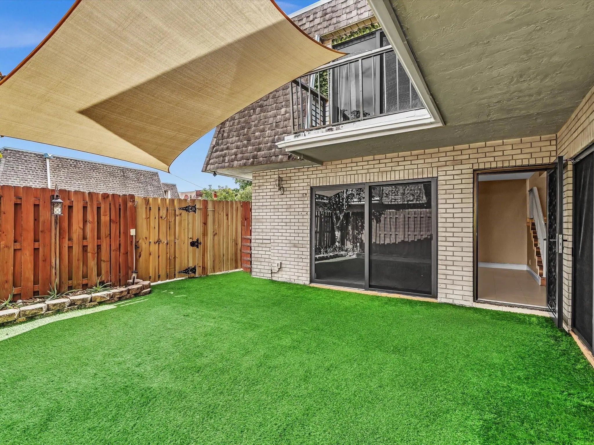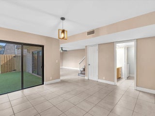Oversized, move-in-ready townhouse offering the space and feel of a single-family home. Tile & laminate flooring throughout. IMPACT WINDOWS & DOORS, TANKLESS WATER HEATER 2020. A/C 6 years old. Updated kitchen w/granite countertops, glass tile backsplash, breakfast bar & separate dining area. Remodeled half bath w/laundry room. Spacious master fits king-size bed; remodeled primary bath w/ skylight & double vessel sinks. Bedrooms feature sliding doors w/ balcony access & abundant natural light. Private courtyard is fenced & covered w/ turf providing additional space ideal for outdoor festivities. Association covers ROOF, WATER, SEWER, EXTERIOR & COMMON AREAS. Your additional expenses: electric & cable/internet. NO CREDIT OR INCOME REQUIREMENTS. CAN RENT IMMEDIATELY. Two assigned parking.
