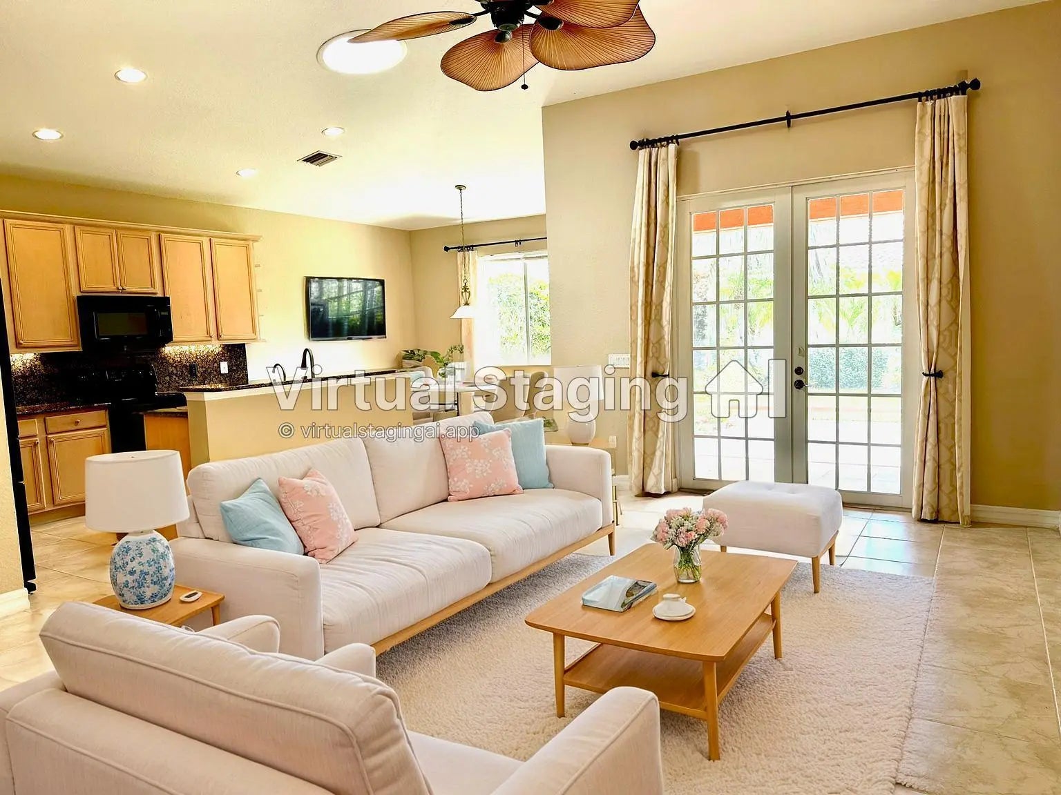 Come and enjoy the relaxing lifestyle in Vero Beach in this well maintained home in Woodfield of Vero Beach, the premier 55+ active resort style community. Elegant glass entry door, vaulted ceilings, plant shelves and an open concept. Living/dining and family room. Kitchen offers snack counter, granite countertops with full backsplash, under-counter lighting. Built in shelving in pantry. Breakfast area off the kitchen. Split plan-bay window in master suite, 2 closets, 1 walk in with built in shelving. Master bath: jacuzzi tub & separate shower. Den with double doors off entry foyer can easily be used as a 3rd bedroom/guest room. French doors off living room are open to covered screened patio. Primary living area has neutral porcelain tile flooring.