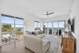 Sought after Corner penthouse directly on the ocean in Villas by the Sea. 2 bedrooms 2.5 bathrooms + Den with floor to ceiling impact windows and doors with ocean views throughout the property. Modern key-west design with 12’ ceilings, abundant natural light, large open floor plan, and 3 private balconies. Chef's kitchen with stainless steel appliances, stone counter tops, and laundry/pantry room. Spa like primary bathroom with rain shower and soaking tub. Custom walk-in closets, ensuite guest bedroom. Includes 2 garage spaces & storage unit. Boutique community with resort-style pool, cabanas, spa, fitness center, clubroom, & private beach access. Quick walk to restaurants, live music, pier, public tennis courts, basketball courts and shopping. Pet Friendly. Rent 3x per yr, 3 month min.