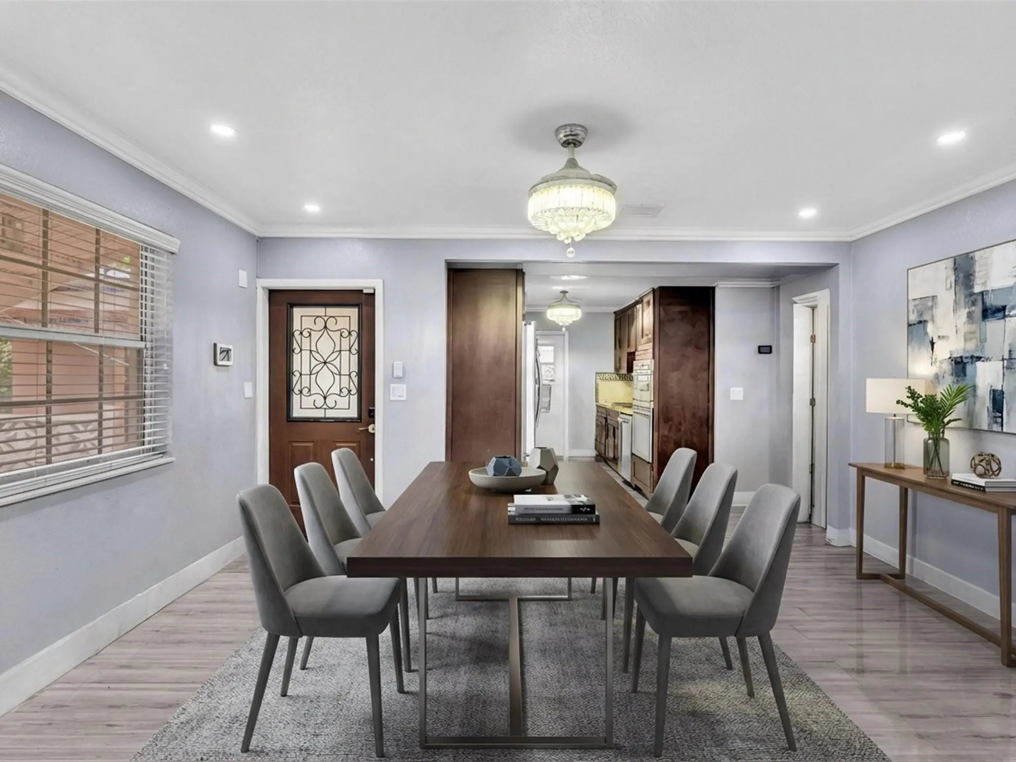Charming home featuring recent interior updates, including modern flooring, recessed lighting, and refreshed finishes throughout. A bright and spacious living area creates an inviting atmosphere. The updated kitchen offers granite countertops, stylish tile backsplash, and modern cabinetry. The primary bedroom features an en-suite bathroom with updated fixtures and Wi-Fi ready speakers installed. Step outside to a generously sized backyard with ample space to add a pool, expand outdoor living, or create your own private oasis. The yard is dotted with mature fruit trees, offering both shade and the joy of homegrown produce. Convenient to local highways, shopping and airports, this property is ideal for buyers seeking comfort today with room to grow tomorrow.