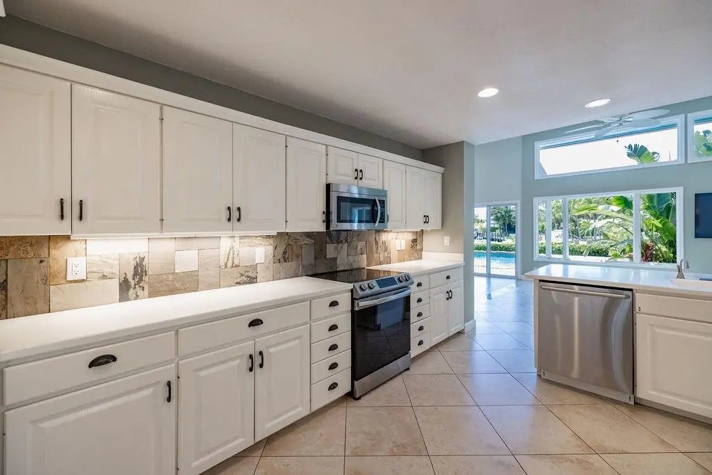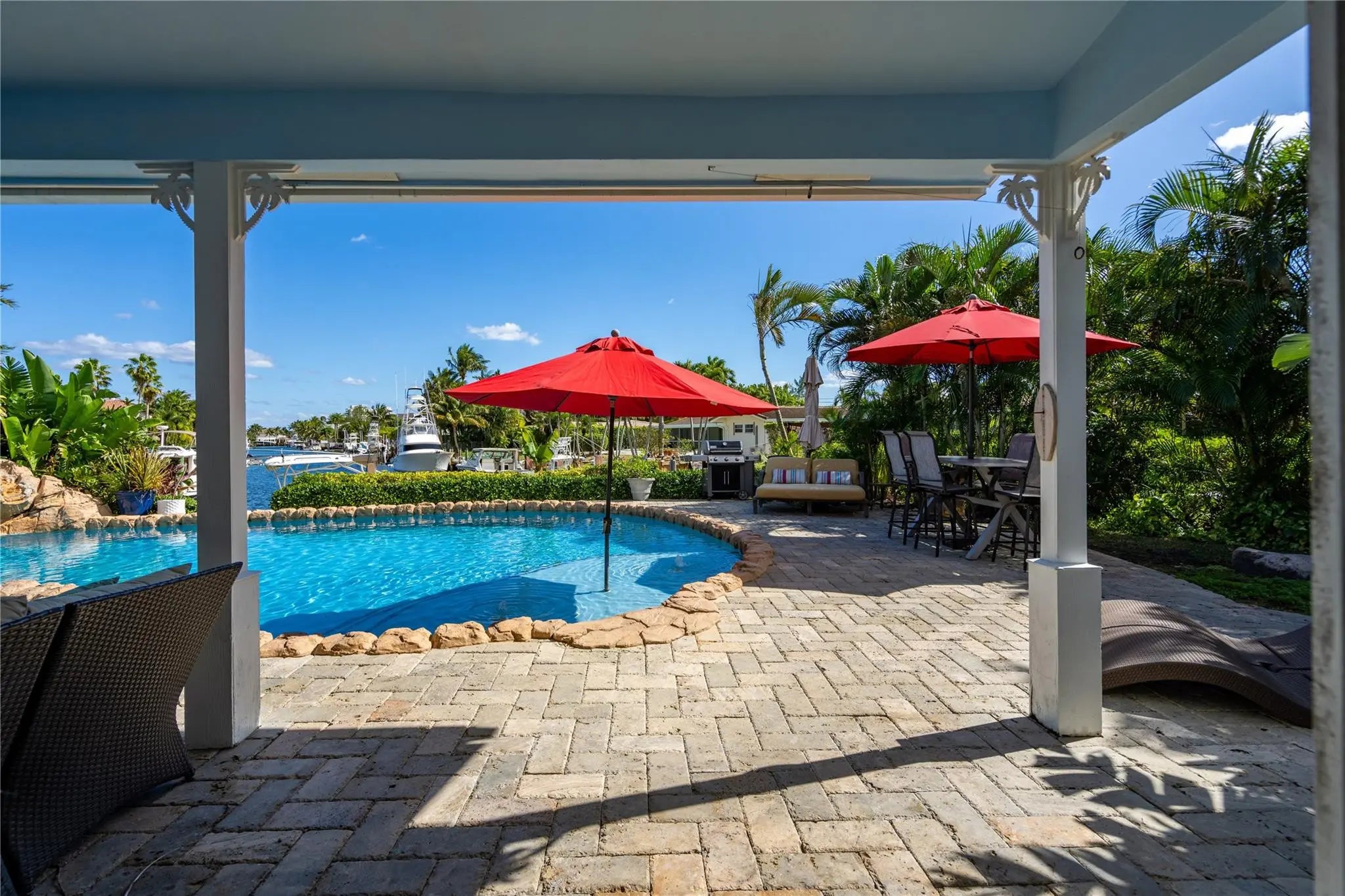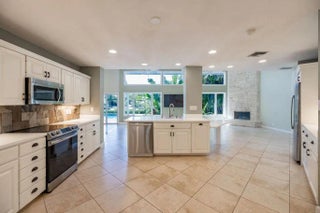 Endless sunrise water views straight down the closest canal to the Hillsboro Inlet! This coastal South Lighthouse Point home offers excellent curb appeal with 4 bedrooms and 4 baths in a split-bedroom floor plan featuring two primary suites and zoned air conditioning. The spacious kitchen opens to the family room at the heart of the home, both capturing incredible long water views. Formal living and dining rooms plus an additional casual dining area overlooking the water. Oversized primary bedrooms throughout. Enjoy outdoor living in the tropical backyard with a remodeled heated pool and spa with salt chlorination, cabana bath access, newer polymer dock, and 16,000 lb boat lift. Less than 5 minutes by boat to open ocean waters!
