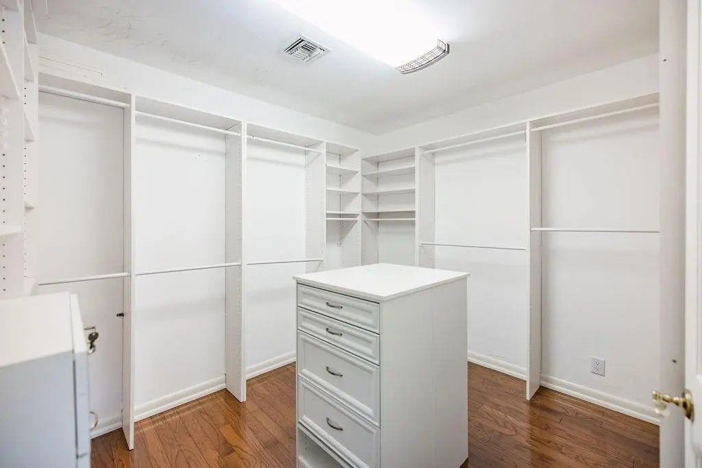 Built-in Features, High Ceilings, Walk-In Closet(s), Bedroom Layout - Split, Closet Cabinetry