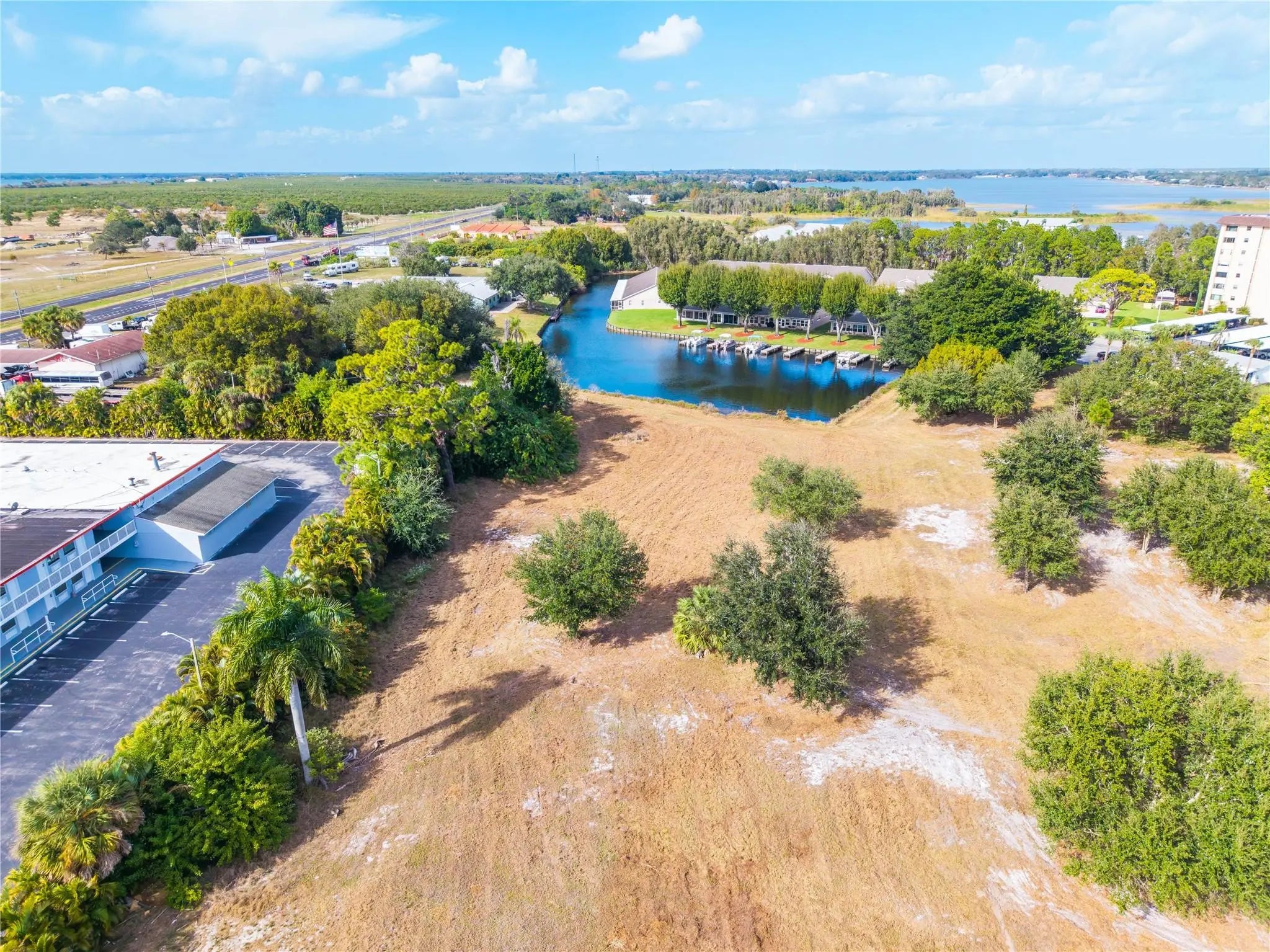 Rare 6.85-acre cleared lakefront property with direct access to Lake Grassy. Zoned Agricultural, offering the flexibility to build a private estate or explore rezoning for multifamily or future development (buyer to verify). Features over 300 feet of private seawall along the canal, ideal for private docks and boat slips with direct lake access. Located directly on Sun ‘N Lake Blvd with over 650 feet of road frontage and just one block from US-27, providing easy access north and south. Approximately a 2-hour drive from Miami, making it a perfect getaway or long-term investment. Central water and sewer available. Recently surveyed in December with markers in place. Cleared, high and dry, and ready for your vision.