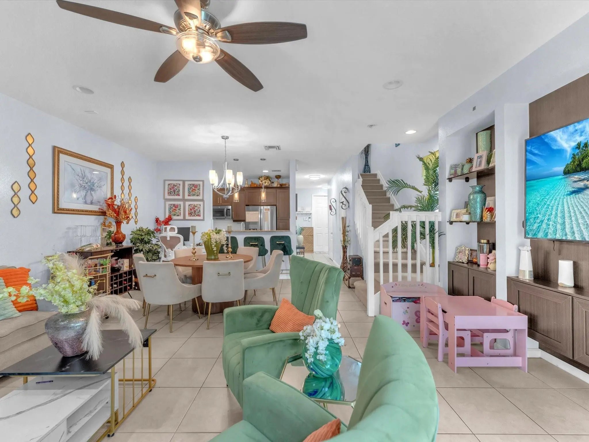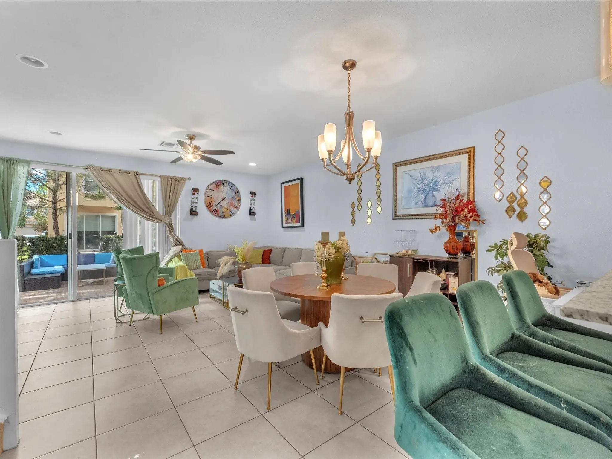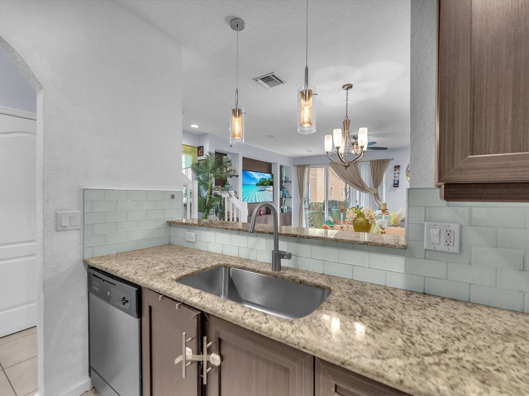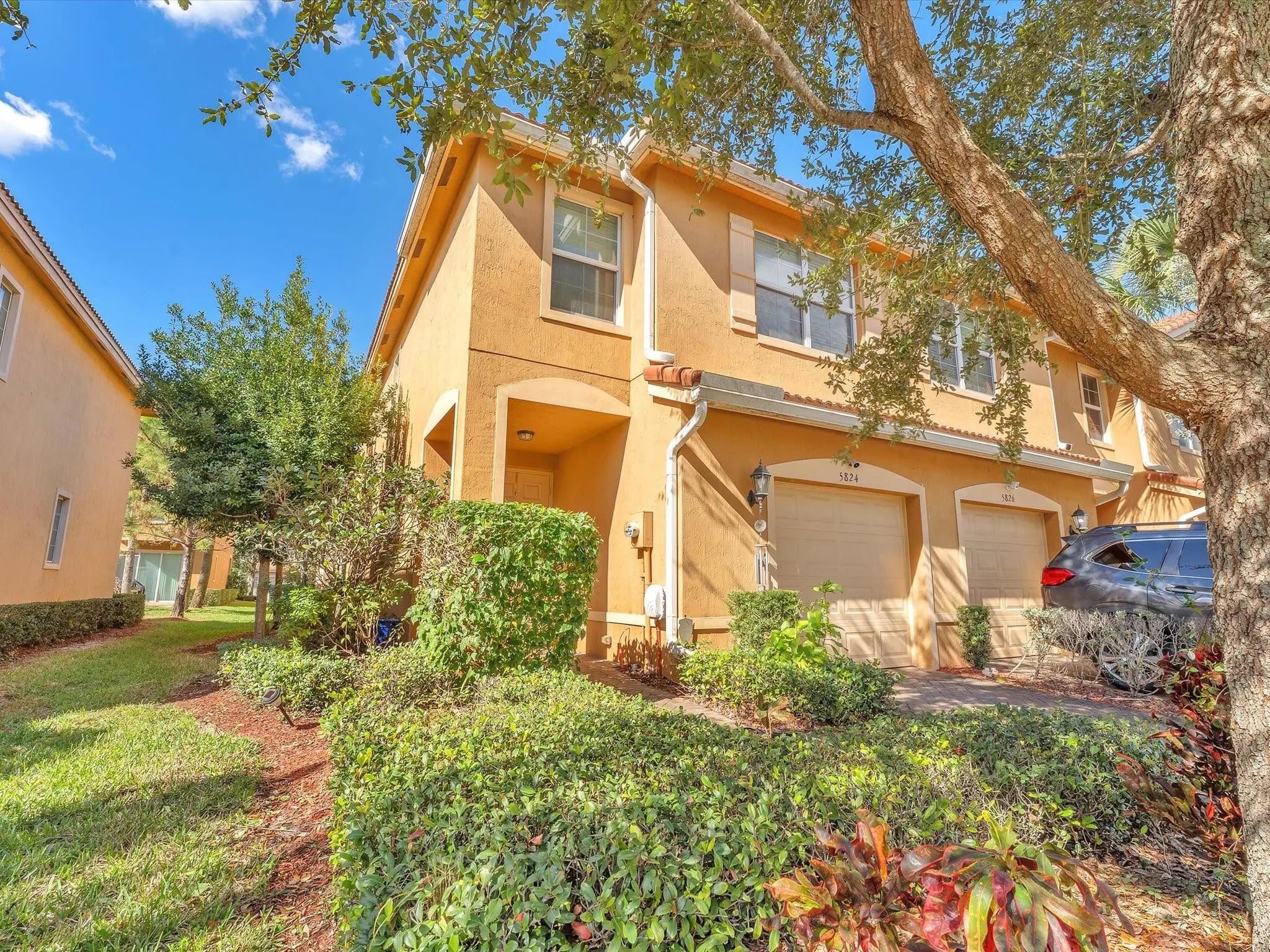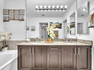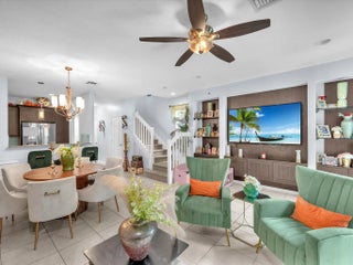 Experience luxury living in this sunlit corner unit with impact windows and open, airy spaces. The gourmet kitchen features 42" espresso cabinets, brushed nickel hardware, stainless steel appliances, and a pendant-lit breakfast bar, perfect for entertaining. Relax in the living room on the extended paver patio. The primary suite offers a bay window, his/her Walkin closet, and a spa-inspired bath with granite double vanities, soaking tub, and seamless glass shower with designer tile accents. Upstairs laundry adds convenience. Located in a gated, resort-style community with clubhouse, fitness center, pool/jacuzzi, basketball courts, walking trails, paddle boats, and a whole lot, just minutes from I-95, the Turnpike, dining, and everyday conveniences.